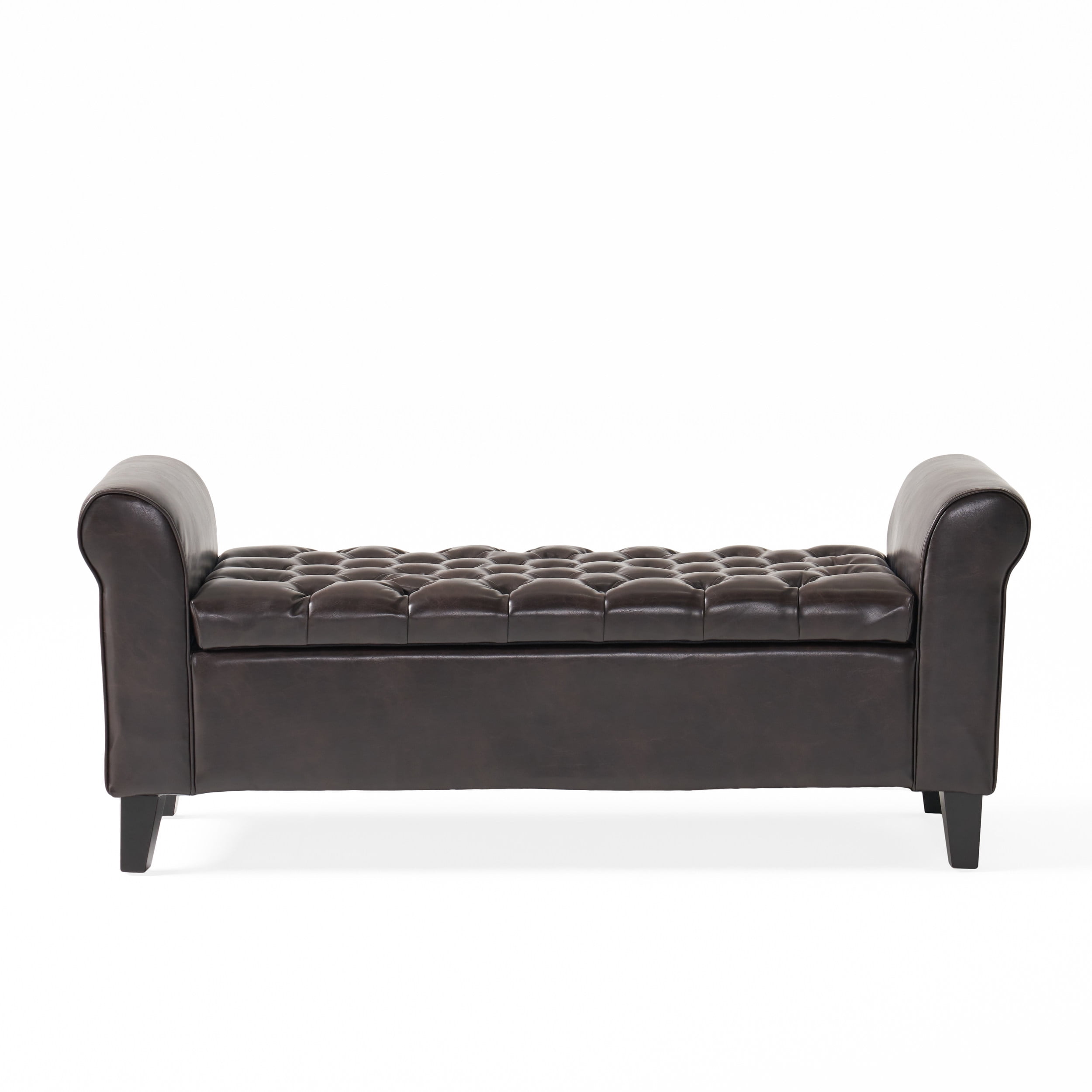 Unclutter your home with an elegant companion that will greet your guests with a refined flourish. Perfect for your living room, foyer, or bedroom, this ottoman bench boasts convenient storage space while offering your decor a graceful atmosphere. With rolled arms, lovely button-tufting and soft pressure hinges, this ottoman is an ideal addition for any home, adding class and function to your interior space. This ottoman will tie your home together with its versatility and stunning looks that will impress for years to come. CONTEMPORARY DESIGN: Featuring deep button tufting and beautifully rolled arms, our storage ottoman offers the look, feel, and design of a truly contemporary piece. With a minimalistic yet refined structure, this piece brings out a simplistic style that emphasizes comfort and functionality. BUTTON TUFTED DIAMOND STITCH: The button-tufted stitching in the lid offers an extra touch of sophistication that enhances its contemporary design. The diamond stitch pattern adds a bit of texture without sacrificing any comfort. ROLLED ARMS: To complete the refined contemporary look, this ottoman bench features elegantly rolled arms for a luxurious look. This adds an air of sophistication to your room and compliments the tufted diamond stitched lid. VERSATILE: This ottoman bench can function as extra seating while you put on your shoes or can act as storage space for all of your pillows and blankets. This uses pressure hinges so that the lid will stay open on its own and will also ensure a soft close. IDEAL FOR SMALL SPACES: Choose an accessory that is the perfect size for you and your furniture. This storage ottoman is 50.00″ W x 19.50″ D x 20.50″ H with a seat width of 38.00″ and a height of 15.00″. You will love how much your space can transform with the simple addition of this charming ottoman bench.