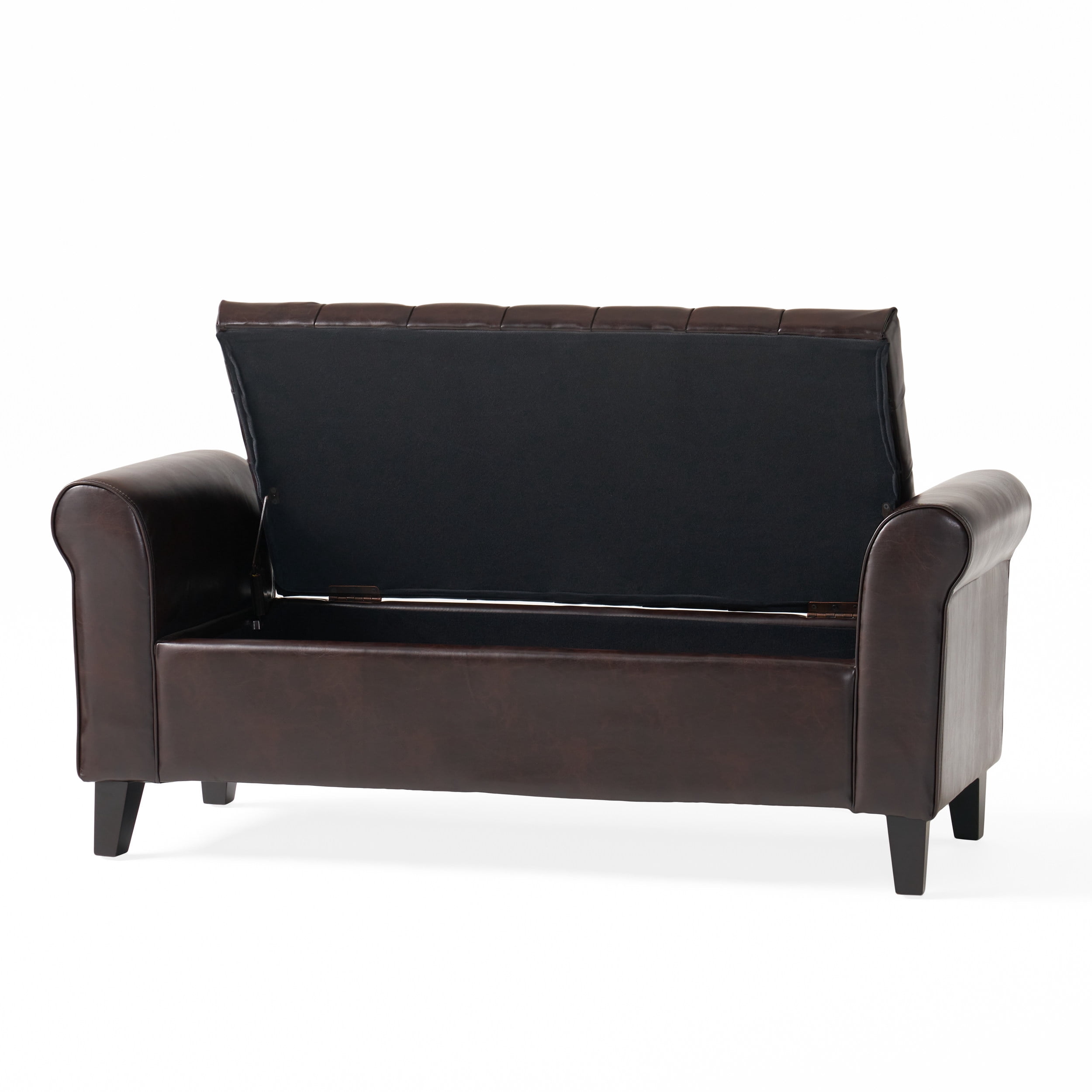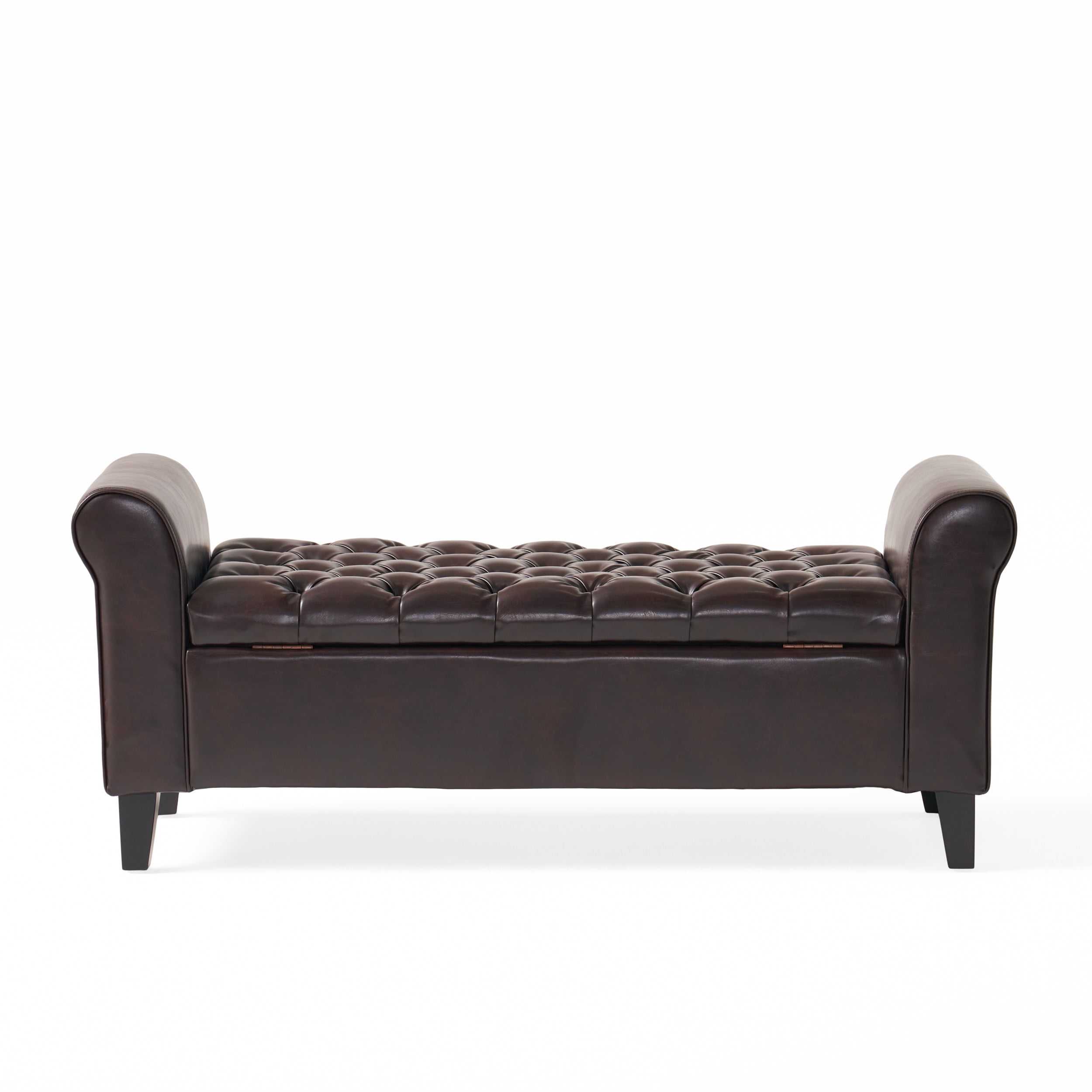 Includes: One (1) Storage Ottoman Bench Multiple Material Options Leg Material: Birch Wood Multiple Color Options Leg Finish: Dark Brown Assembly Required Dimensions: 19.50 inches deep x 50.00 inches wide x 20.50 inches high Seat Dimensions: 19.75 inches deep x 38.00 inches wide x 15.00 inches high Weight Capacity: 250 lbs