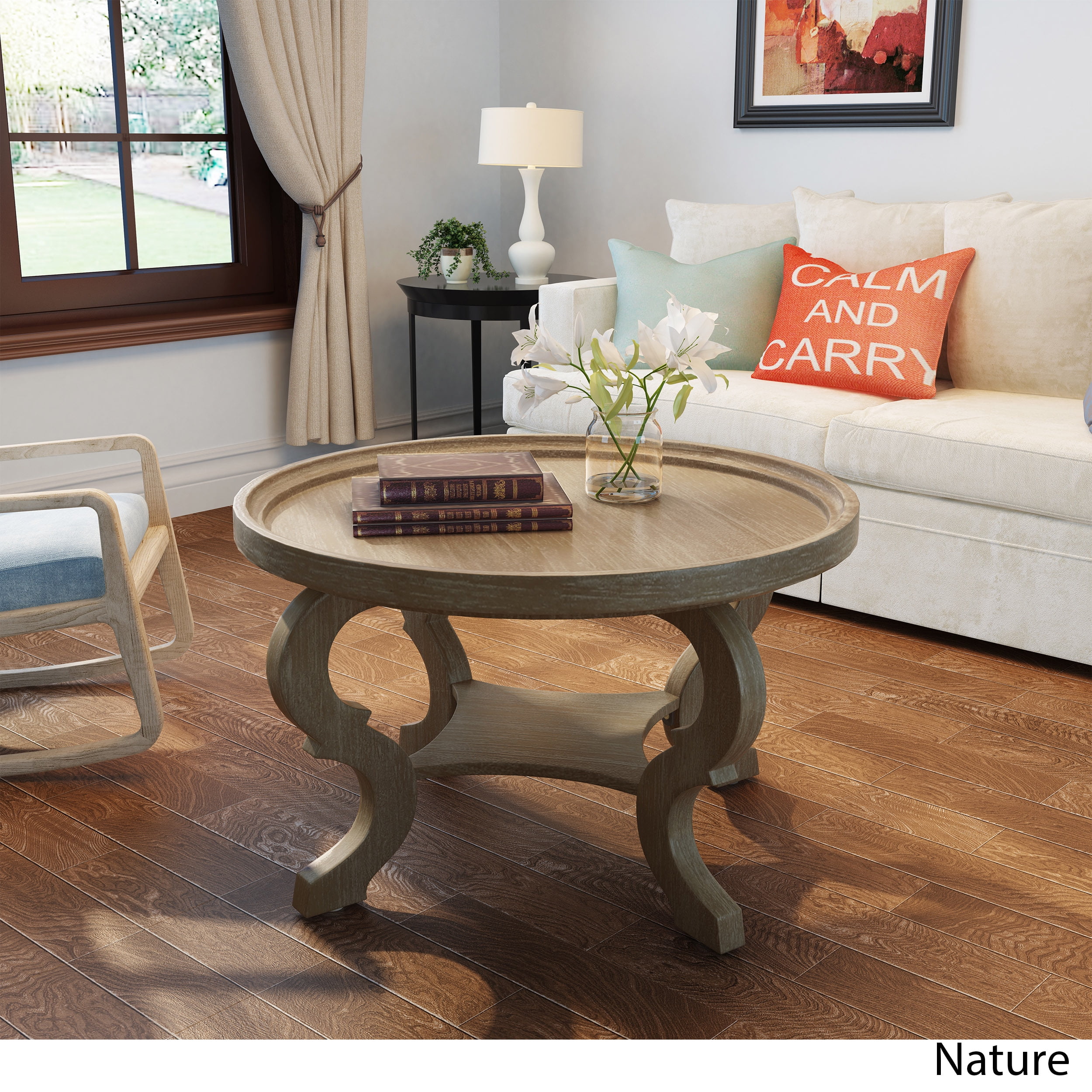 Includes: One (1) Coffee Table Material: Faux Wood Finish: Natural Some Assembly Required Hand Crafted Details Dimensions: 33.00 inches deep x 33.00 inches wide x 19.50 inches high