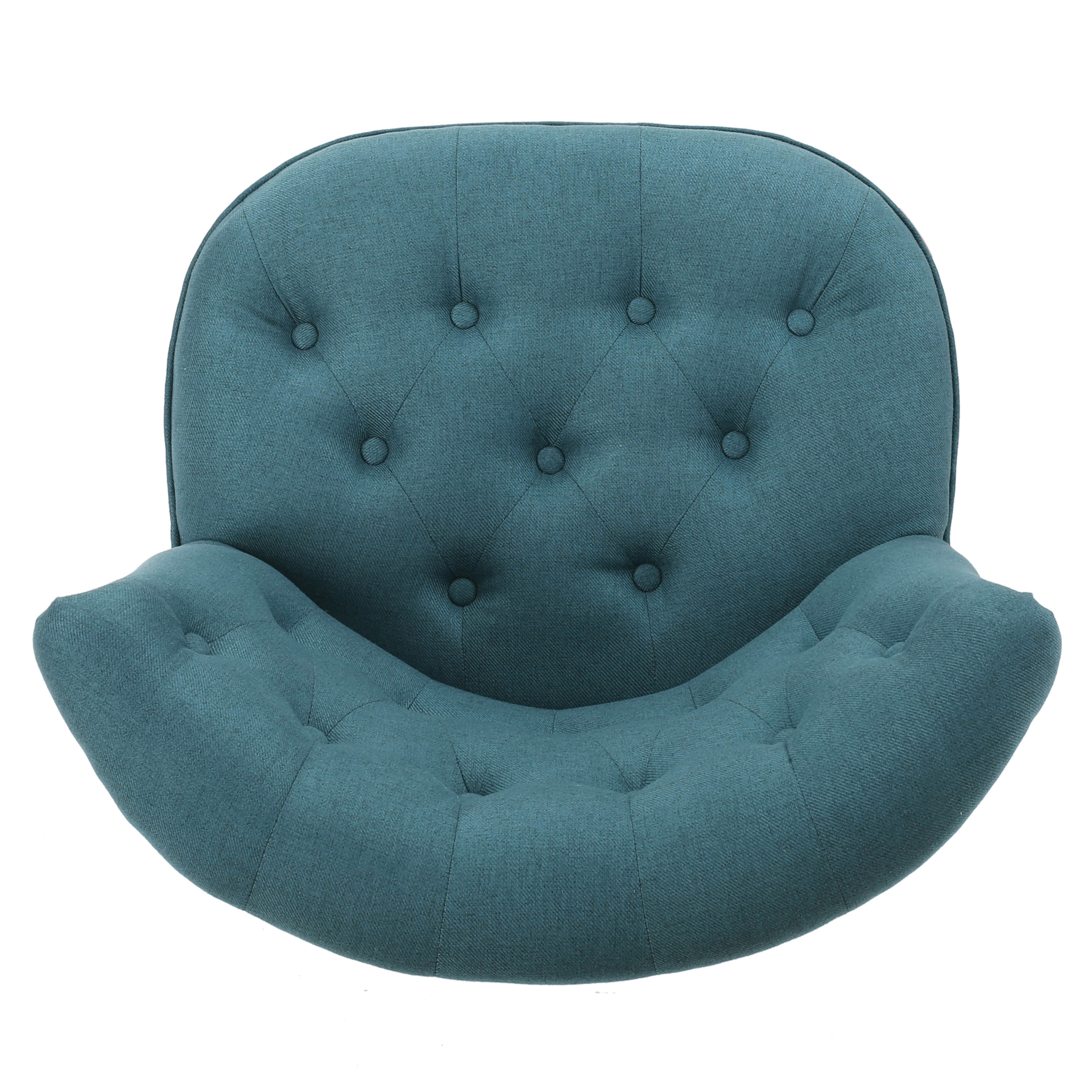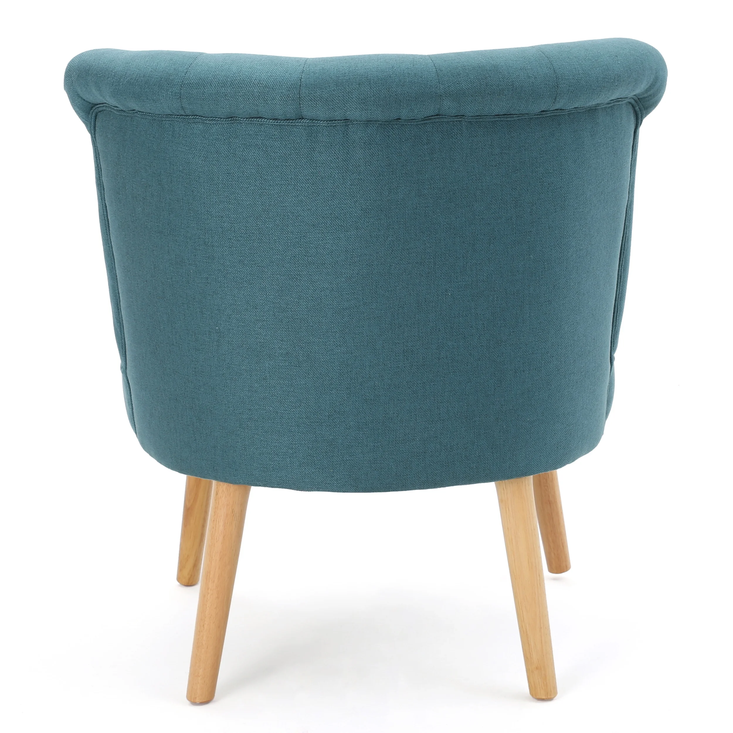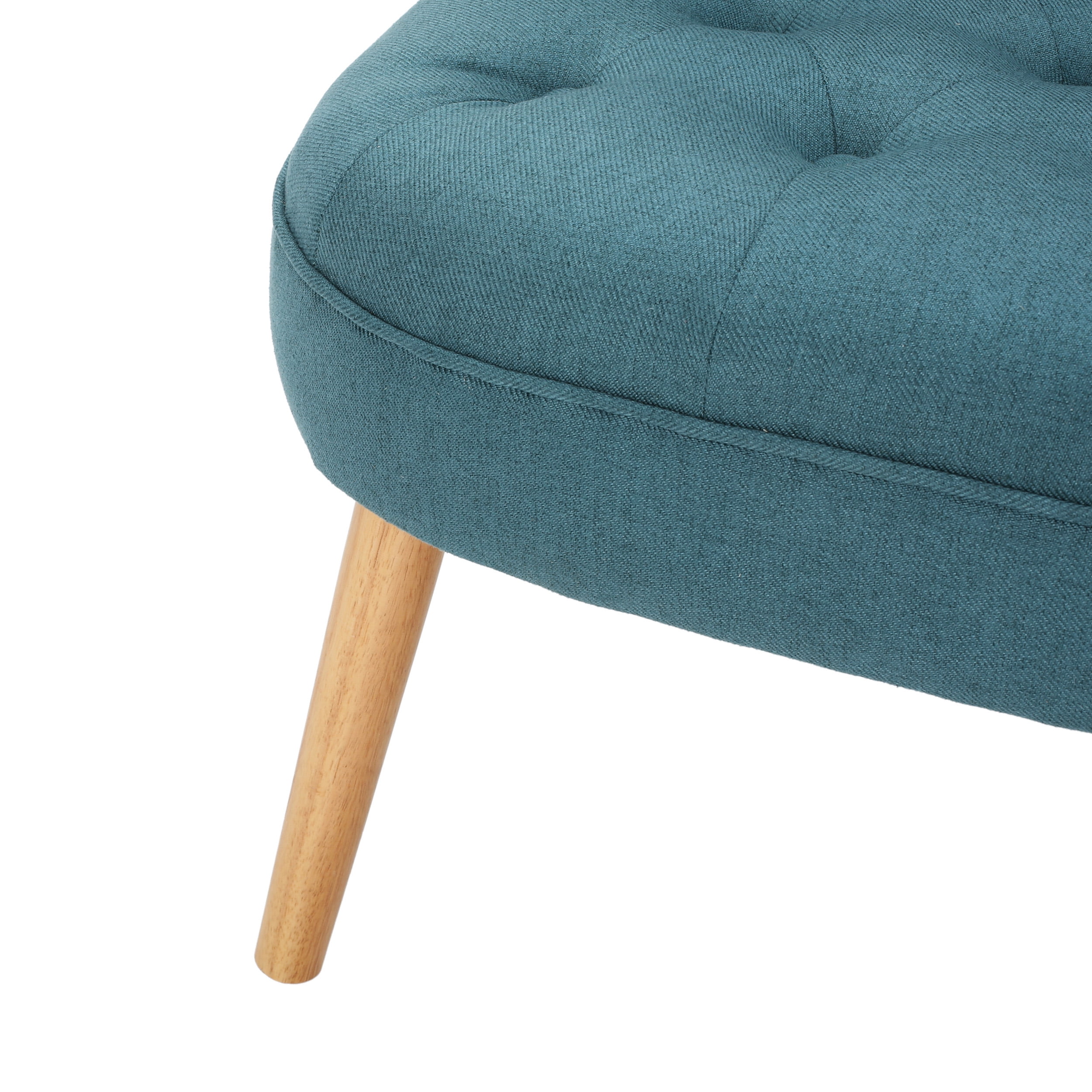 Noble House Siciley Dark Teal Fabric Tufted Slipper Chair, Blue: Includes: One (1) Chair Material: Fabric Fabric Composition: 100% Polyester Leg Material: Rubberwood Multiple Color Options Leg Finish: Natural Light Assembly Required Dimensions: 29.00 inches deep x 29.00 inches wide x 31.75 inches high Seat Dimensions: 20.25 inches deep x 25.75 inches wide x 18.00 inches high