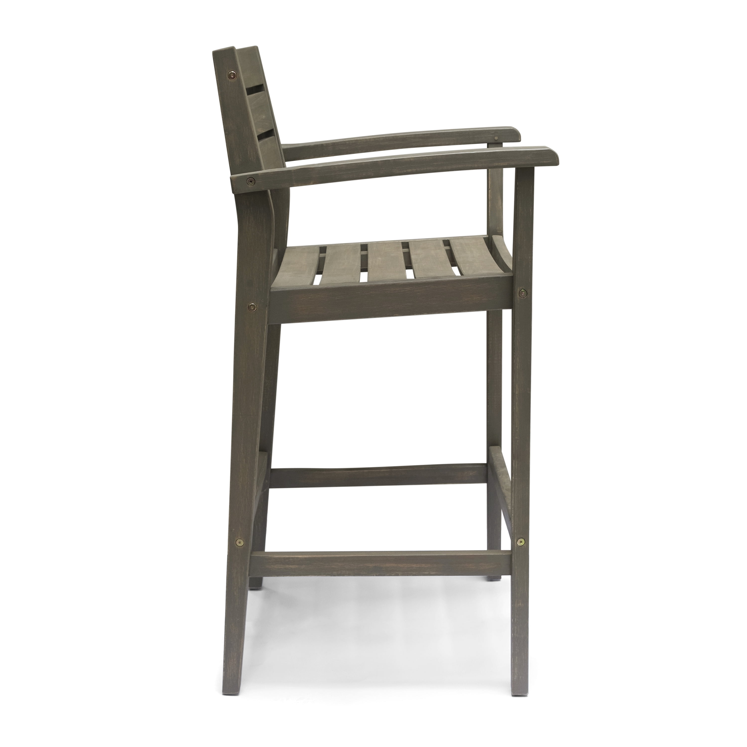 Includes: Two (2) Barstools Material: Acacia Wood Finish: Gray Hand-Crafted Details Assembly Required