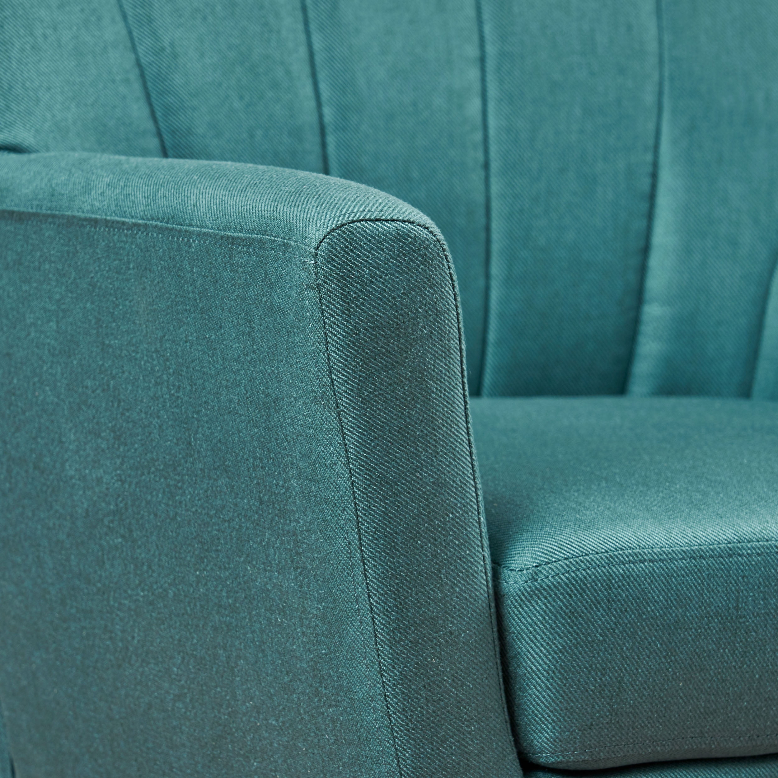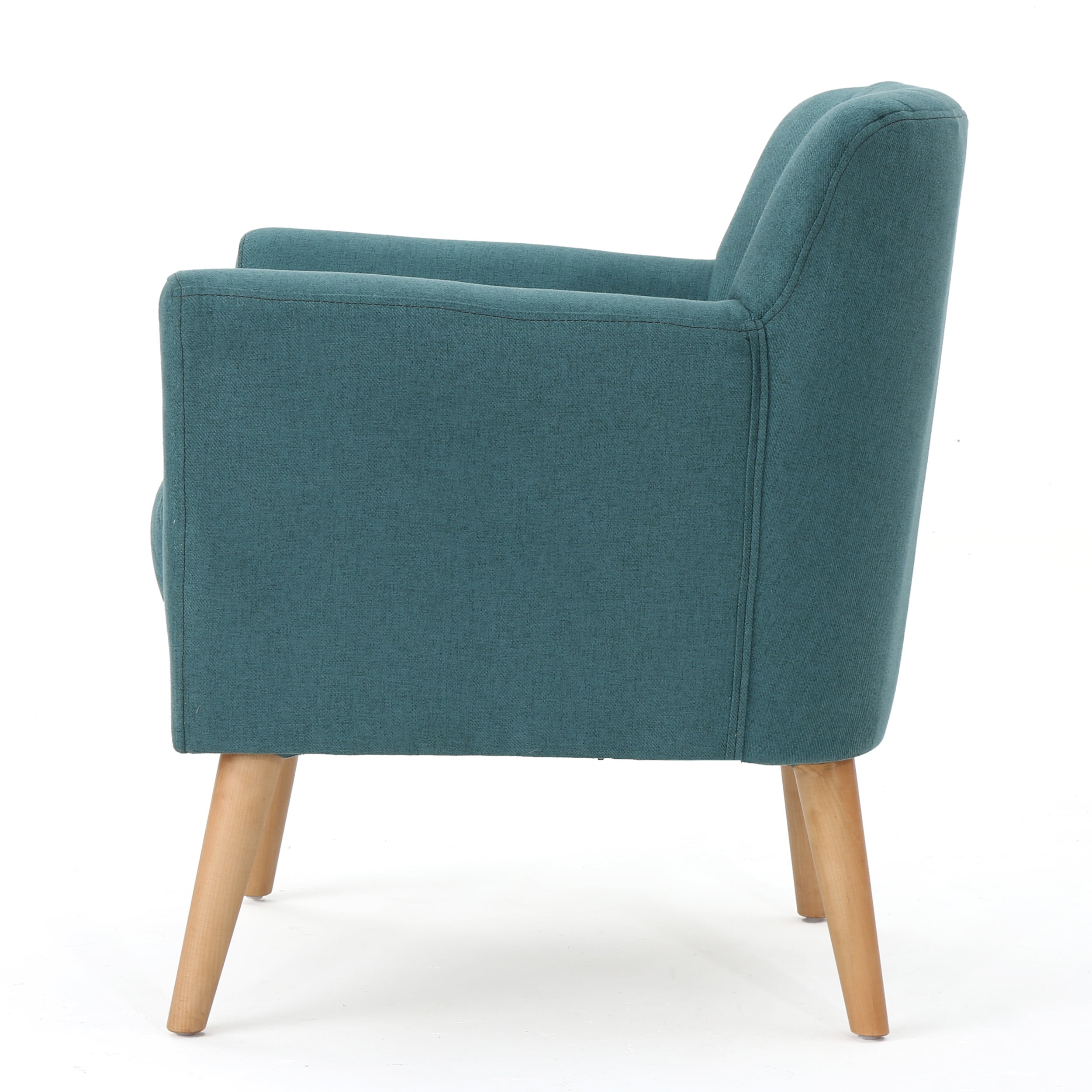 Noble House Sweetbrier Fabric and Wood Club Chair, Blue: Includes: One (1) Club Chair Material: Fabric Leg Material: Birch Wood Multiple Color Options Leg Finish: Natural Assembly Required Dimensions: 27.60 inches deep x 28.30 inches wide x 31.50 inches high Seat Dimensions: 19.60 inches deep x 19.75 inches wide x 19.00 inches high Arm Height: 25.25 inches Weight Capacity: 300 lbs