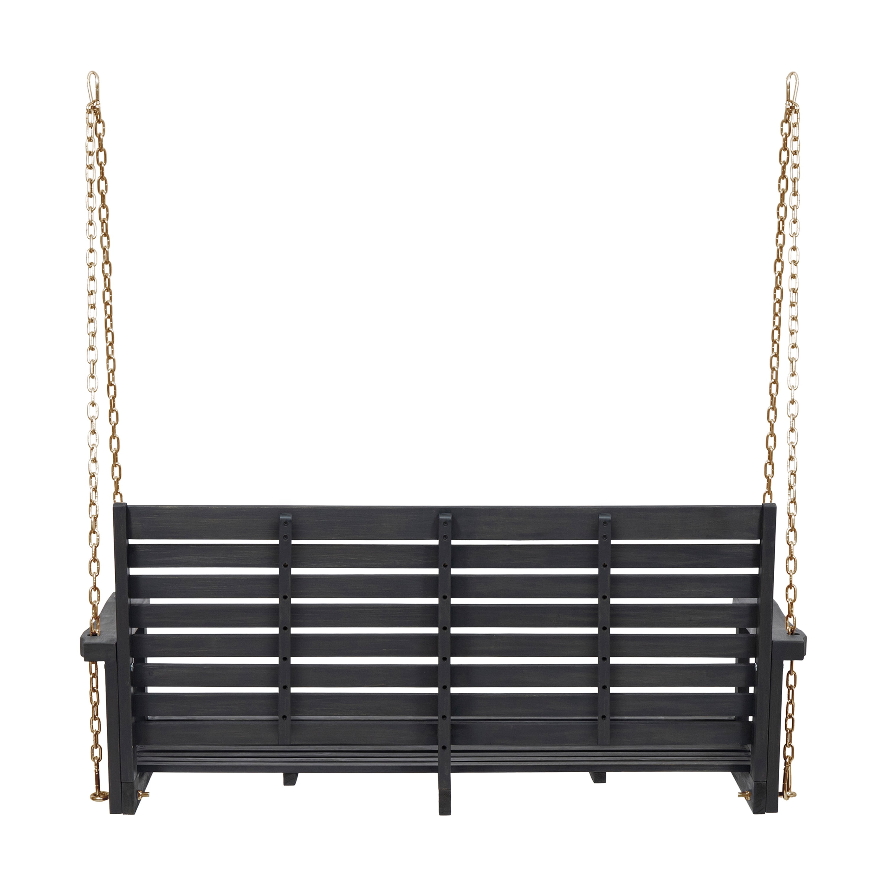 Slow swings and soft sunsets can easily become a regular enjoyment for your household with a simple yet beloved addition. With a sturdy acacia wood frame and horizontally slatted design, our classic porch swing offers any garden or deck a relaxing space for you and your family to unwind. Finished with a hand-crafted wash, this swing not only enlivens your soul but also your outdoor décor in refined style. So take a step back and relish the summer breeze under the open sky of the great outdoors. ACACIA WOOD: Made with acacia wood that brings a sleek and exotic look to your space, this durable hardwood naturally withstands outdoor elements and will not darken over time. Acacia wood is perfect as a solid, heavy frame that resists wear and tear. SLAT DESIGN: This porch swing features beautifully slatted backrests and seating, giving this set a classic look. The open slat paneling also offers a breathable feature to help regulate body temperature on a warm day. COMPLEMENTING FINISH: Accented with a complementing finish, our porch swing features a gorgeous wash that emphasizes its wood structure and provides a homey hand-crafted feel. DIMENSIONS: Choose an accessory that is the perfect size for you and your furniture. This swing is 49.50” W x 26.00” D x 21.75” H and has seat dimensions of 44.00” W x 19.75” D x 3.75” H. The swing comes with 8 feet chains that are long enough to accommodate a standard 8-foot ceiling. The weight capacity is 800 pounds. ASSEMBLY REQUIRED: Some assembly is required for this porch swing. All of the instructions and tools needed for assembly are included. Features: Includes: One (1) Porch Swing Material: Acacia Wood Chain Material: Iron Finish: Dark Gray Chain Finish: Black Hand-Crafted Details Some Assembly Required Specifications: Product Dimensions: 21.75″ H x 26.00″ W x 49.75″ D Product Weight: 37.48 lbs Seat Dimensions: 3.75″ H x 44.00″ W x 19.75″ D Arm Height: 13.00″