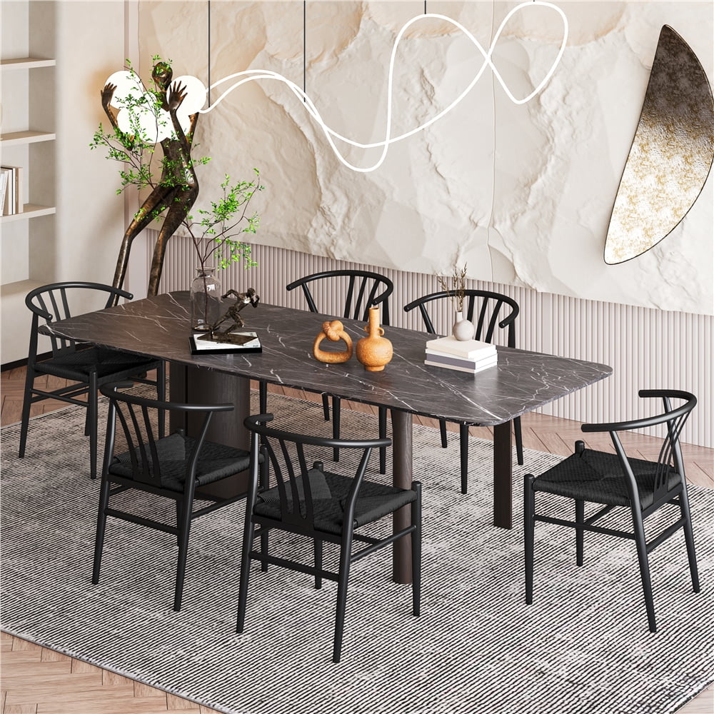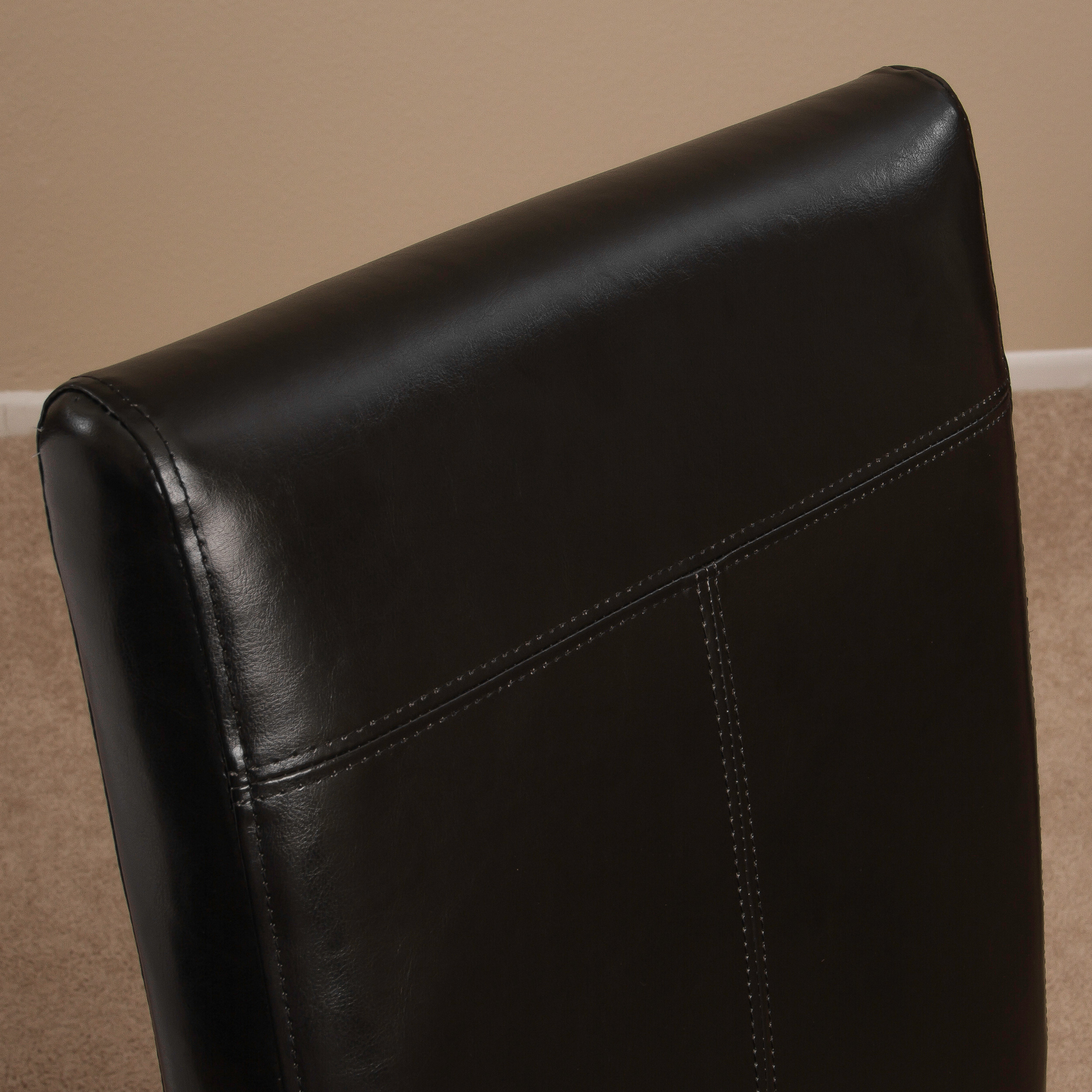 Noble House Thomas Contemporary Faux Leather Dining Chairs, Set of 2, Black: Includes: Two (2) Dining Chairs Material: Faux Leather Leg Material: Birch Multiple Material Options Leg Finish: Espresso Hand-Crafted Details Assembly Required Dimensions: 23.50 inches deep x 17.75 inches wide x 39.50 inches high Seat Dimensions: 16.00 inches deep x 17.75 inches wide x 18.50 inches high