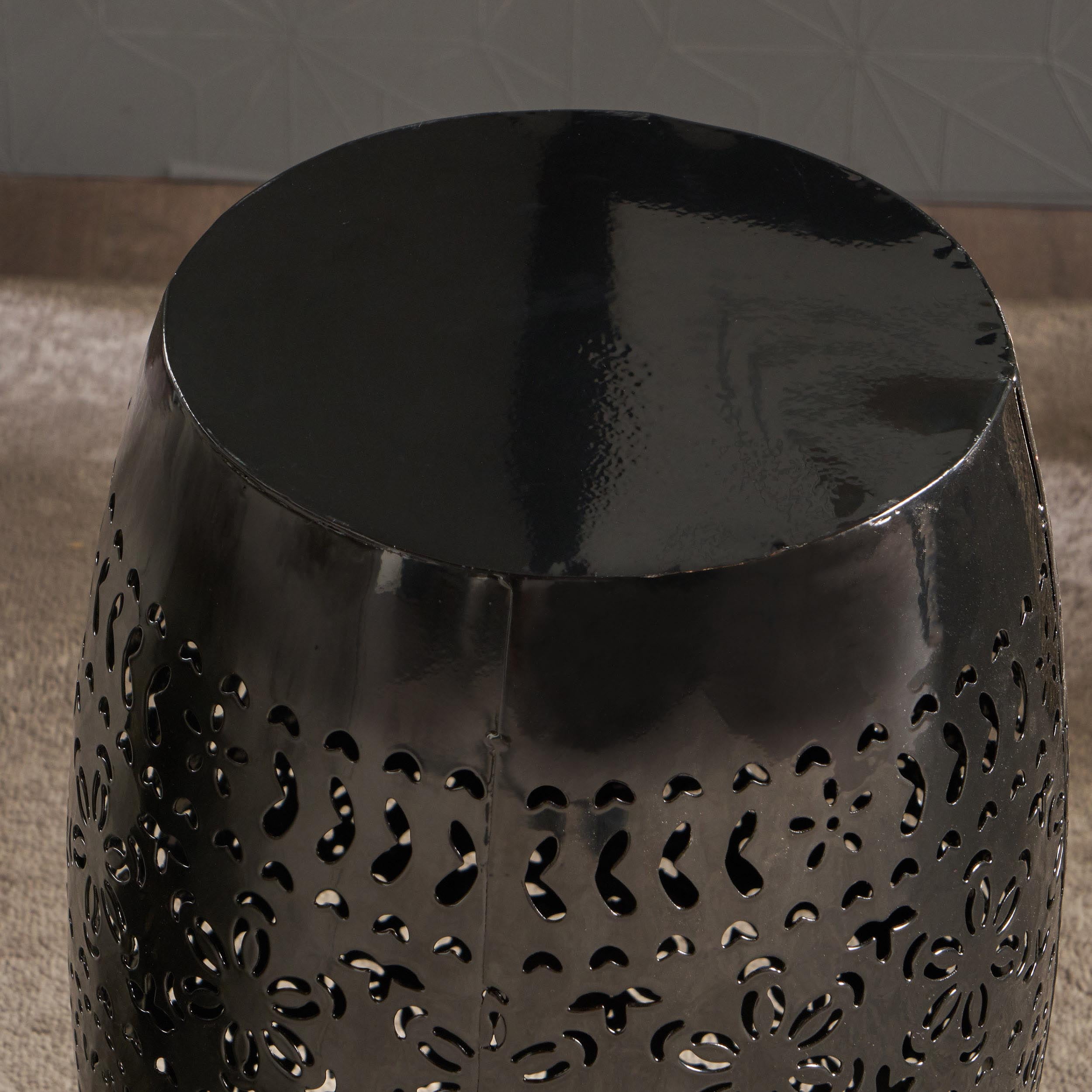 Noble House Valley Indoor 12″ Lace Cut Iron Side Table, Black