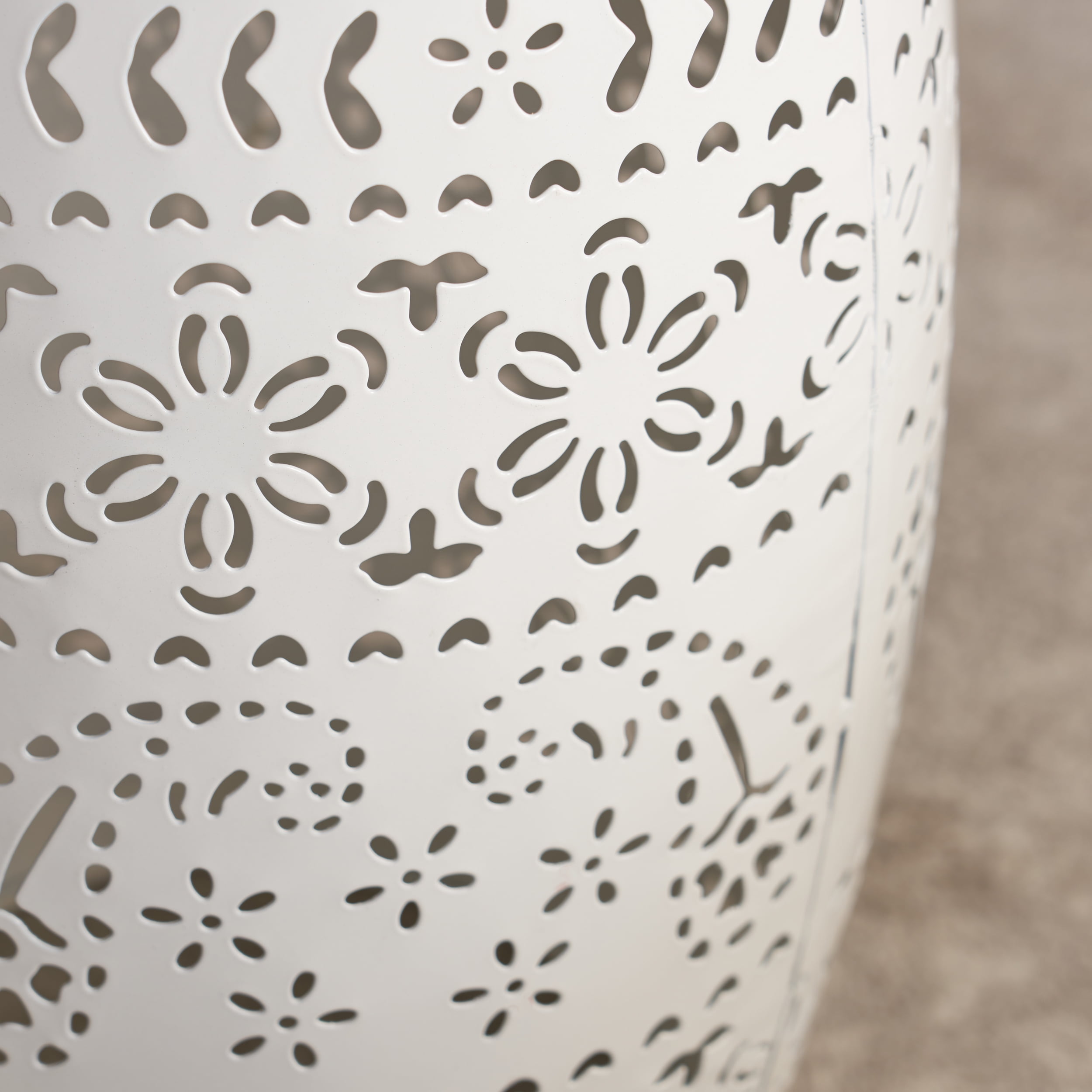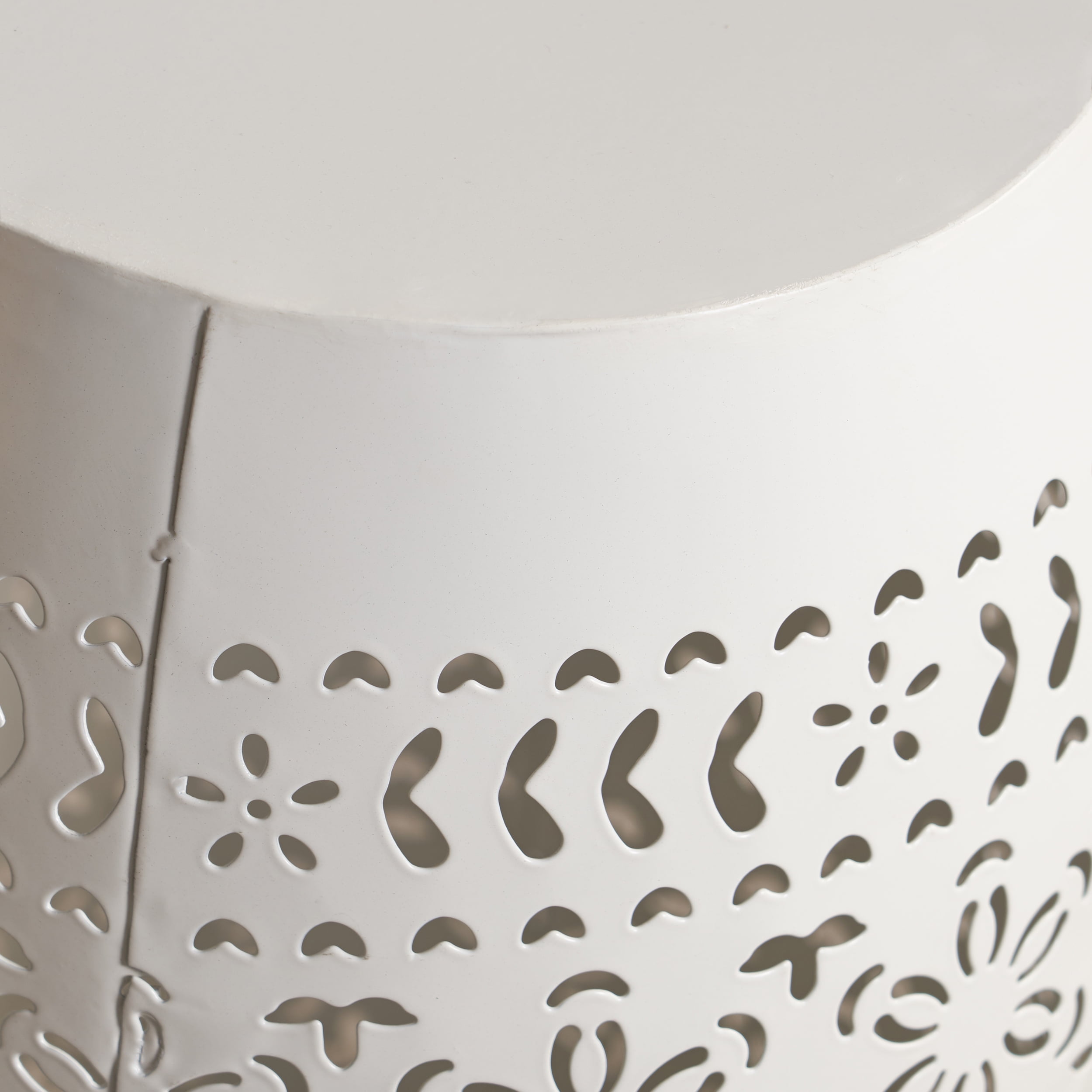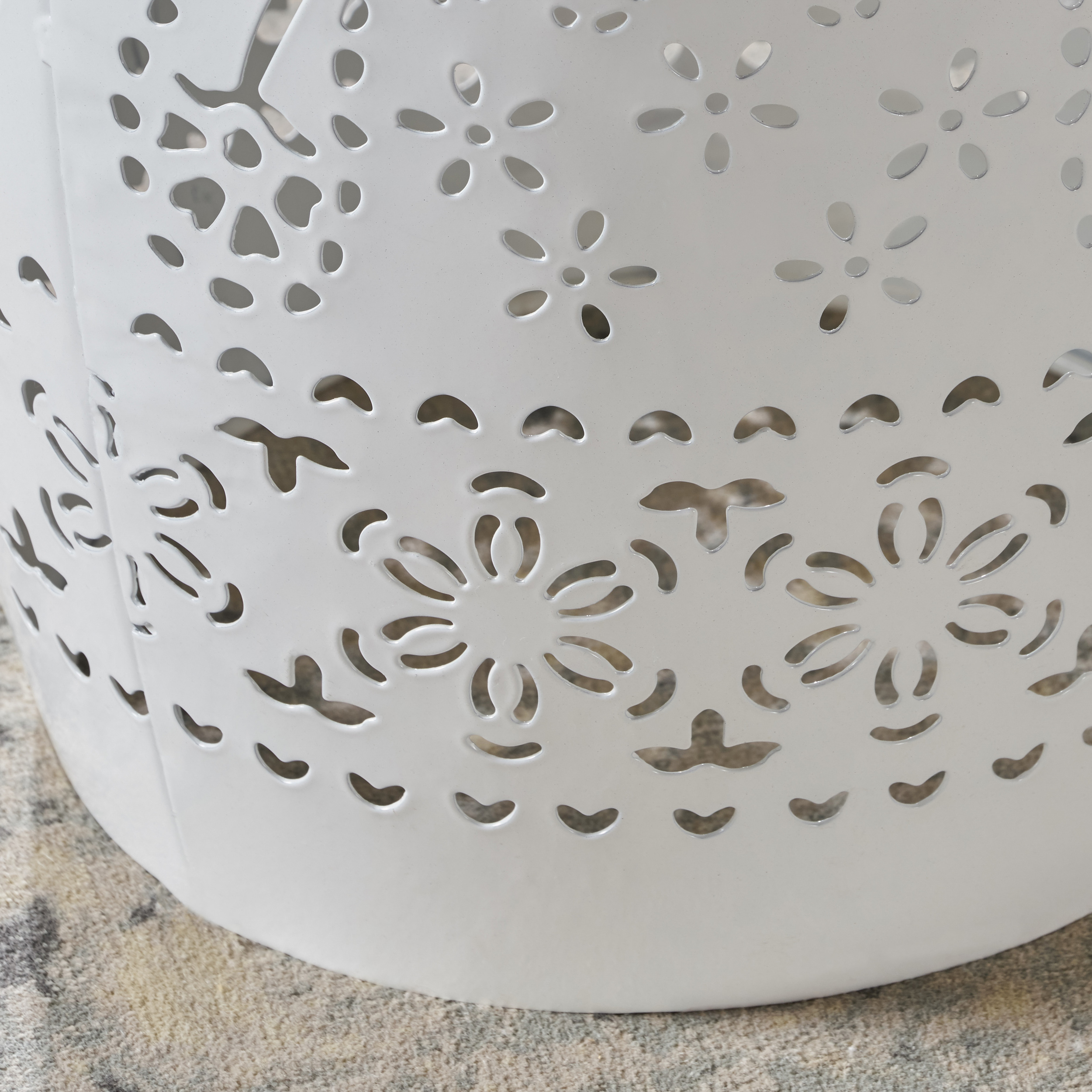 Noble House Valley Indoor 12″ Lace Cut Iron Side Table, White