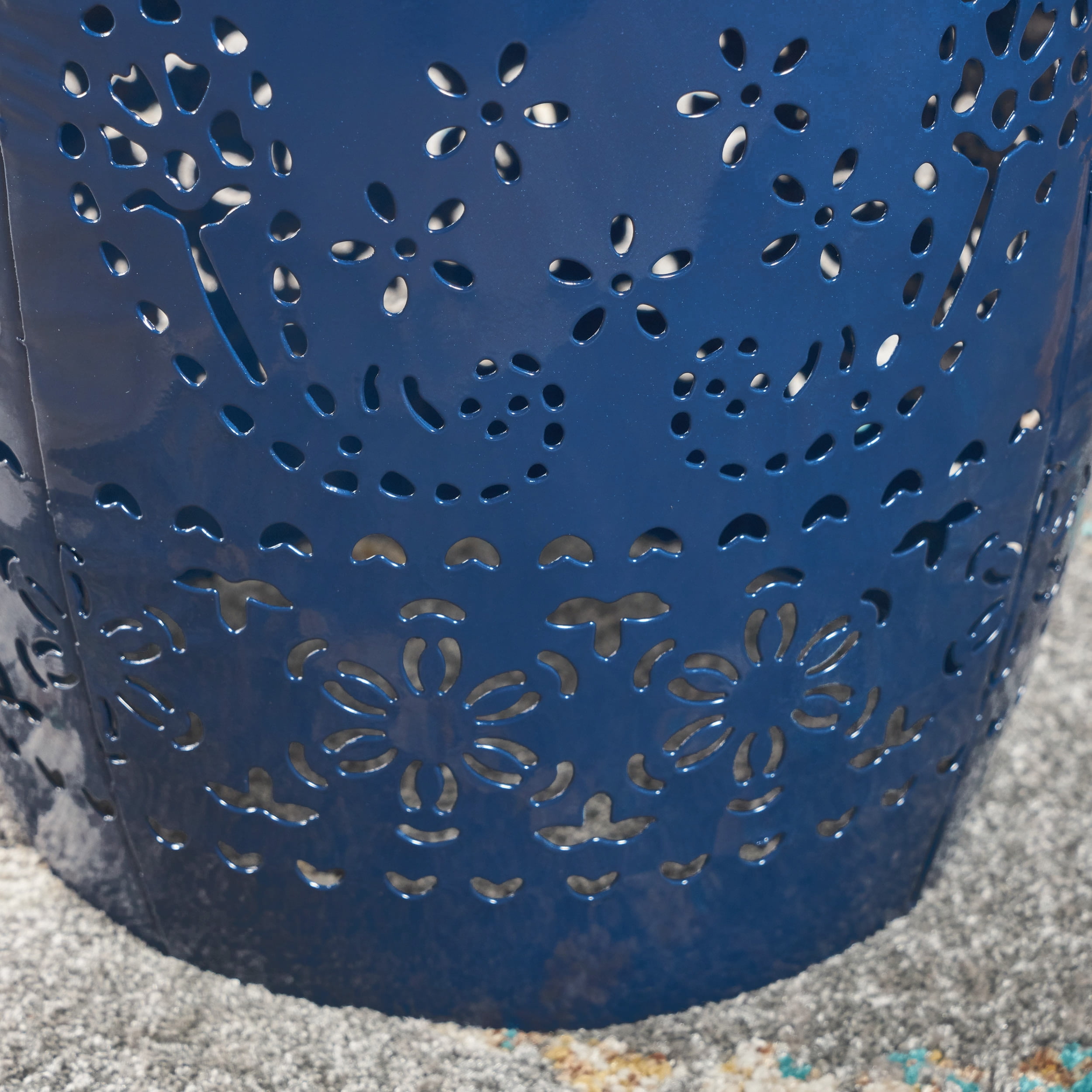 Whether you’re using this in your backyard space or in your living room, combine this accessory with your favorite chair to create a cozy corner. With a sleek, modern barrel structure, this end table is an excellent sidekick to your existing outdoor or indoor furniture, perfect for holding a tray of snacks or a pitcher of lemonade. The frame of our side table features a beautiful lace cut pattern, making this great for any area in need of something new. MODERN DESIGN: With clean, precise lines, our side is the ideal modern accessory for your space. Finished with a charming barrel structure and lace-cut design, this table not only offers a chic, minimalistic look but also provides incredible structure. LACE CUT DESIGN: Refined with a lace cut design, the frame of this table brings an elegant touch to the overall piece, making it an understated yet chic addition to your home. METAL FRAME: Constructed of powder-coated iron, the frame of this table is made to be incredibly durable, ensuring that this piece will hold up under use. DIMENSIONS: Choose an accessory that is the perfect size for you and your furniture. This accent table measures to be 12.25” W x 12.25” D x 18.00” H. You will love how much your space can transform with the simple addition of this charming table. NO ASSEMBLY: This accent table comes ready to use straight out of the box. No assembly is required.