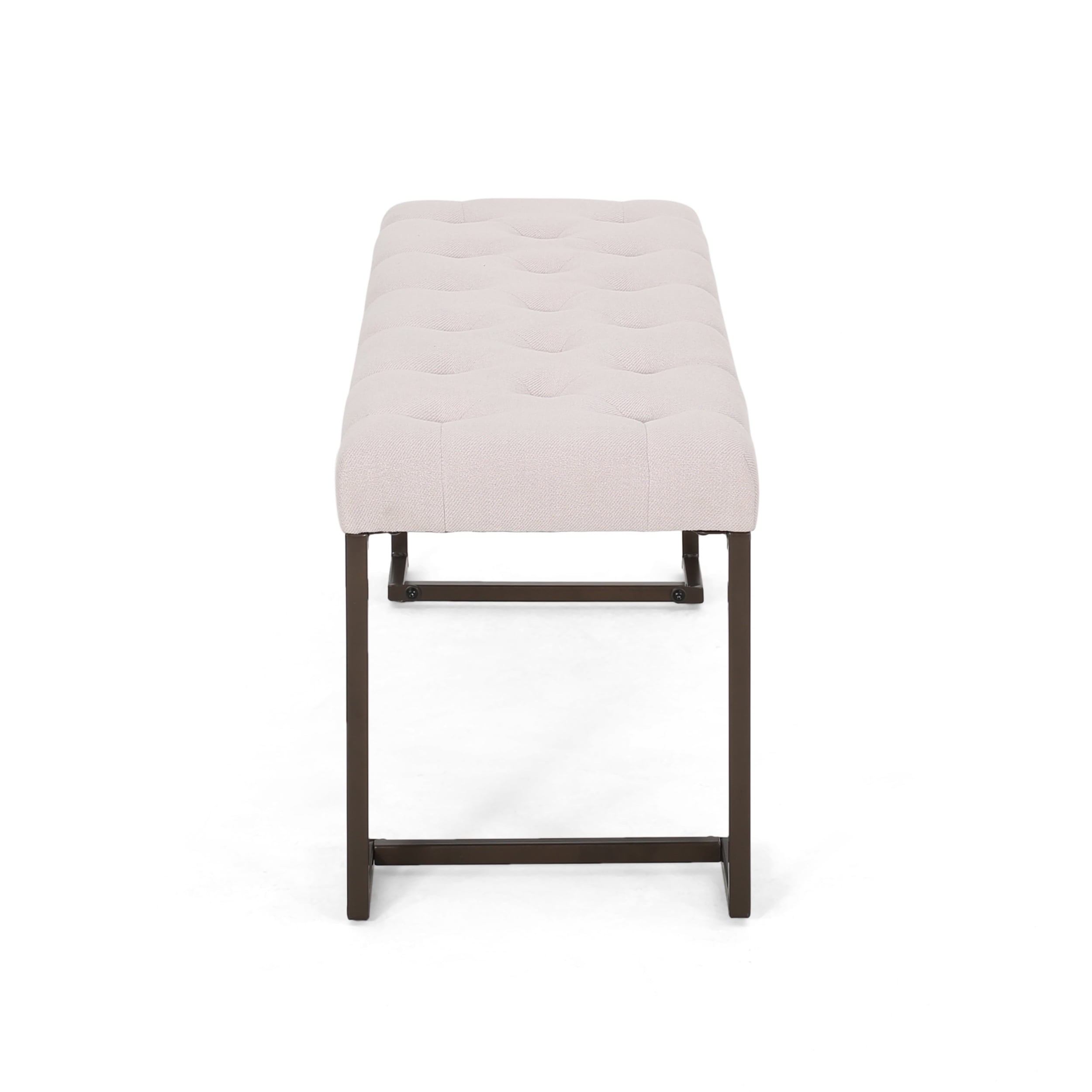 Noble House Vincenzo Modern Fabric Bench, Beige, Bronze