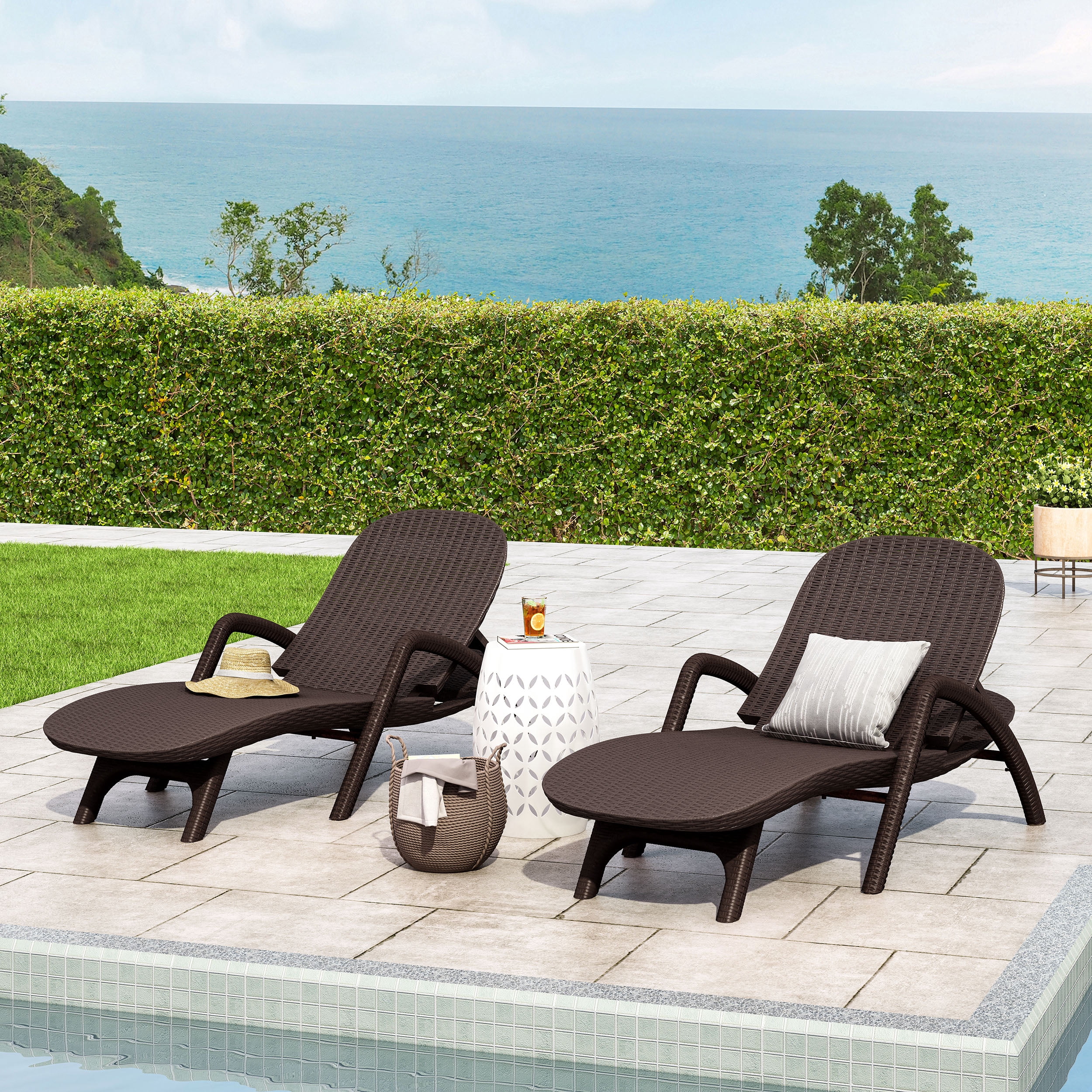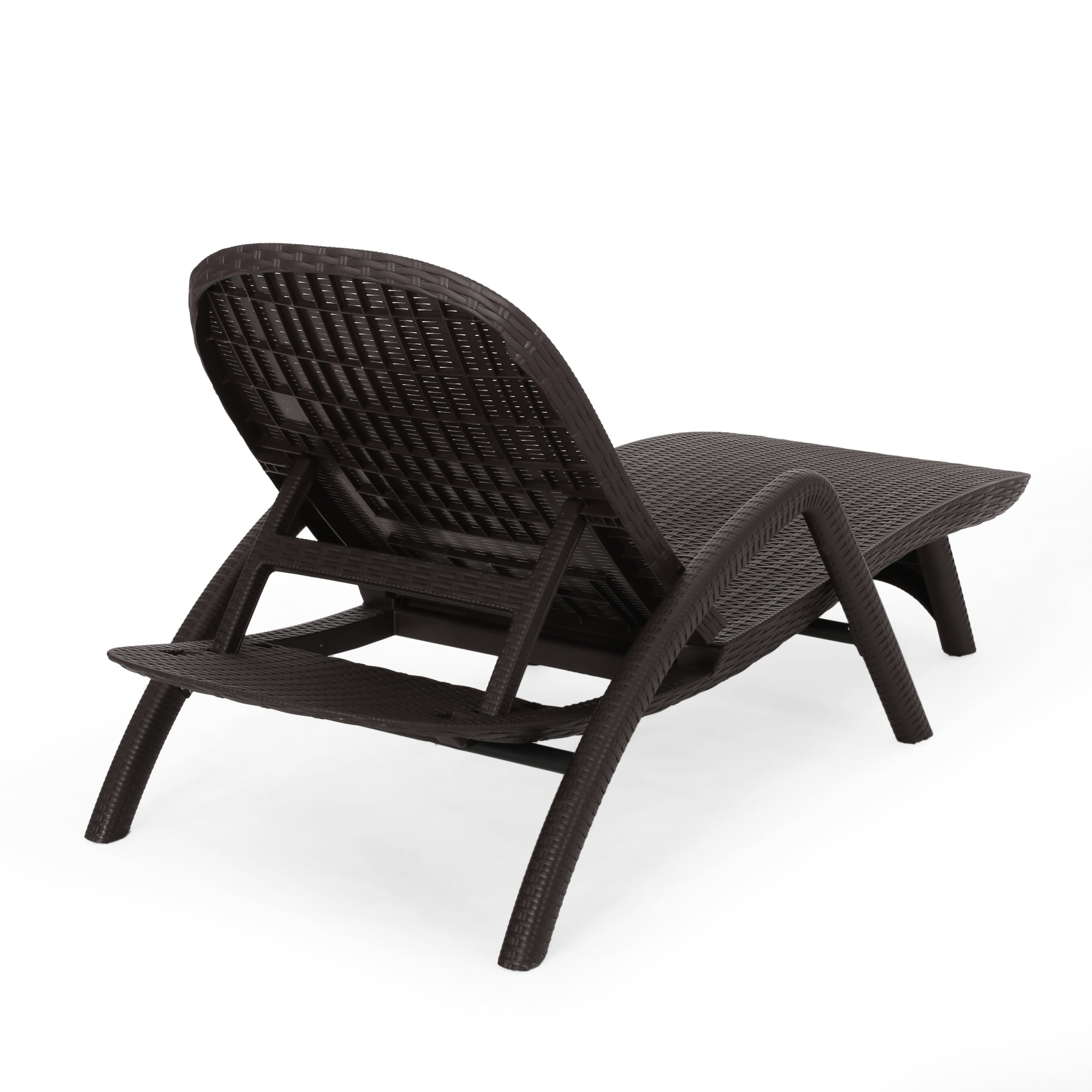 Includes: Two (2) Chaise Lounges Material: Polypropylene Resin Finish: Dark Brown Hand-Crafted Details Assembly Required