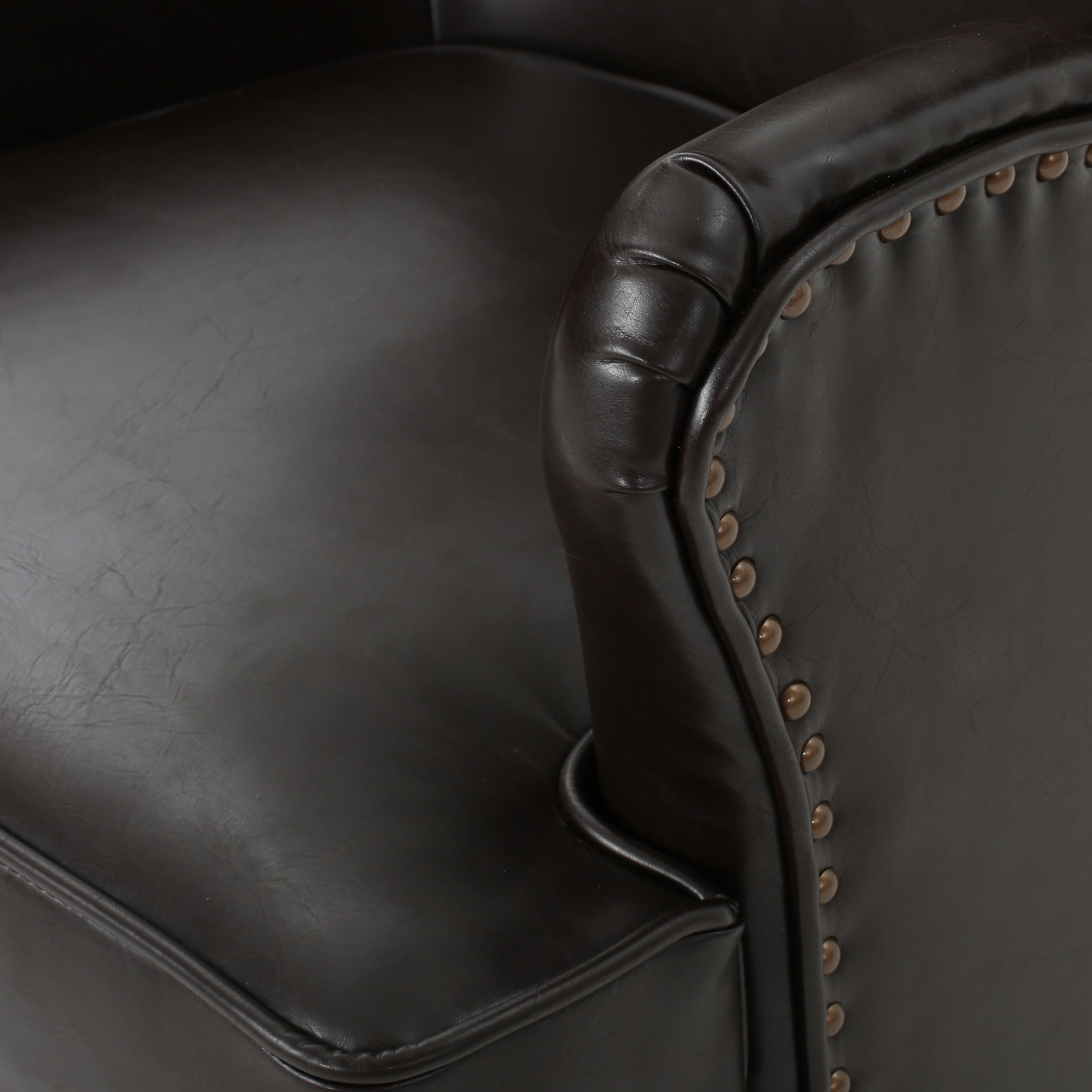 Includes: One (1) Club Chair Material: Bonded Leather Leg Material: Birch Wood Color: Brown Leg Color: Dark Brown Assembly Required Dimensions: 32.75 inches deep x 31.00 inches wide x 41.25 inches high Seat Dimensions: 20.50 inches deep x 20.00 inches wide x 18.50 inches high Arm Height: 24.50 inches Weight Capacity: 300 lbs