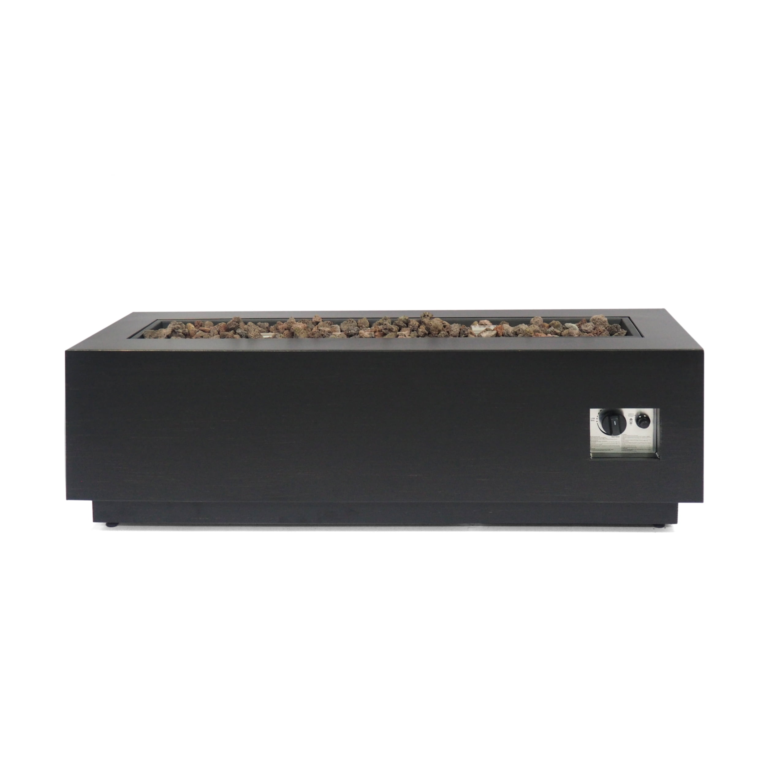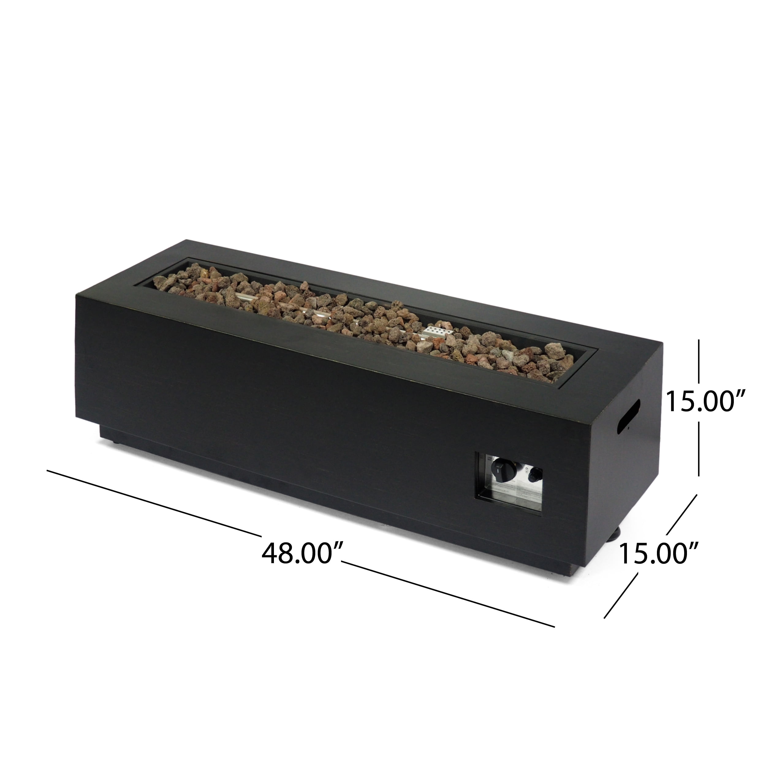 Enjoy a warm glow of a delightful fire on a summer evening with some of your closest friends and family. With a rectangular structure of powder-coated iron, this 50,000 BTU propane gas fire pit not only offers an incredible upgrade in style but is also perfect for parties due to its easy seating arrangement and matching tank holder. From intimate conversations around a cozy fire to stargazing on cool summer nights, our fire pit will have no trouble gathering everyone together for hours of quality time.IRON FIRE PIT WITH FINISH: Constructed of powder-coated iron, the frame of this fire pit is made to be incredibly durable, ensuring that this piece will hold up under use. The frame is finished with a complementing color, making this an understated yet chic addition to your home.TANK HOLDER: This fire pit comes with a matching tank holder to keep your propane tank inconspicuous. This is also made of iron so you can arrange this piece however you please and your set will always look classy.5,000 BTU: Featuring a rectangular shape and a BTU of 50,000, our fire pit allows easy seating arrangement for you and your guests, providing light and warmth all around during those chilly evenings. Please note that this fire pit is propane gas only.DIMENSIONS: Choose an accessory that is the perfect size for you and your furniture. This fire pit is 48″ W x 15″ D x 15″ H and the tank holder is 15.25″ W x 15.25″ D x 19.75″ H. You will love how much your space can transform with the simple addition of this charming fire pit.NO ASSEMBLY REQUIRED: No assembly is required for this fire pit. Simply place the lava rocks in the pit without covering the burner, and then plug in your standard-size propane tank and enjoy your fire pit. Features: Includes: One (1) Fire Pit, One (1) Tank Holder Material: Iron Multiple Color Options 50,000 BTU Propane Gas Only No Assembly Required Specifications: Product Dimensions: (Fire Pit) 15″H x 48″W x 15″D