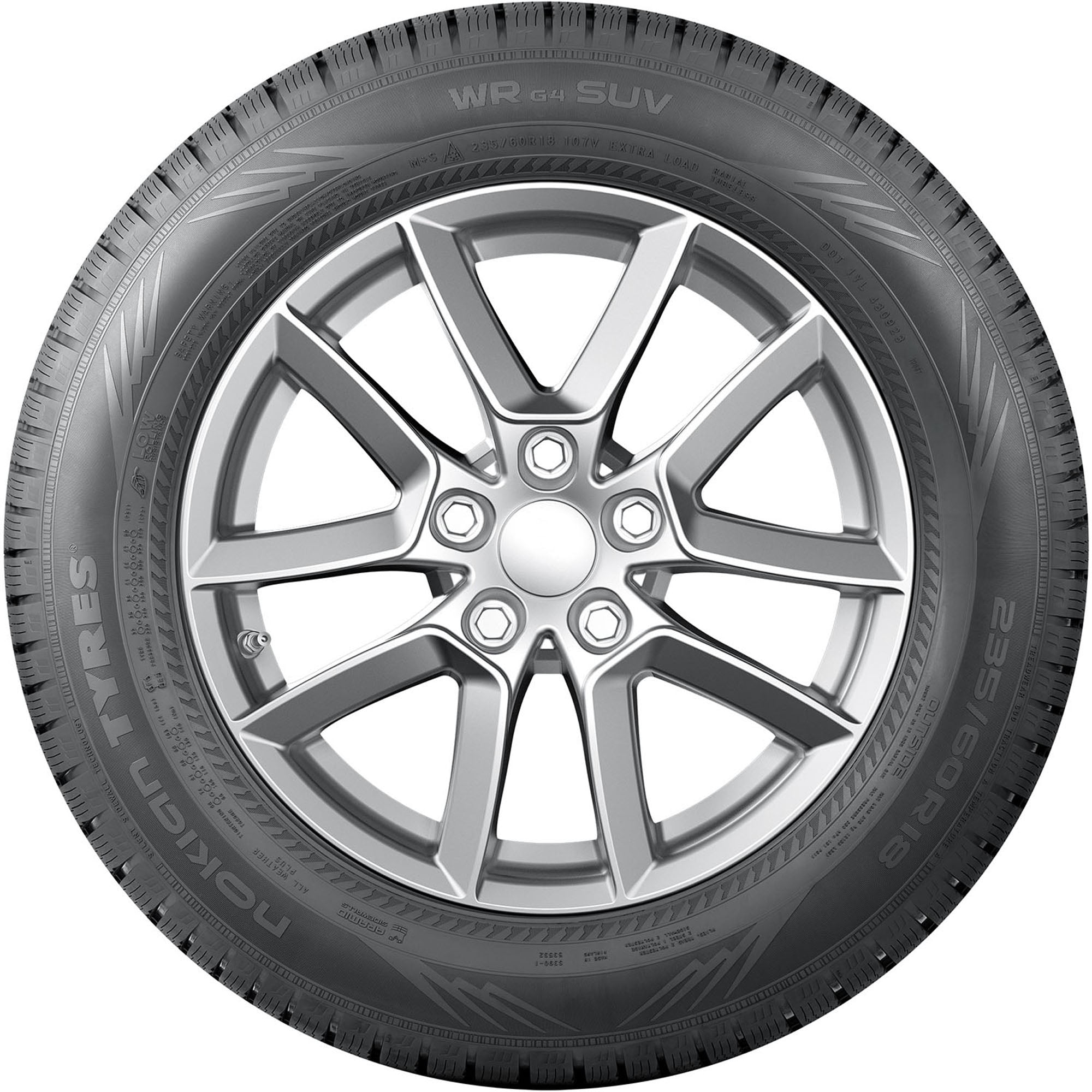 Nokian WR G4 SUV 255/55R18 109V XL OVERVIEW The WR G4 SUV from Nokian is a true all-weather tire, with uncompromising performance in heat, rain, snow, or sleet. The WR G4 SUV features an Aramid-reinforced sidewall for durability, an asymmetric tread pattern designed for responsive handling in wet or dry weather, and a dense sipe network with angled grooves for grip in snow and slush. The WR G4 SUV is a good choice for SUVs and light trucks, in addition to EV and hybrid vehicles thanks to its low rolling resistance, and is Three Peak Mountain Snowflake certified for use in moderate to severe winter weather. Additionally, the WR G4 SUV is backed by a 60,000 mile limited manufacturer tread life.