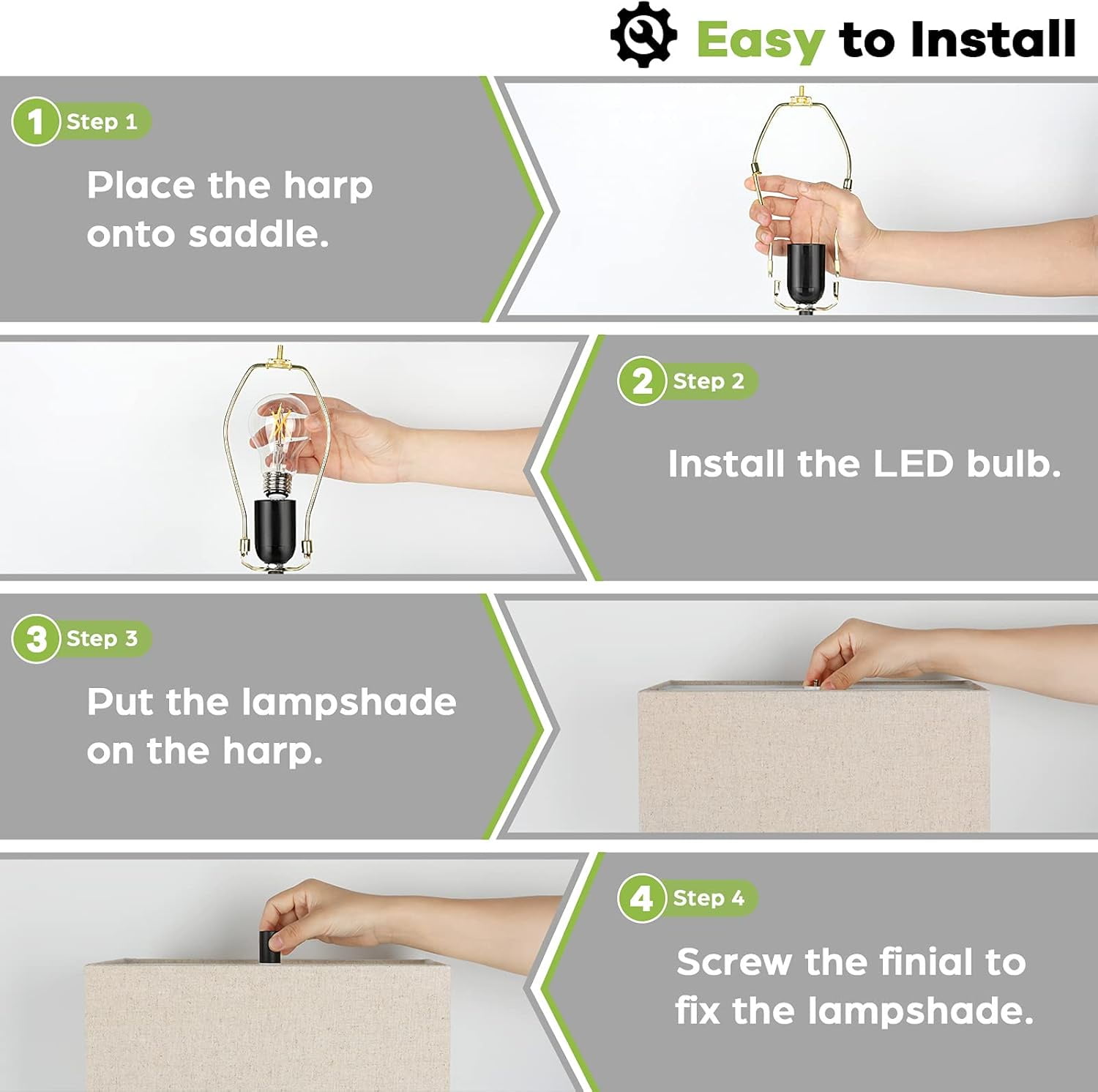 【3 Way Touch Control Dimmable Table Lamp】This modern table lamp adopted with 3 level brightness(low-medium-high) which could satisfying your different needs for home or office at a day. Hassle-free touch table lamp set provide your favorite luminance by tapping anywhere of the metal parts like base, stem even the top finial. No more step to reach a far switch while in bed! Useful gift for your friend to put in bedroom/living room/bedside nightstand (Designed by TOBUSA, Patent No. D985180) 【Excellent 2 USB Charging Ports&AC Outlet】Both bedside touch table lamps comes with dual 5v/2.1A USB charging ports. Great design to charge your phones and other electronic devices such as kindle, earphones, speaker, Ipad, ideal for an end table lamp. Are you encountering a less socket around your bed when urgently needs in total darkness? A practical US standard 2-prong AC outlet is an extraordinary setting taken care of all your charging demand in on spot 【Easy to Assemble&Exquisite Fabric Shade】Our modern nightstand lamp sets comes with super easy assembling which skip painless step-by-step instructions. 4 steps bring you an elegant touch lamp set, ideal for any DIY project. Kindly be noted the ‘Harvard harp’(which to hold the lampshade) should put in the saddle with no inclination to ensure the balance status for the whole lamp. The premium cream lampshade plus matte black finishing create a sophisticated modern decor in your ambient 【Free LED Bulbs Included as Bouns】2 free A19 LED Edison bulbs included, no extra market trip seeking for compatible bulbs and save your bucks! Those bulbs give off 2700k warm white light at 800 lumen which only consume 7w, such a considerate eye-caring & energy-saving design home improvement. 21.85in height and 7.28in width allow the bulb for 360°illumination, ideal choice for bedside reading, end table lamp, side table, office work. Light up your space with TOBUSA modern table lamp set 【Modern Design&Sturdy Metal Made】TOBUSA modern-designed table lamp sets would be a fantastic gift for your friends, families to create kind of chic, minimalist style among their ambient. Anti-rust black finish makes it to last and super easy to clean. The heavy-made metal base with two paralleled sturdy poles support the whole lamp without any shaking, slippery. Safe lamp sets to put in your kids room, guests room, nursery room