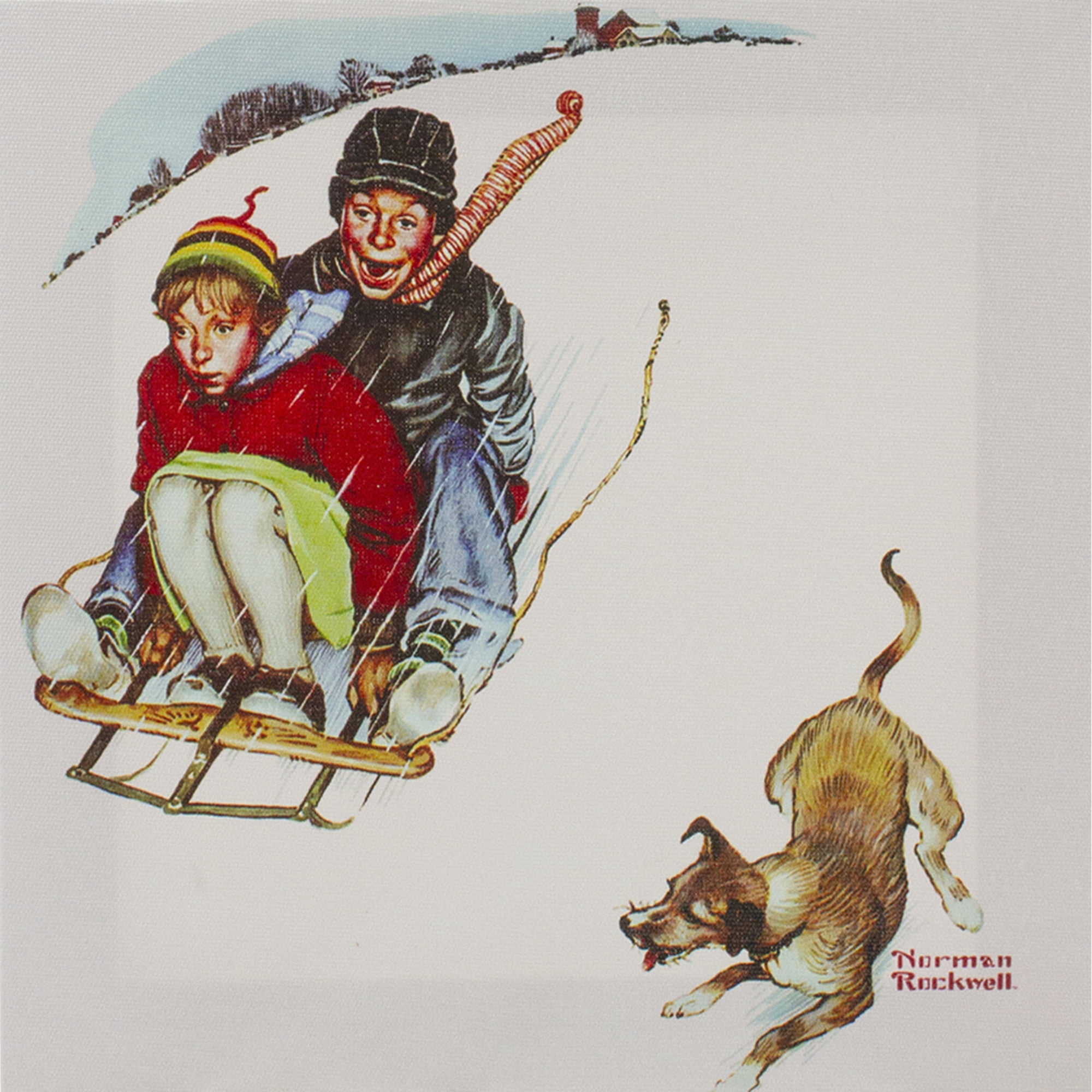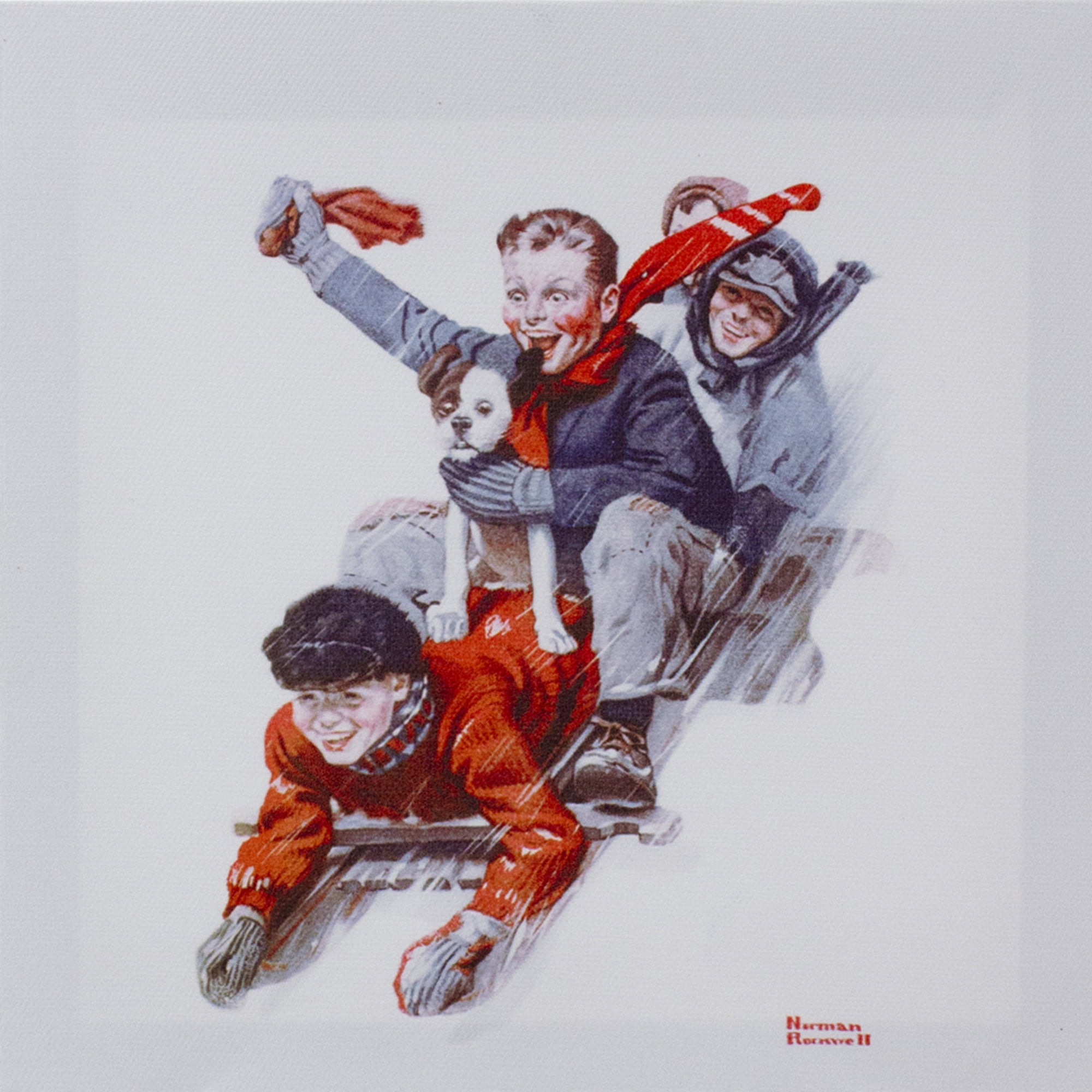 Official licensed merchandise Set of 4 Norman Rockwell Christmas canvas prints Prints include: ‘Santa Eating Milk and Cookies’, ‘The Day After Christmas’, ‘Four Boys On a Sled’ and ‘Young Love: Sledding’ Hang on your wall with the attached hanging hardware on the back Recommended for indoor use only Dimensions: 8″ H x 8″ L x 0.75″ D Material(s): Canvas/MDF Wood