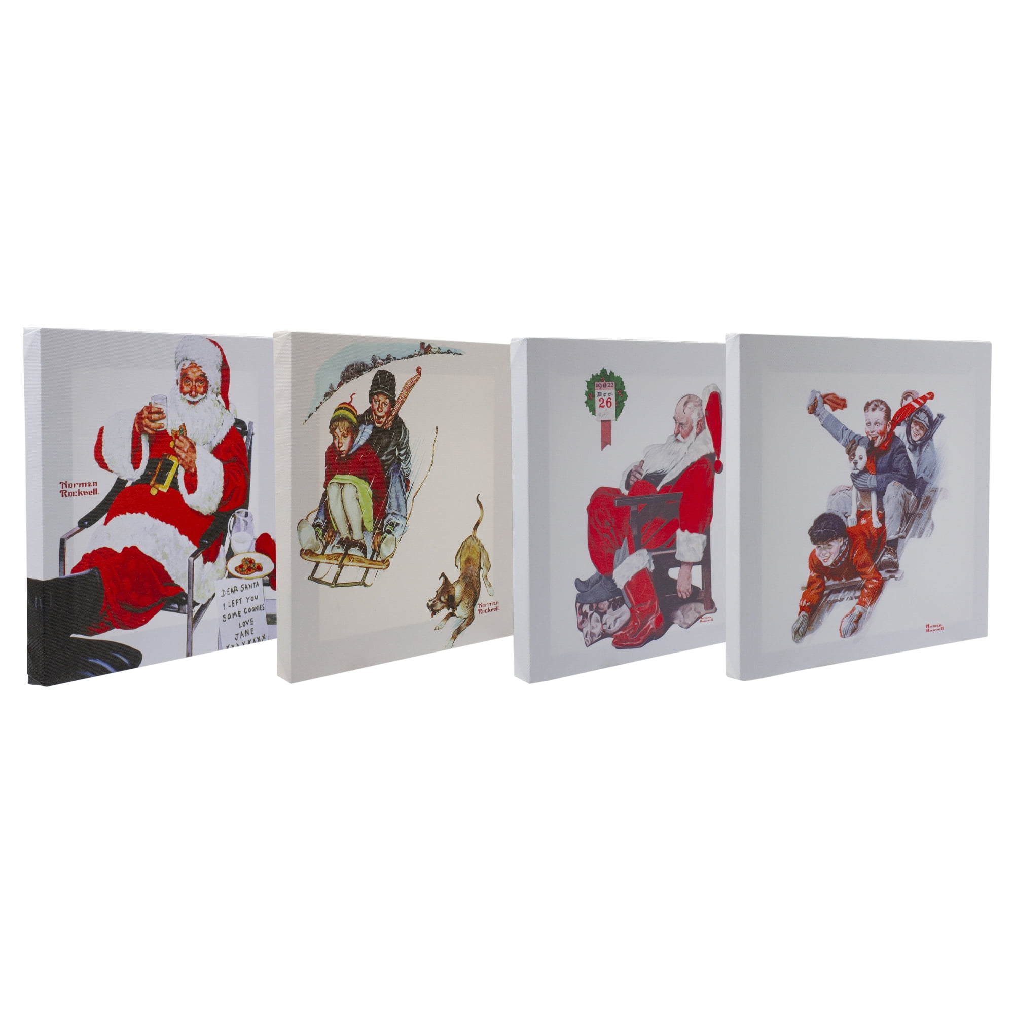 Norman Rockwell Classic Christmas Scene 8 in x 8 in Painting Canvas Art Print, by Northlight Set of 4