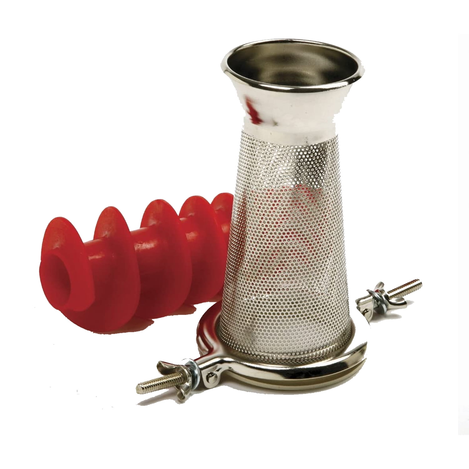 Craft your own soups, sauces, and sides from the freshest ingredients available thanks to the Norpro Kitchen Countertop Original Sauce Master Fruit Vegetable Strainer Press. This countertop food strainer features a wide, deep hopper with a 3-quart capacity, perfect for tomatoes, apples, potatoes, carrots, onions, basil, celery, and more! The chrome-plated steel mesh strainer easily separates pulp, seeds, and juices before depositing them out the sluice. A side-mounted hand-crank offers you precise control over the feed, preventing jams and making it easier to work through more fibrous ingredients. Great for your entire garden, the food and vegetable sauce maker can also fit additional strainer screens (not included) for thicker foods like pumpkins, thicker consistencies for salsa, a berry screen for jams and jellies, and more. For any serious chef, the Norpro Kitchen Countertop Original Sauce Master Fruit Vegetable Strainer Press is a great tool to make the most out of every last ingredient.