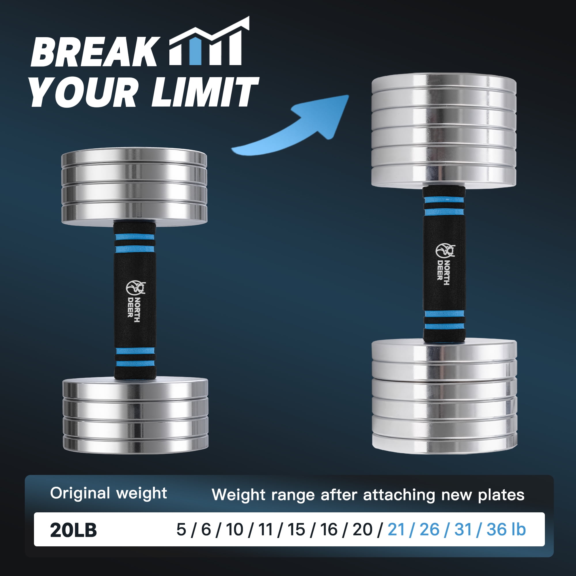 This is the official Northdeer store at . Enjoy the same exclusive 7×24 customer service and warranty after purchase. If you have any questions, we will be happy to help and provide you with a satisfying program. ????The frosted surface gives these weights a premium look and works to hide fingerprints and scratches which helps maintain the service life. ????All Northdeer weights have the same threads, so these plates are compatible with all other Northdeer weights. But please note that the diameter of the plates are different. This Plate diameter is 4.7 inches. ????Just take the end caps off and add the plates you want on your dumbbells.