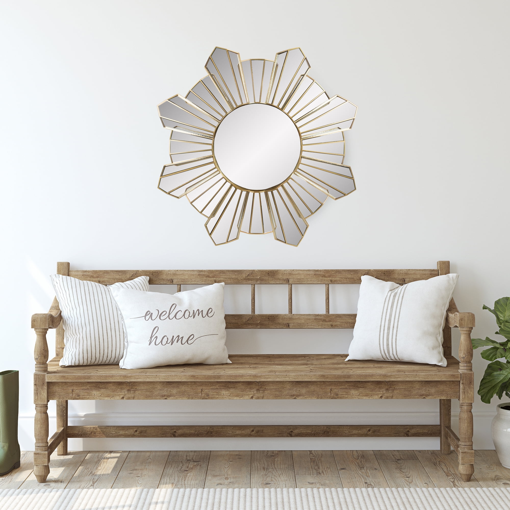 Gold sunburst decorative wall mirror Designed with a mirror in the center Hardware included for easy hanging Recommended for indoor use only; includes hardware Measures 25 inches high by 25 inches wide by 1.5 inches deep