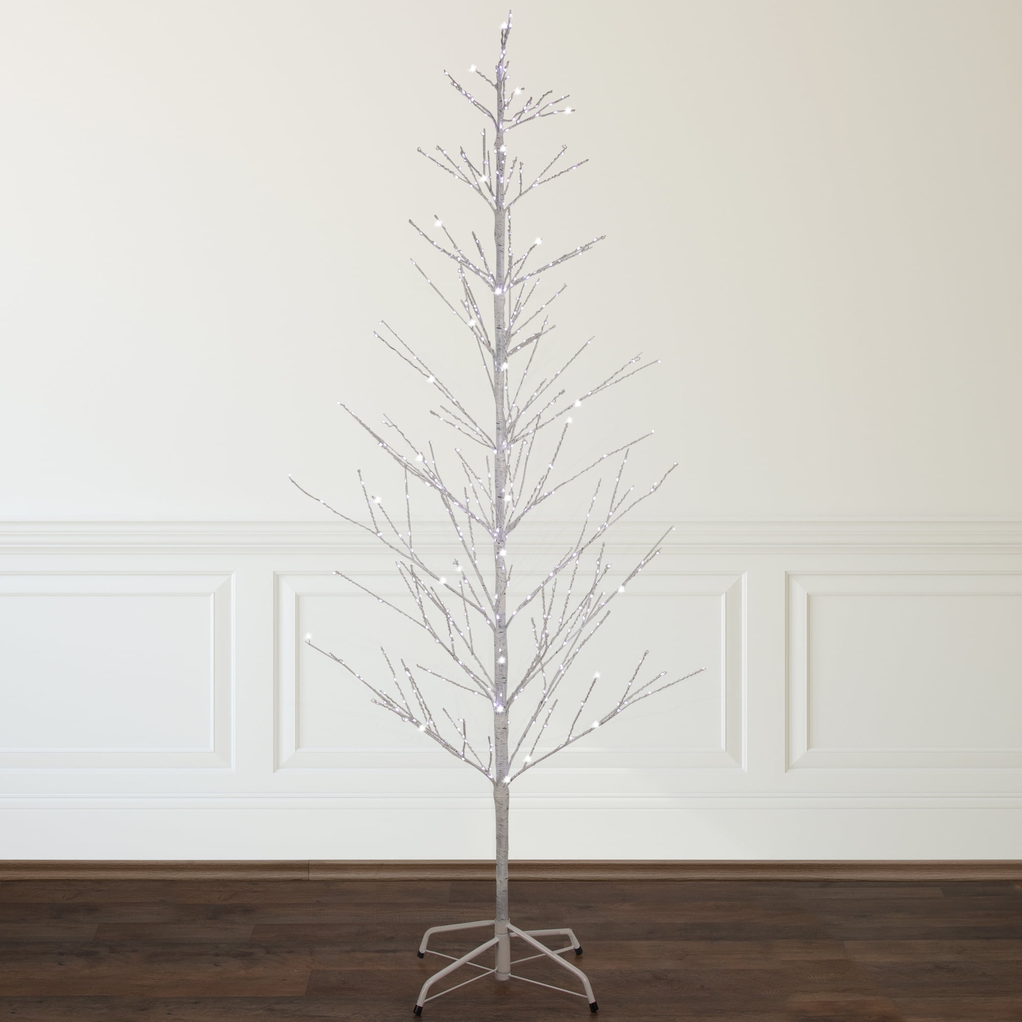 Lighted white birch Christmas twig tree 456 LED pure white bulbs Bendable branches make it easy to position For indoor use or outdoor under a covered area Measures 72 inches high by 22 inches wide by 22 inches deep
