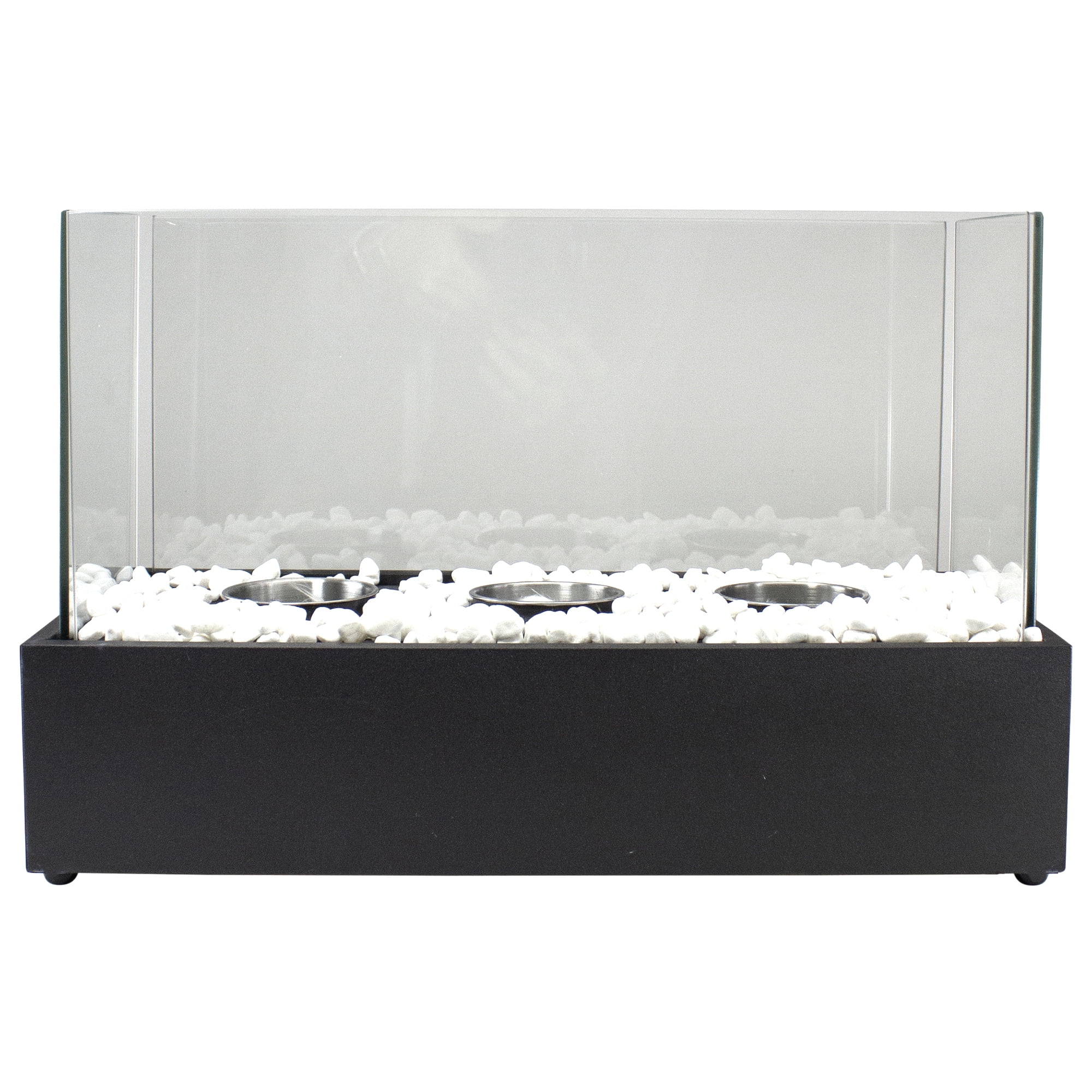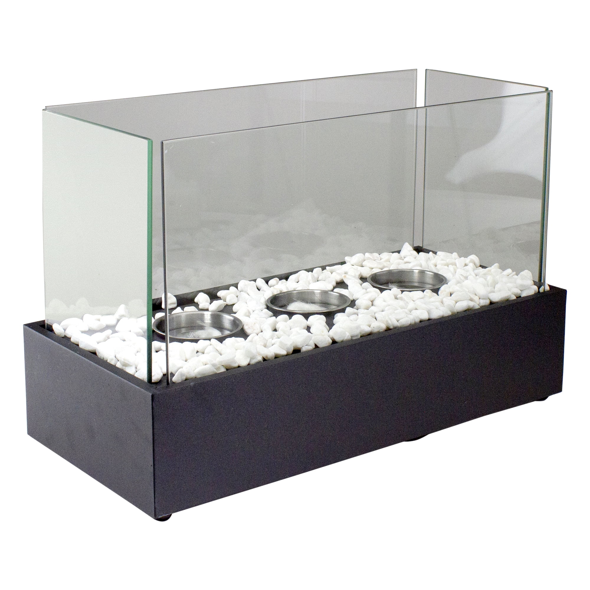 Create a warm relaxing ambiance in your home or outdoor living area with our ventless Bio Ethanol tabletop fireplace. It is fueled by smokeless, odorless, cleaning-burning Bio Ethanol fuel, which means it is safe to use indoors as well as outdoors. Without the need for electricity, a chimney, or framing, you have the ability to move the fireplace from room to room or relocate it to your backyard living space for the summer months. With its sleek modern design and glass panels that allow full flame visibility, this is sure to become a conversation piece. Bio Flame fireplaces are completely self-contained which makes them very quick and easy to install. . Product features: Real triple flame tabletop fireplace. Fueled by odorless, smokeless Bio Ethanol fuel (not included). Powder coated steel construction. Clear tempered glass provides 360 degree full flame view. Easy to light and extinguish with the included snuffer. Includes a wool wick that ensures a longer lasting flame. Fuel capacity: 130ml . Burning time: 70 minutes. For indoor or outdoor use. Quick and easy setup. Dimensions: 11.5″H x 17.75″L x 8.25″W