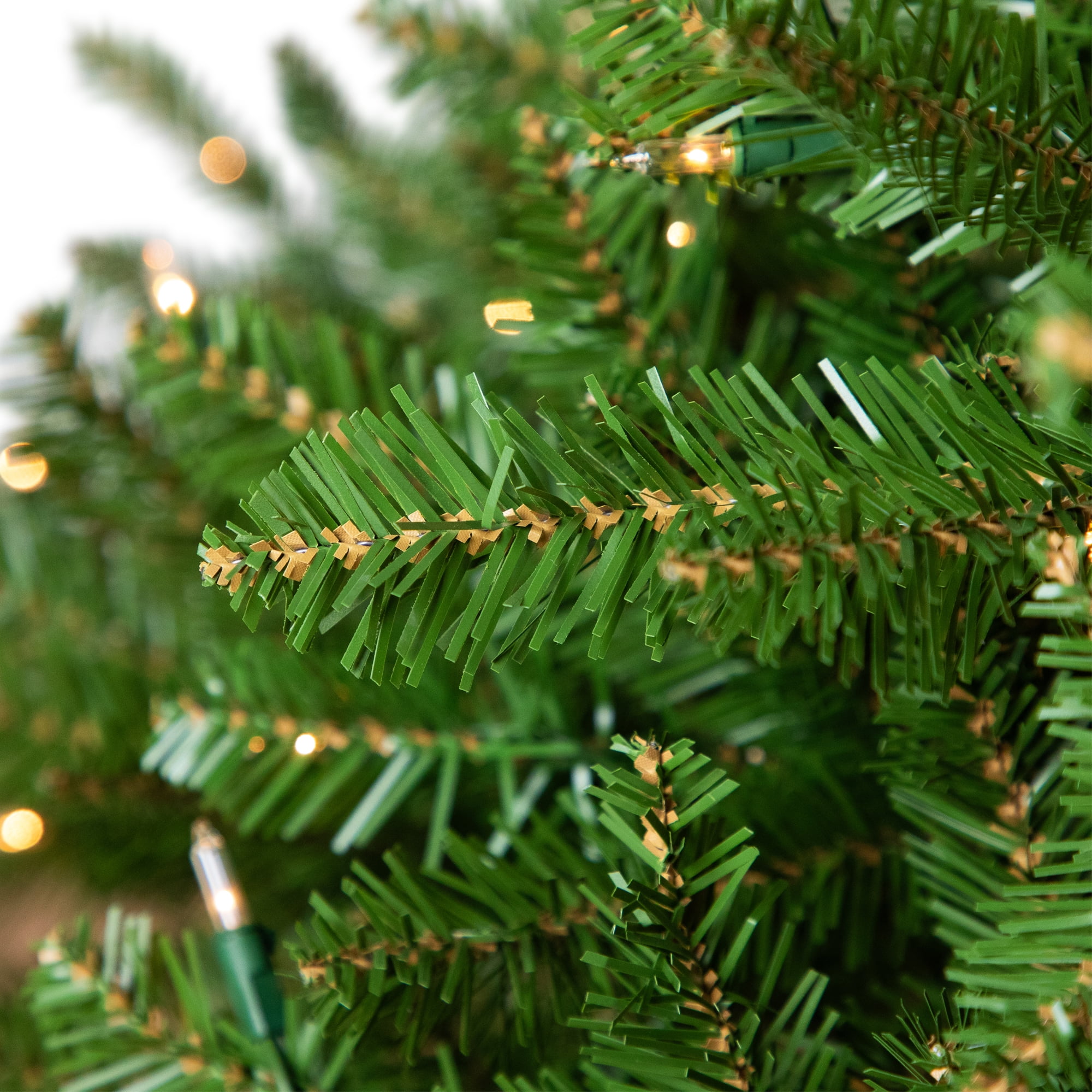 Bring home the charm of a Northern Pine with a 7.5 ft pre lit Christmas tree that’s as easy to set up as it is to enjoy. With 2,514 lush PVC tips and full-profile branches, this pre lit artificial Christmas tree creates a beautiful, natural look. Hinged branch construction makes assembly simple, while 600 clear incandescent lights offer a classic glow. Perfect for those who love artificial Christmas trees with lights, it’s a cozy and reliable centerpiece for years of holiday memories. Product Features: Pre-lit with 600 clear lights. Bulb size: mini. Bulb type: incandescent. 2514 branch tips. 1.75″ wide tips. 70” green lead cord. Additional Product Features: Full profile tree. Hinged branch construction. UL certified and approved. For indoor use only. If one bulb burns out, the rest will stay lit. Lights are equipped with Lamp Lock feature, which makes them replaceable, interchangeable and keep them from falling out. 4-piece easy assembly (including stand). Comes with replacement bulbs and spare fuses. Comes with a FREE green metal tree stand. Wire gauge: 22. 120 volts, 60 hertz, 17 amps, 20.4 watts. Dimensions: 7.5′ high (from the base of the stand to the top of the tree). Distance from floor to the first row of branches: 12”. 56″ base diameter (at the widest point). Material(s): PVC/metal/glass bulbs/wire. Note: Branches are compressed for shipment, and need to be fluffed out upon arrival to look like the photo