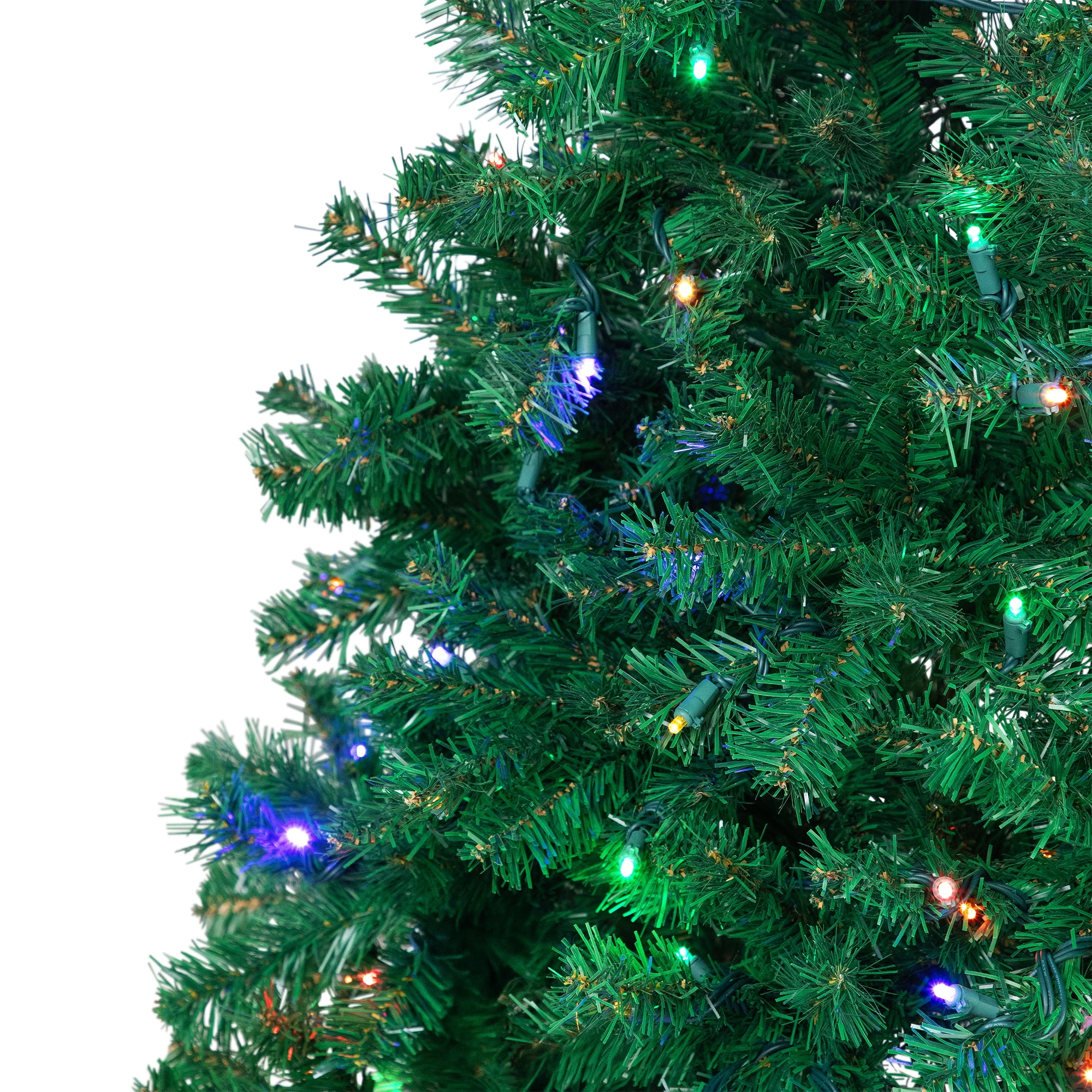This gorgeous tree is sure to make your holiday season merry and bright. Its multicolored lights are sure to light up not only the branches of this tree, but also your home decor. Your family and friends will be delighted to see this durable and timeless addition to your holiday decor. Product Features: Pre-lit with 250 multi-color LED lights. Bulb size: concave wide angle. 890 tips. 2″ wide branch tips. 30″ green lead cord. Medium profile tree. Additional Product Features: If one bulb burns out the rest will stay lit. LED lights use 90% less energy . Durable non-glass bulbs . Cool to the touch . Hinged branch construction. UL listed for indoor use . 4-piece easy assembly (including stand). Comes with a free green metal tree stand. 120 volts, 60 hertz, 17 amps, 20.4 watts. Dimensions: 6′ high (from the base of the stand to the top of the tree). 42″ base diameter (at the widest point). Material(s): PVC/wire/metal/plastic bulbs. Note: Branches are compressed for shipment, and need to be fluffed out upon arrival to look like the photo.