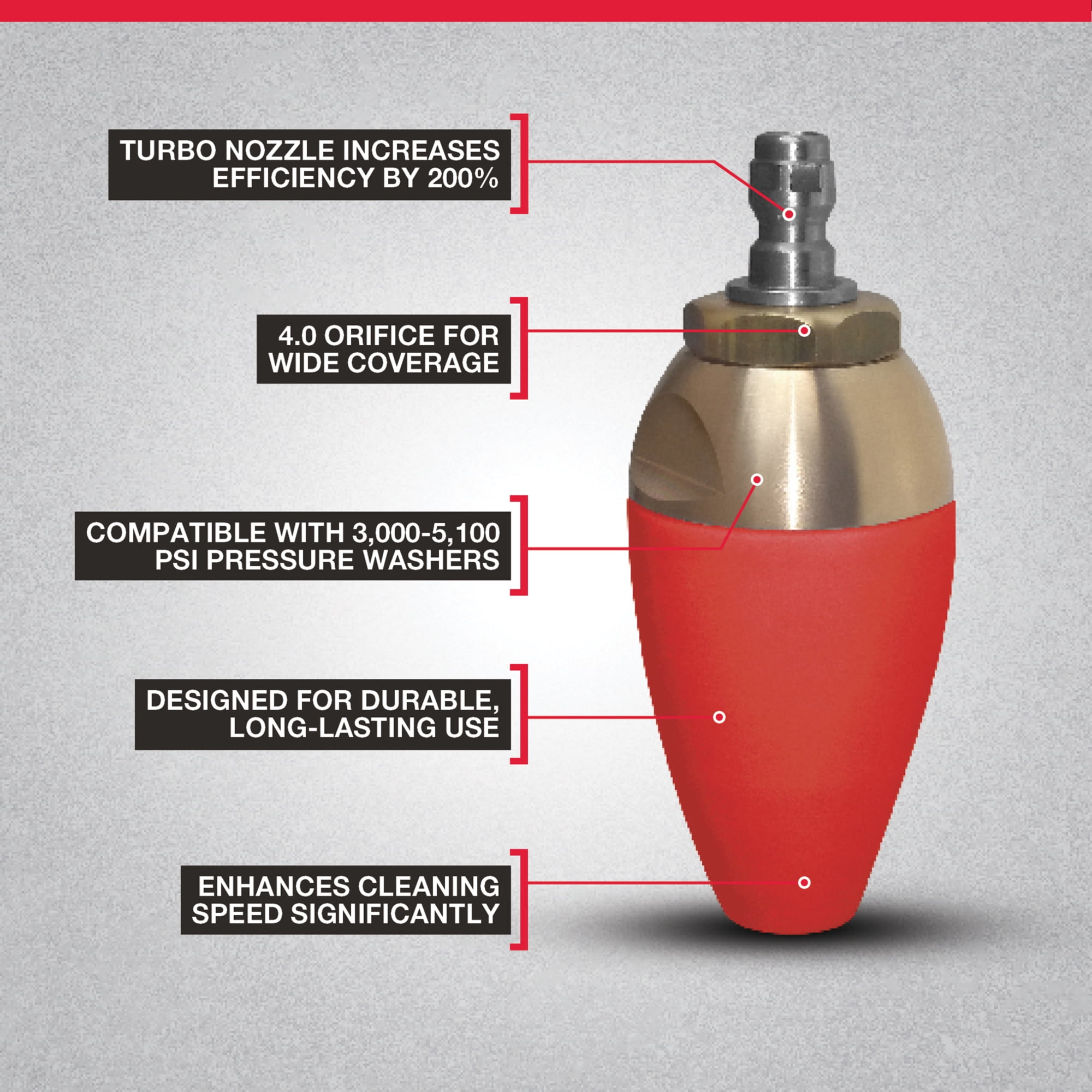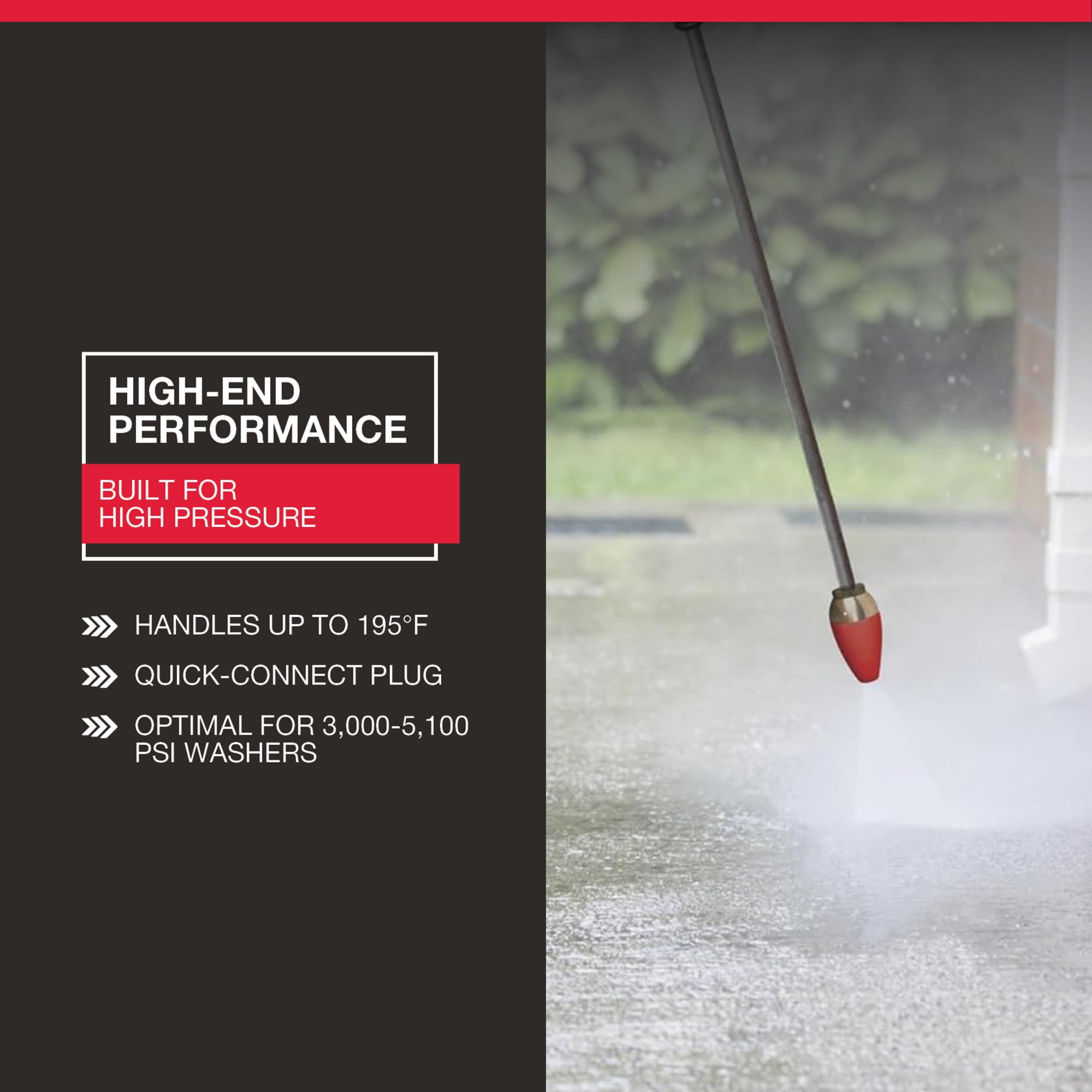 Increases cleaning efficiency 200% Delivers up to 5100 PSI #4.0 orifice Maximum 195deg F 1/4in. quick-connect plug