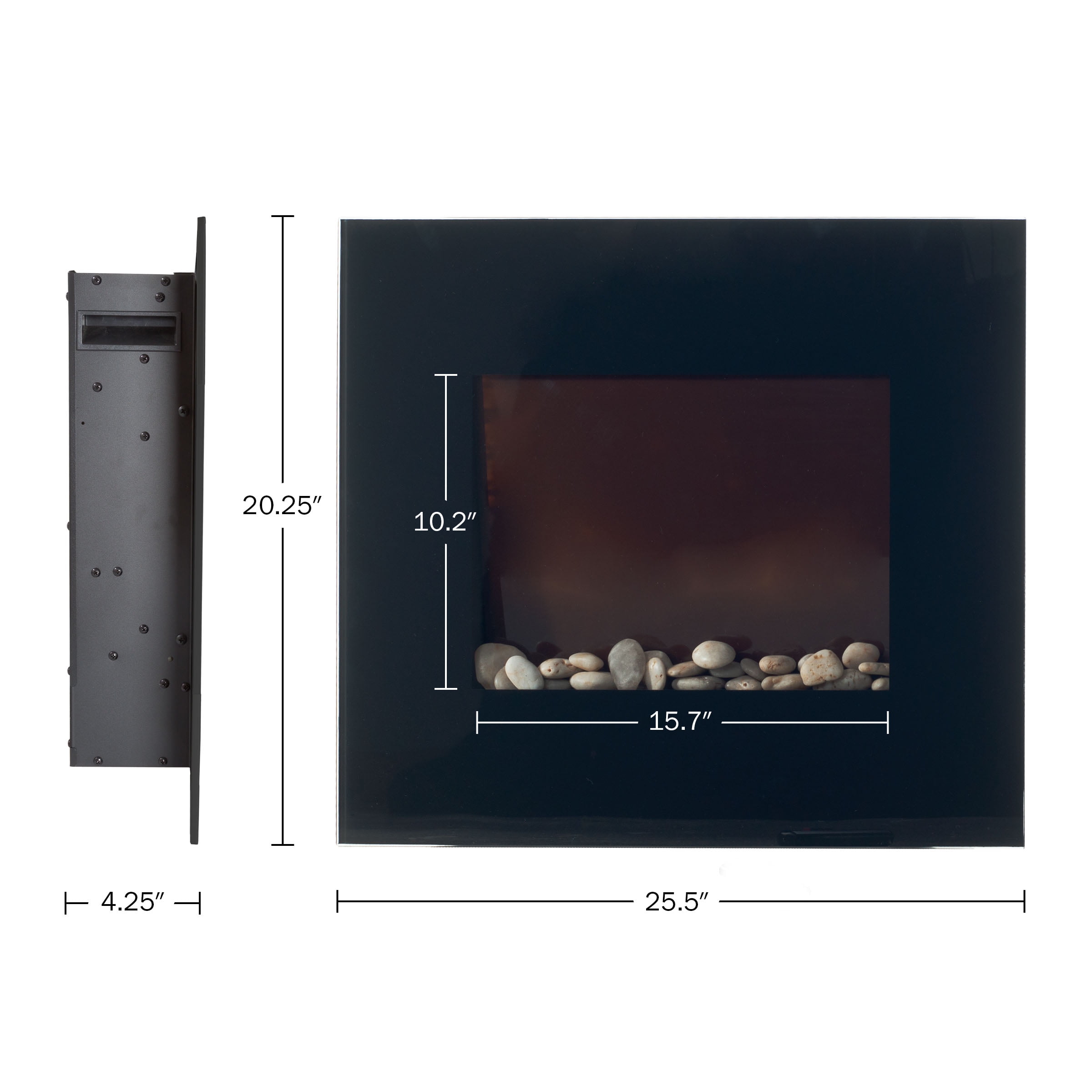 SPACE-SAVING FIRE PLACE – Employ this vent-free electric fireplace heater in small rooms, apartments, and dorms thanks to a wall-mounted design that preserves floor space. SLEEK, MODERN BUILD – Complement modern palettes and furnishings with the flat black finish and cutting-edge curved design of this fireplace for the living room or bedroom wall. HANDY REMOTE CONTROL – Operate this fireplace for the wall from across the room via the remote that lets you switch between heat settings and dim or brighten the log flame effect. ADJUSTABLE HEATING – Choose between 750W and 1500W electric wall fireplace settings for custom warmth, and rely on a safety thermal cutoff feature for overnight use in bedrooms. MATERIALS – Glass. DIMENSIONS – (L) 25.5″ x (W) 4.25″ x (H) 20.25″. – Flat Black.