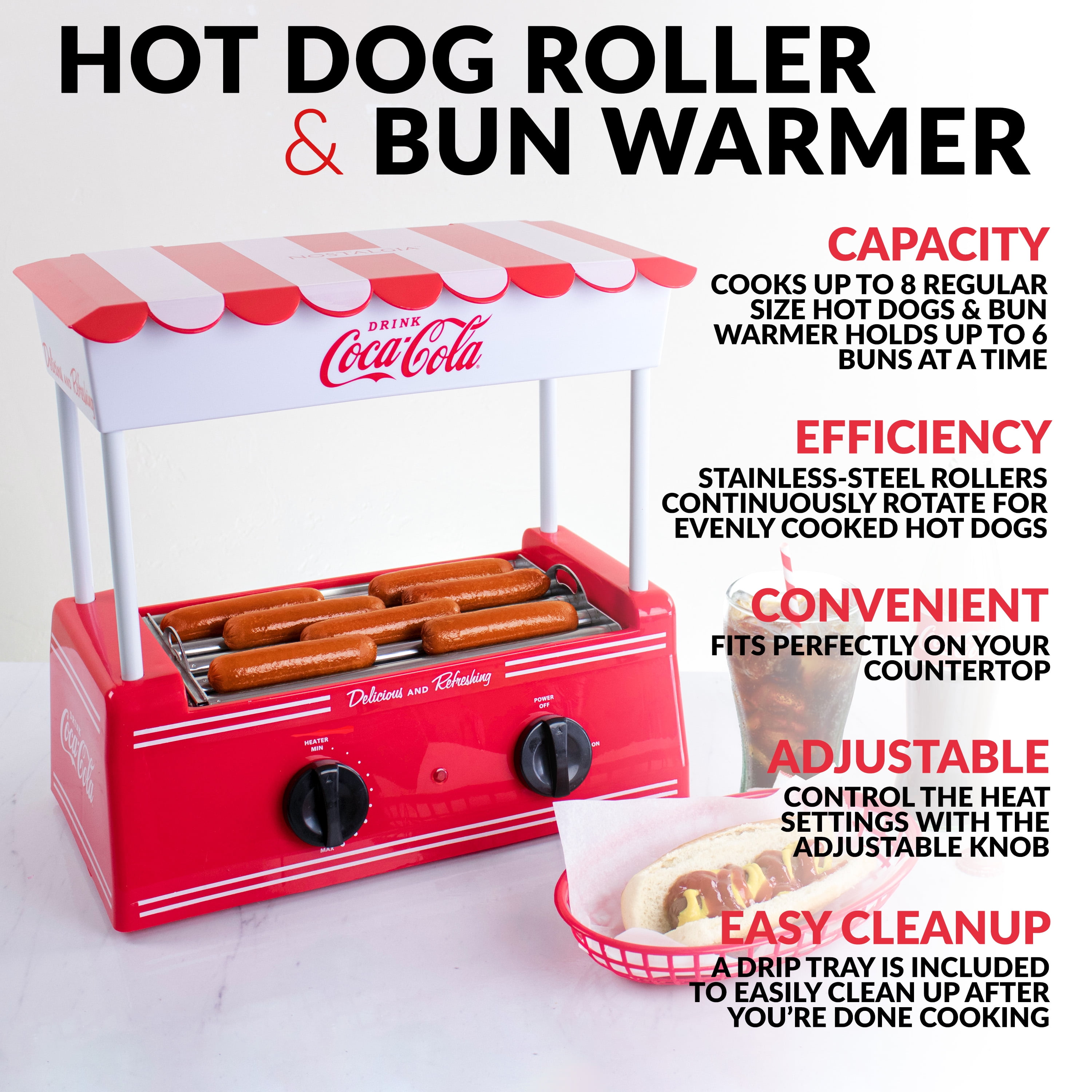 Nostalgia CKHDR8CR Coca-Cola Hot Dog Roller and Bun Warmer, 8 Hot Dog and 6 Bun Capacity