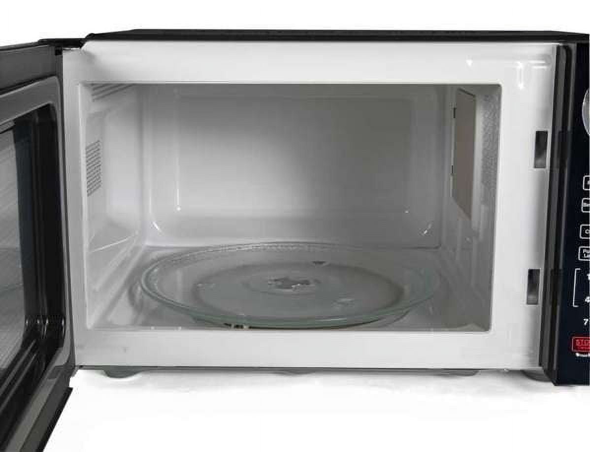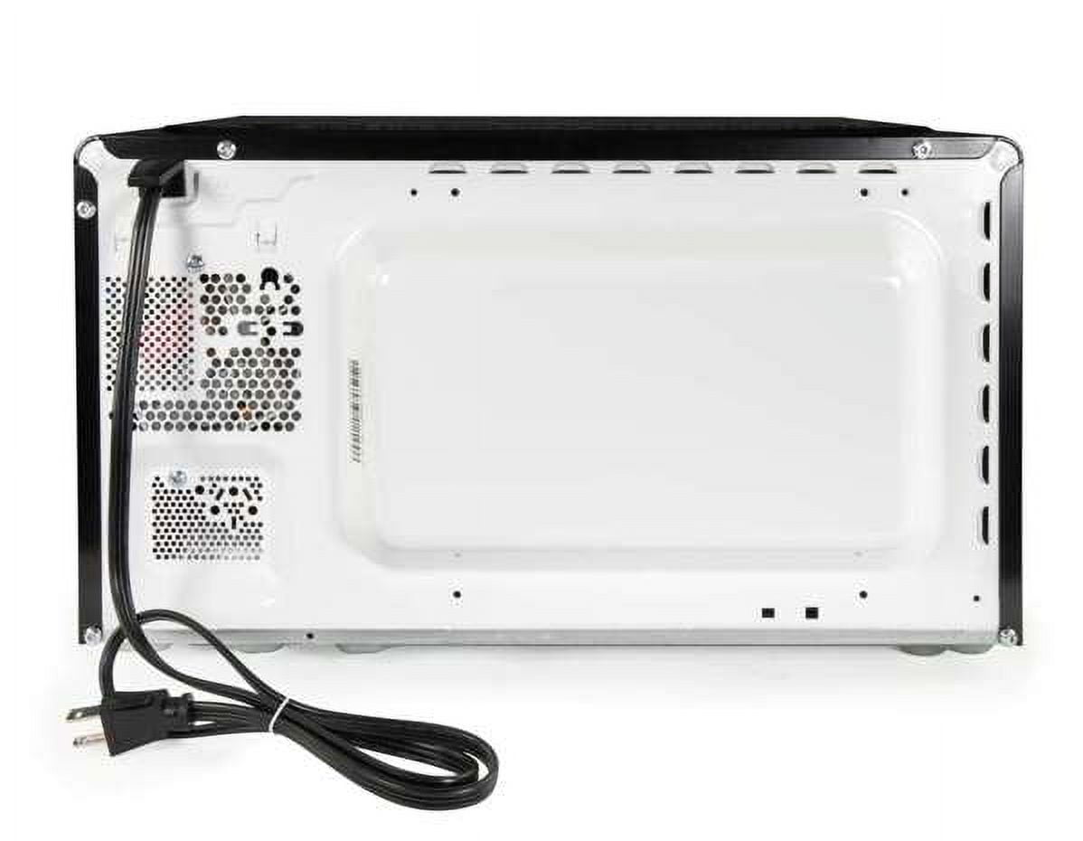 900-Watts cooking power: At 0 9 cubic foot, this microwave provides the cooking power needed to quickly cook and reheat foods Automatic programs: Utilize the auto-cook microwave programs to cook your favorite foods easily and quickly: Popcorn, Potato, Pizza, Frozen Dinner, Beverage, and Reheat Functionality: Features two defrost modes (weight and time), a child safety lock, 10 power level settings, and an add 30 seconds button Bright LED display: Easy-to-read display for simple usability Rotating glass carousel: Ensures even cooking and heating of food