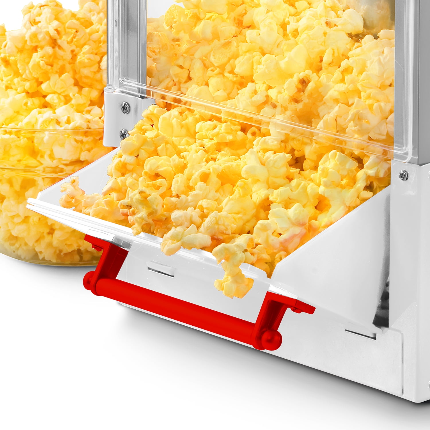 POPCORN CAPACITY: Whether movie time or snack time, this vintage table-top popcorn machine pops up to 10 cups of movie theater popcorn per batch to keep everyone’s buckets full. KITS AND SUPPLIES: All Nostalgia popcorn kits work with this popcorn popper machine. Try the Theater Hot Air & Kettle Kit, Popcorn Oil, Seasoning Packs, Reusable Popcorn Bowls, and the Pre-Measured Coconut Oil Popcorn Kit. LARGE KETTLE: The stainless steel kettle holds 2.5 ounces of popcorn kernels and is designed with a built-in kernel stirring system. It has a dual-hinged lid to easily empty popcorn, and the kettle can be removed for easy cleaning. TEMPERED SAFETY GLASS: Our commercial popcorn machine has windows that resist breakage, scratches, and heat to keep you and your family safe. So get your popcorn packets and pop away. NOSTALGIA: From designs inspired by early 20th century America to the timeless appeal of our appliances, we offer unique, novel, and fun products for the family. We preserve the past, embrace the present, and look forward to the future.
