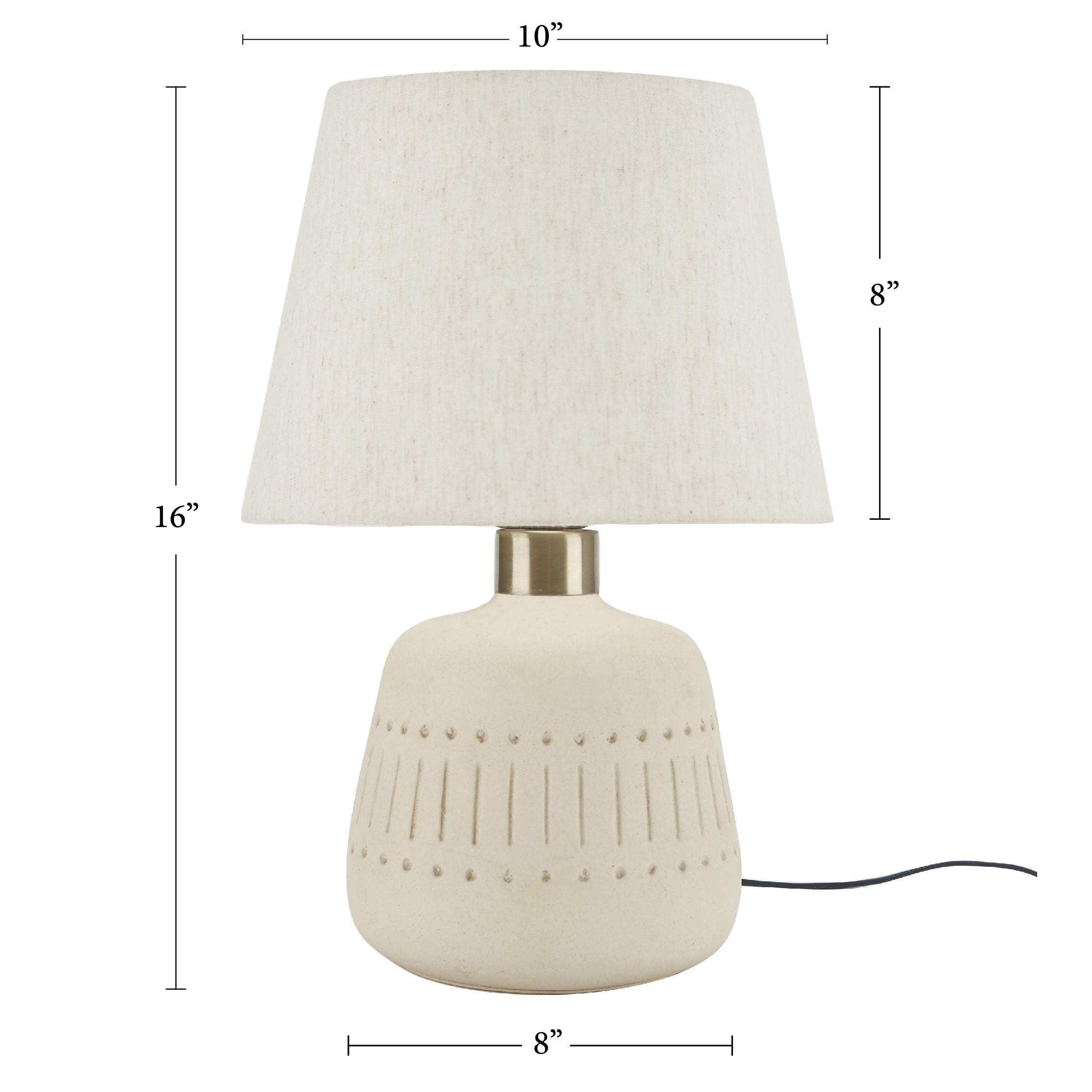 Small, unfinished textured ceramic table lamp with a heathered empire shade Product dimensions: 11-in x 11-in x 16-in On/off switch located on 80-in black cord Bulb not included Minimal Assembly Required