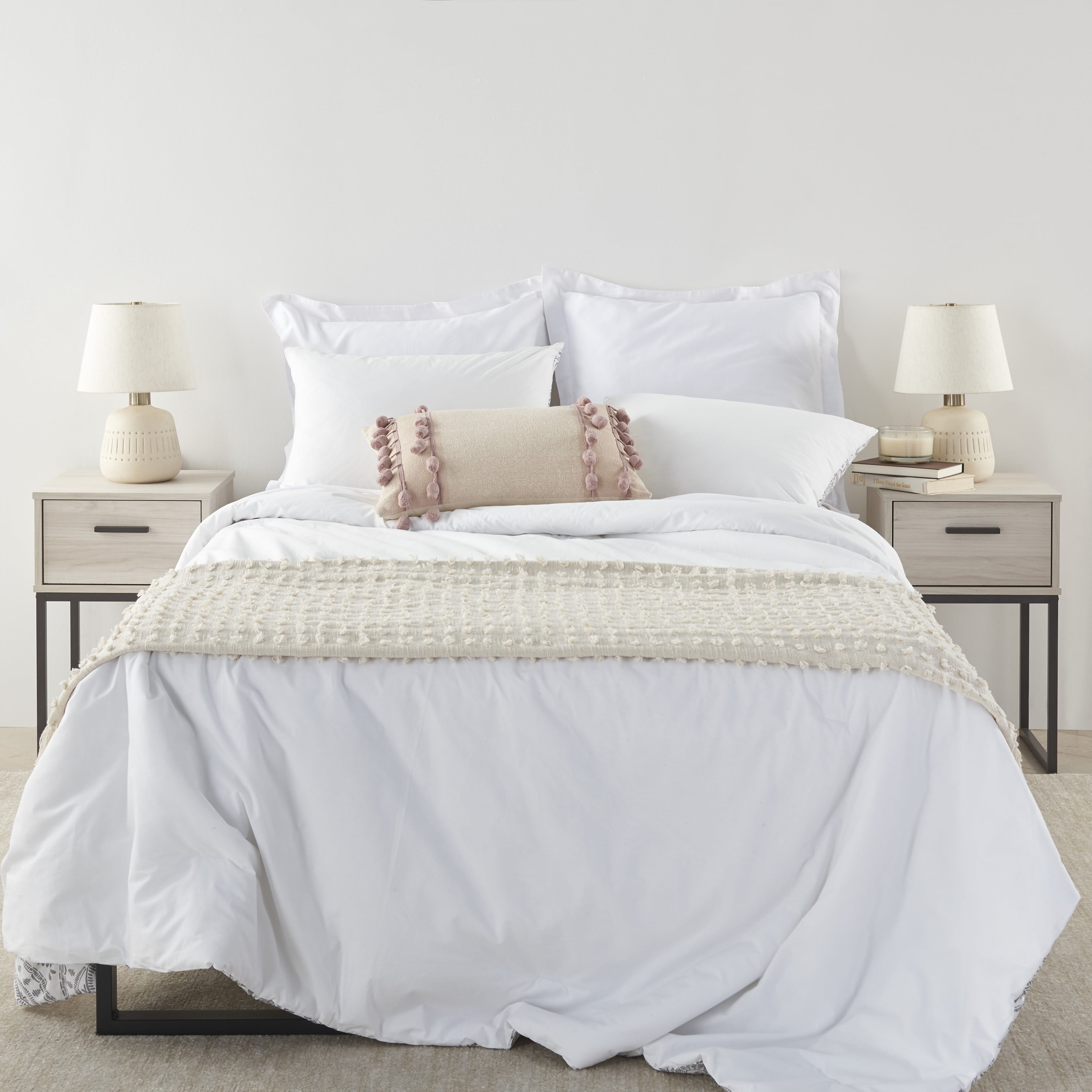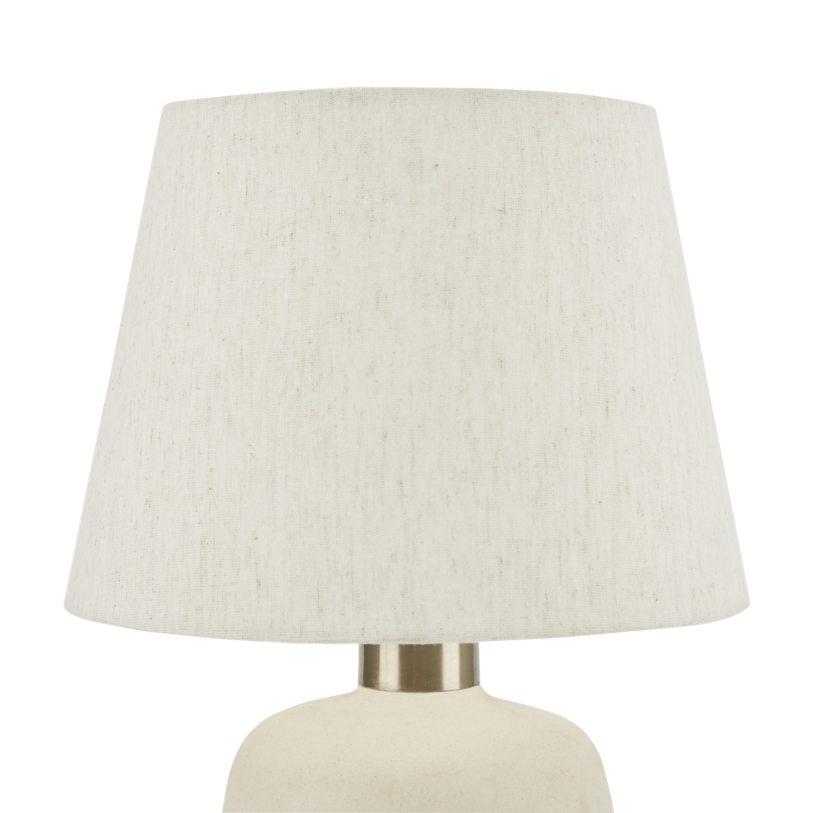 From Art Deco to modern industrial, Nourison Lighting puts the spotlight on trendy styles. Cast a warm glow over your side or accent table with this textured ceramic table lamp. Its rounded geometric base is crafted in a neutral cream tone and is engraved with an understated tribal design. With its rough, unglazed finish and small form, it brings simplistic beauty to a variety of décor styles – from boho to contemporary and farmhouse. Complemented by a heathered shade that diffuses a warm glow into your space. Great for use in your living room, dining room, bedroom, home office or any other room that needs additional light.