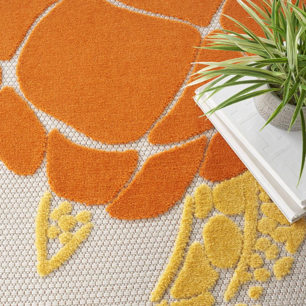 Coastal outdoor rug adds a relaxed look to your patio, porch, or indoor space Machine made of stain resistant polypropylene High-low, 0.25-inch rug height Flat weave with raised, cut patterns for a delightfully textured feel Rug pad recommended when using indoors Due to the detailed construction of our rugs, sizes may vary by up to three inches in width or length