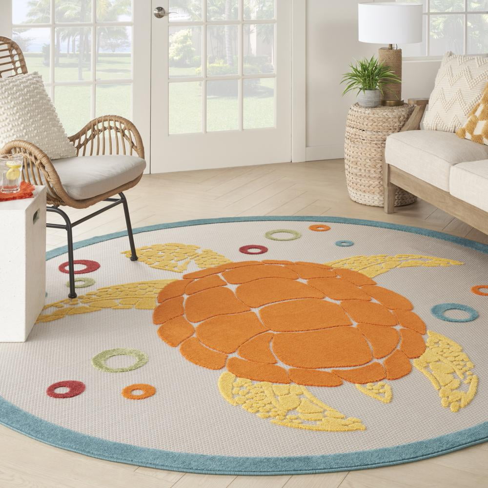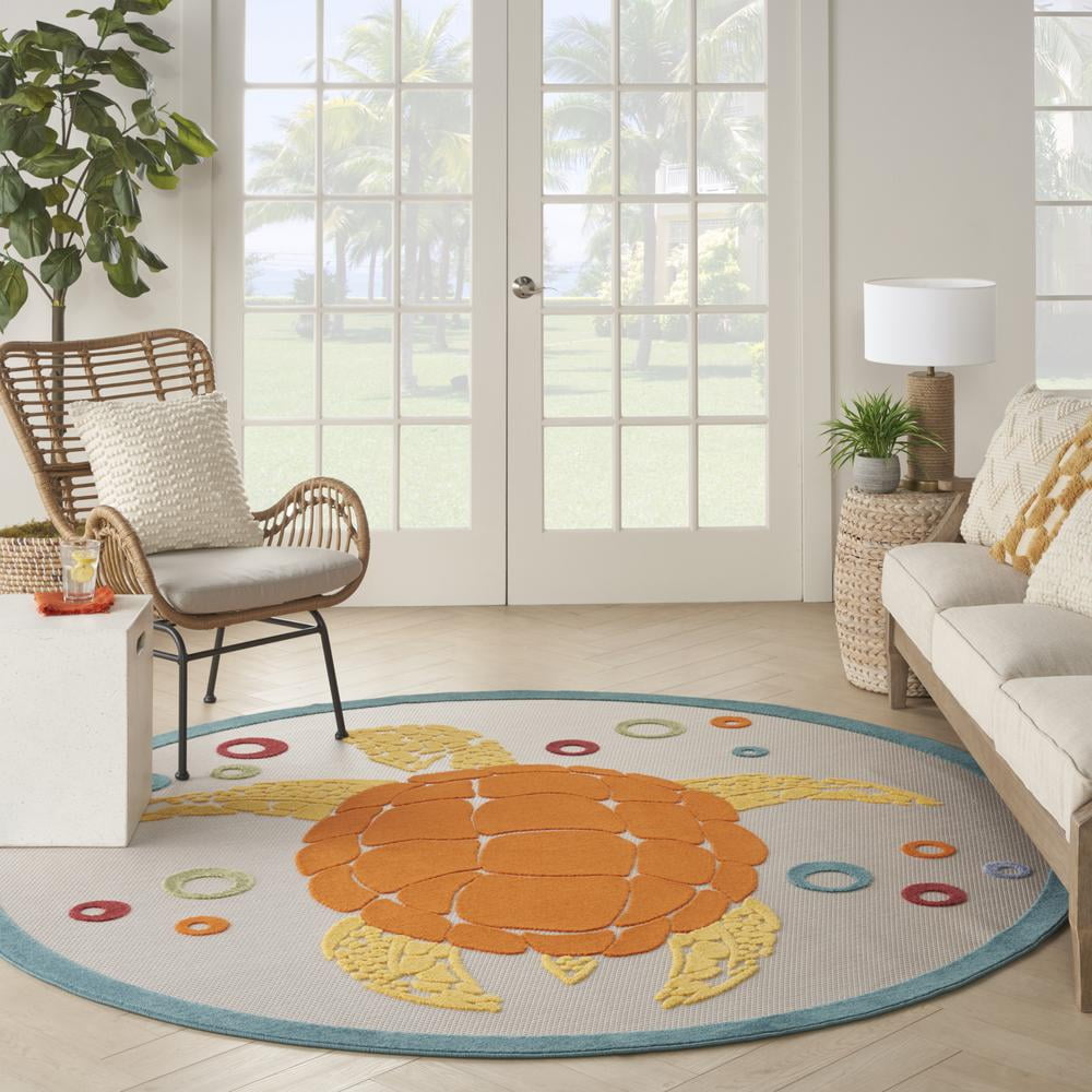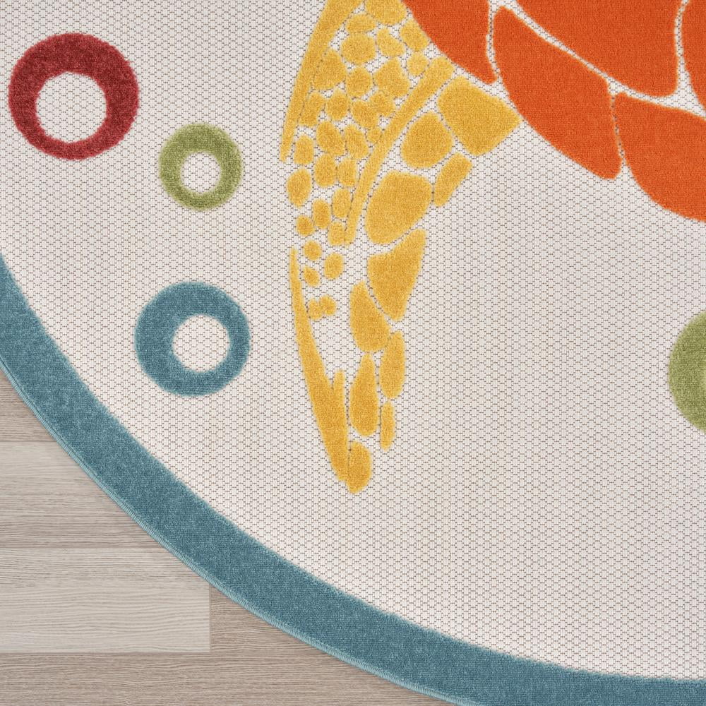 Nourison Aloha Indoor/Outdoor Teal Multi 5’3″ x round Area Rug (5 Round)