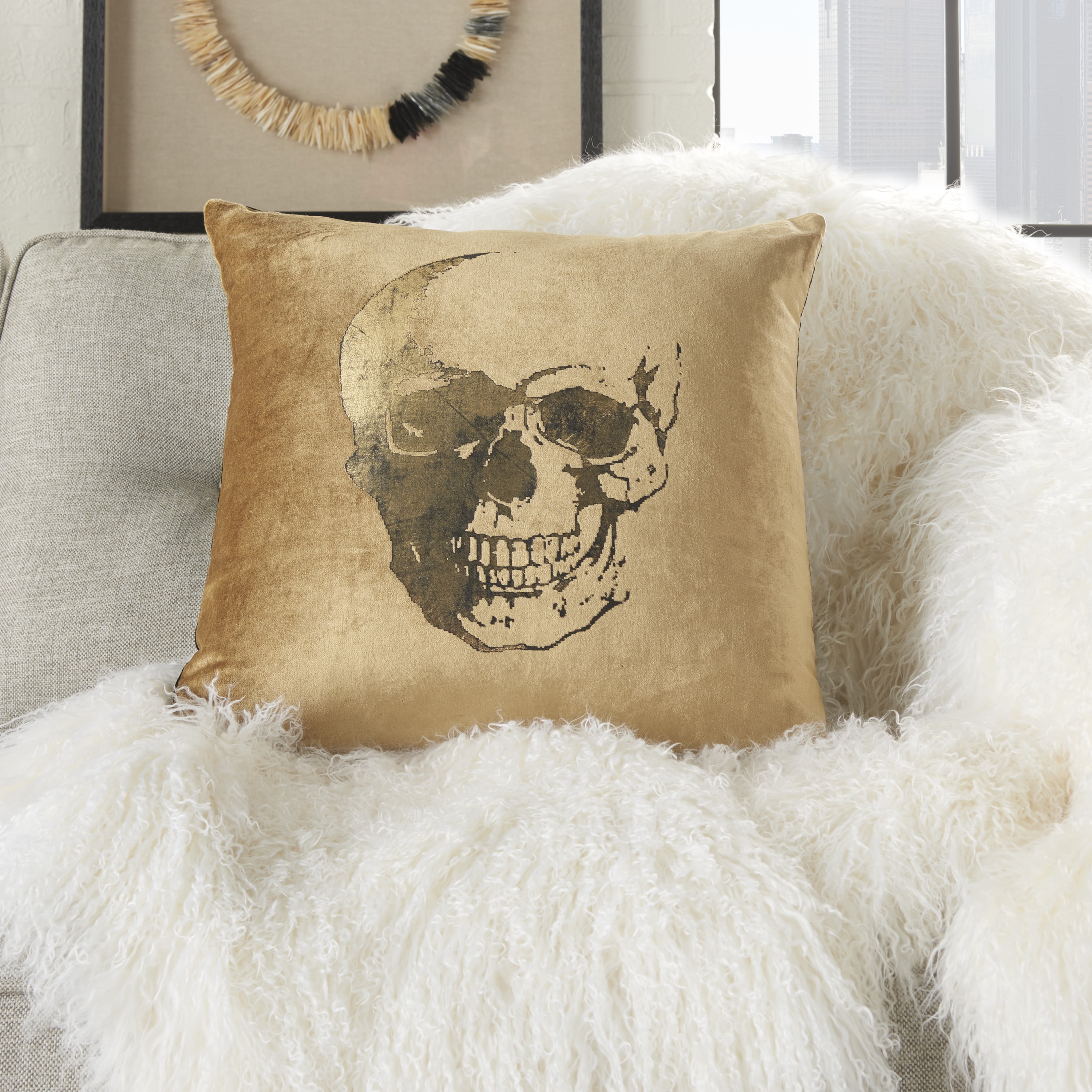 Silky Velvet Cotton Beige/Gold 20″ x 20″ Rectangle Indoor only Metallic accents Velvet texture
