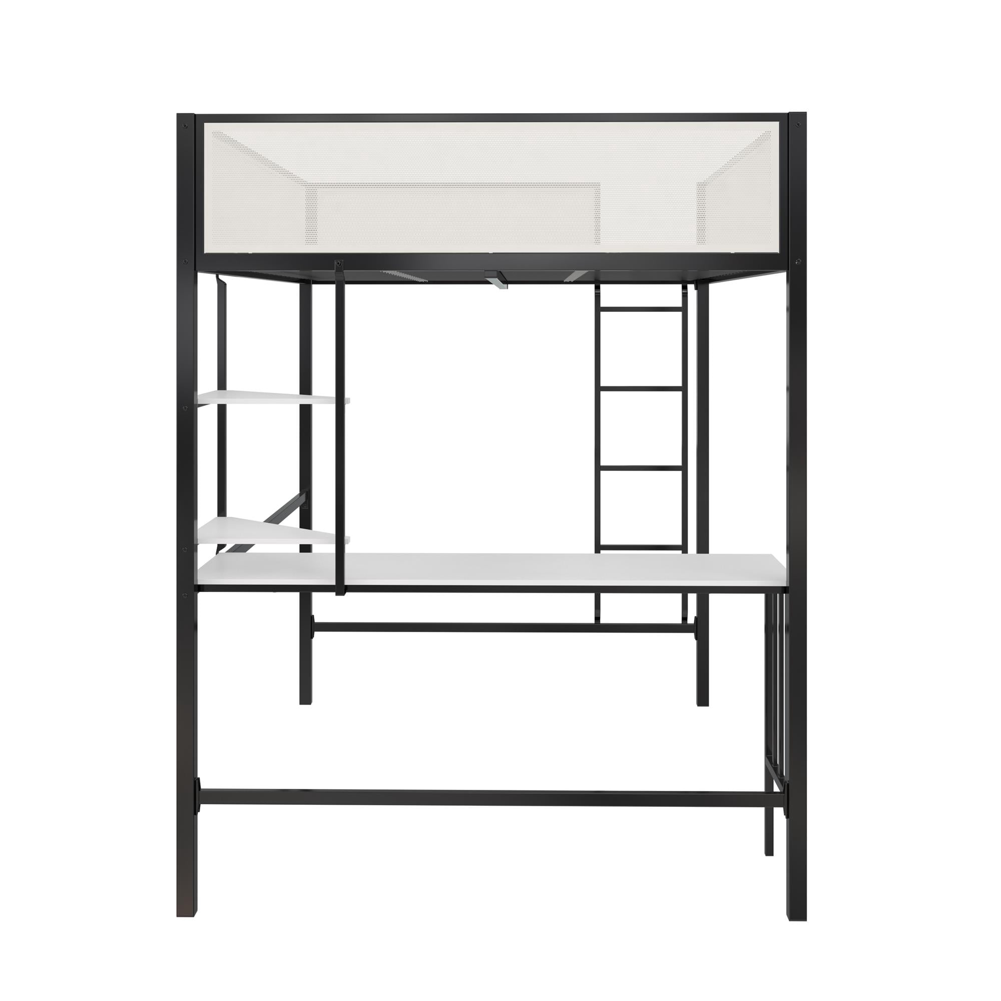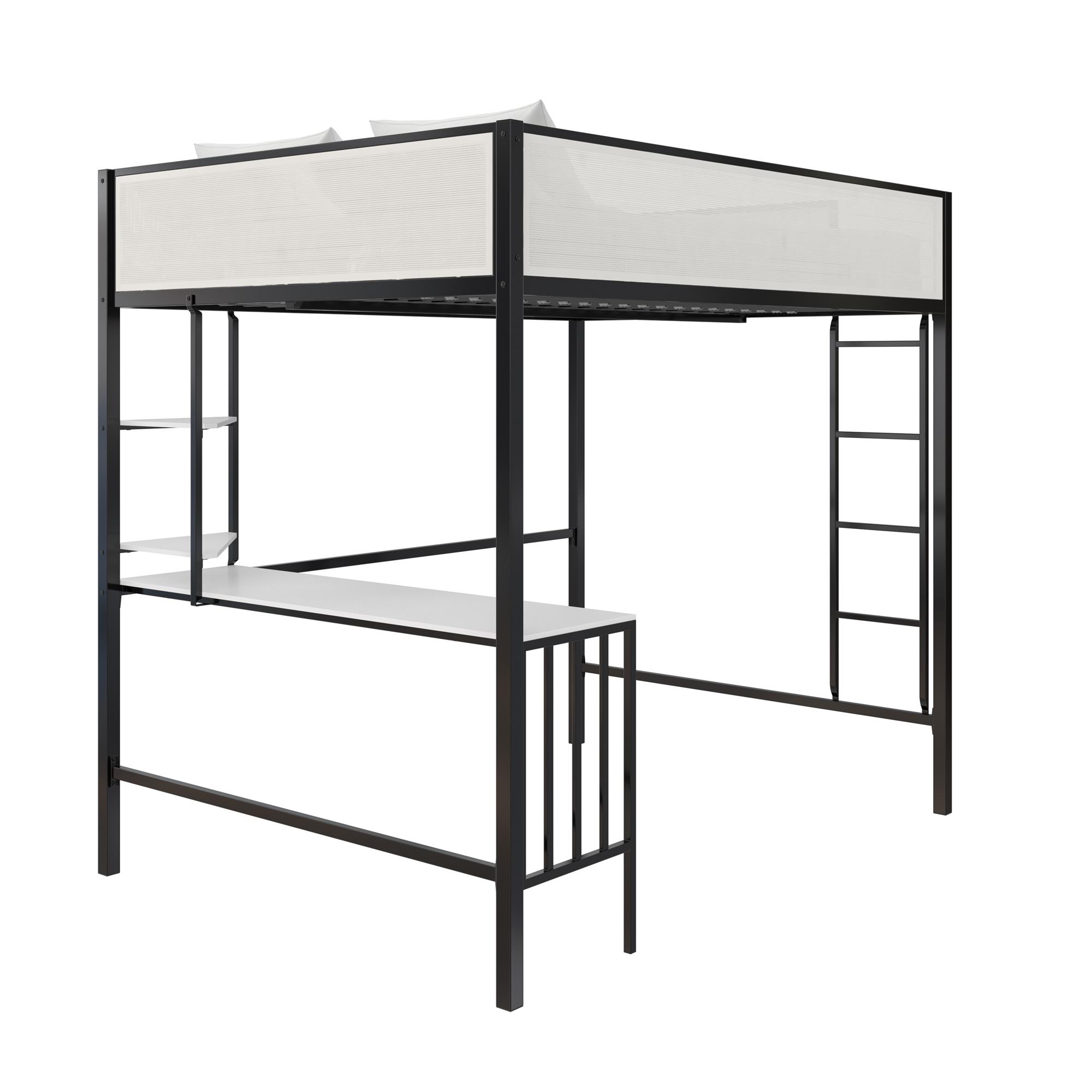 Novogratz Axel Metal Loft Bed with Desk and Shelves, Full