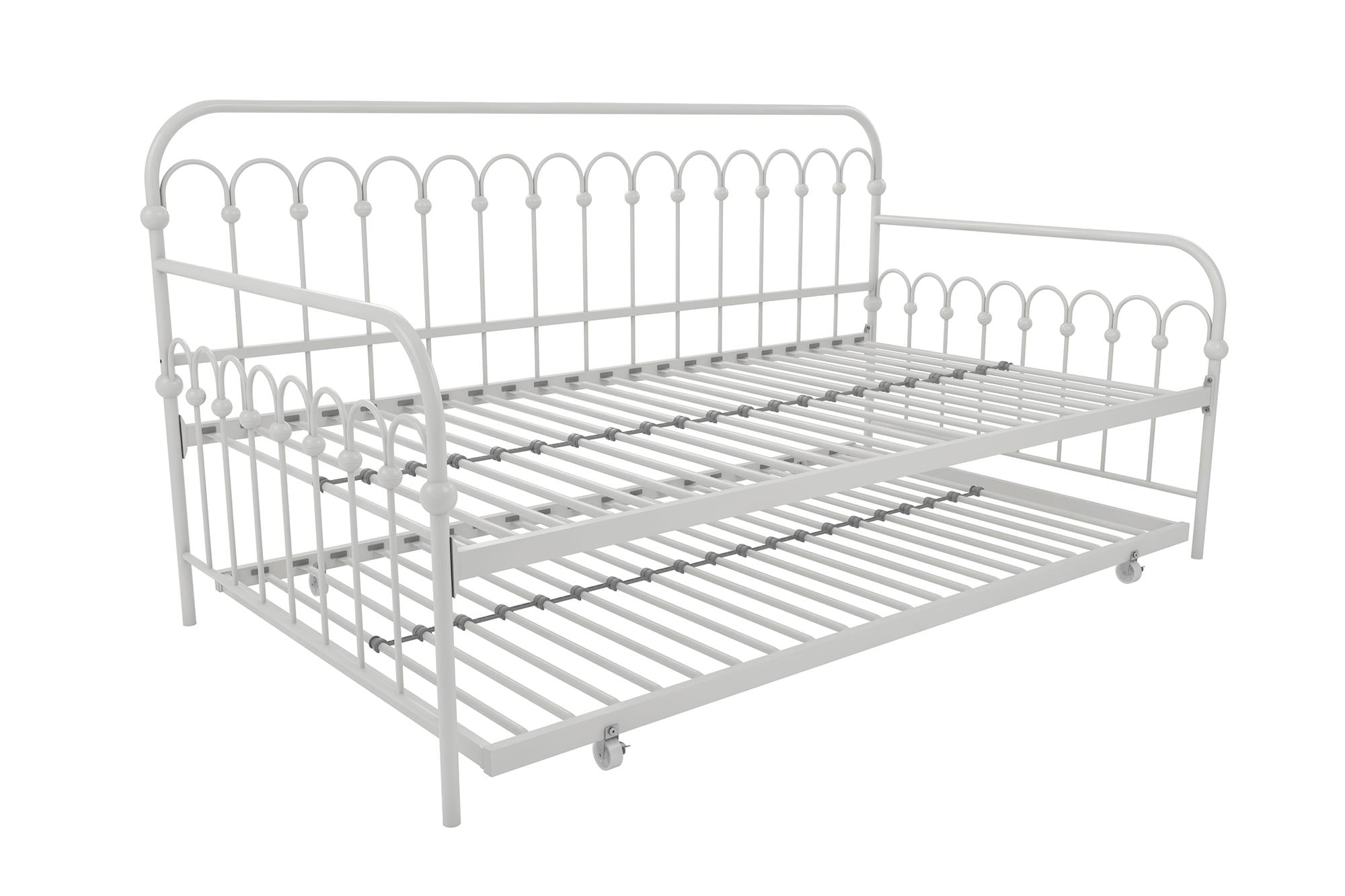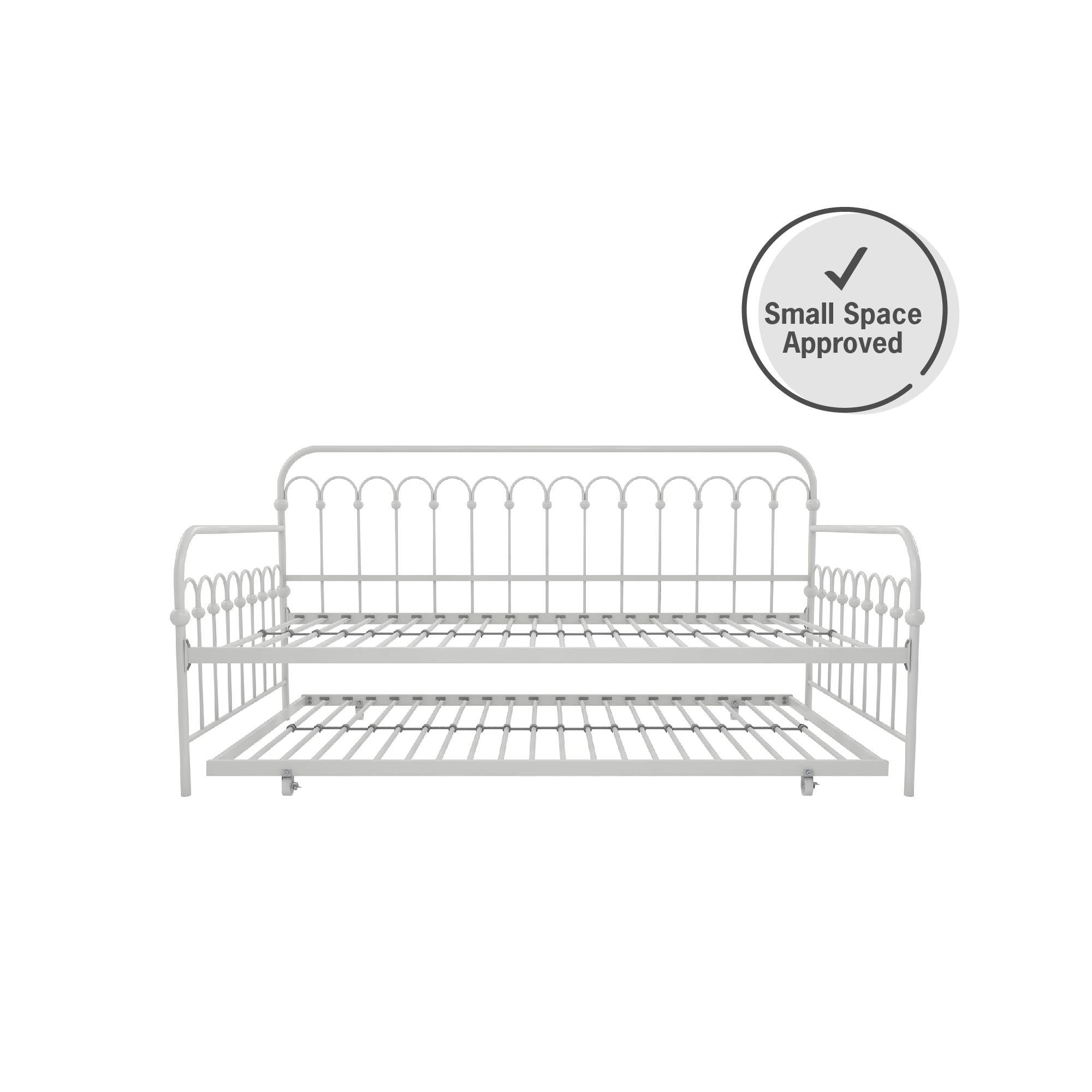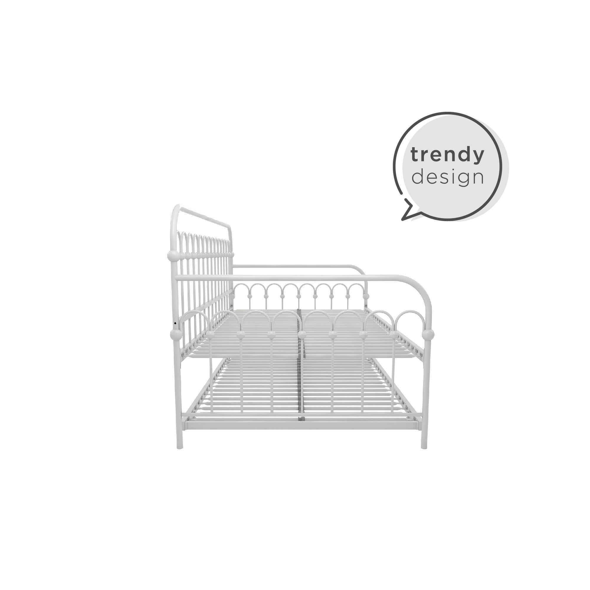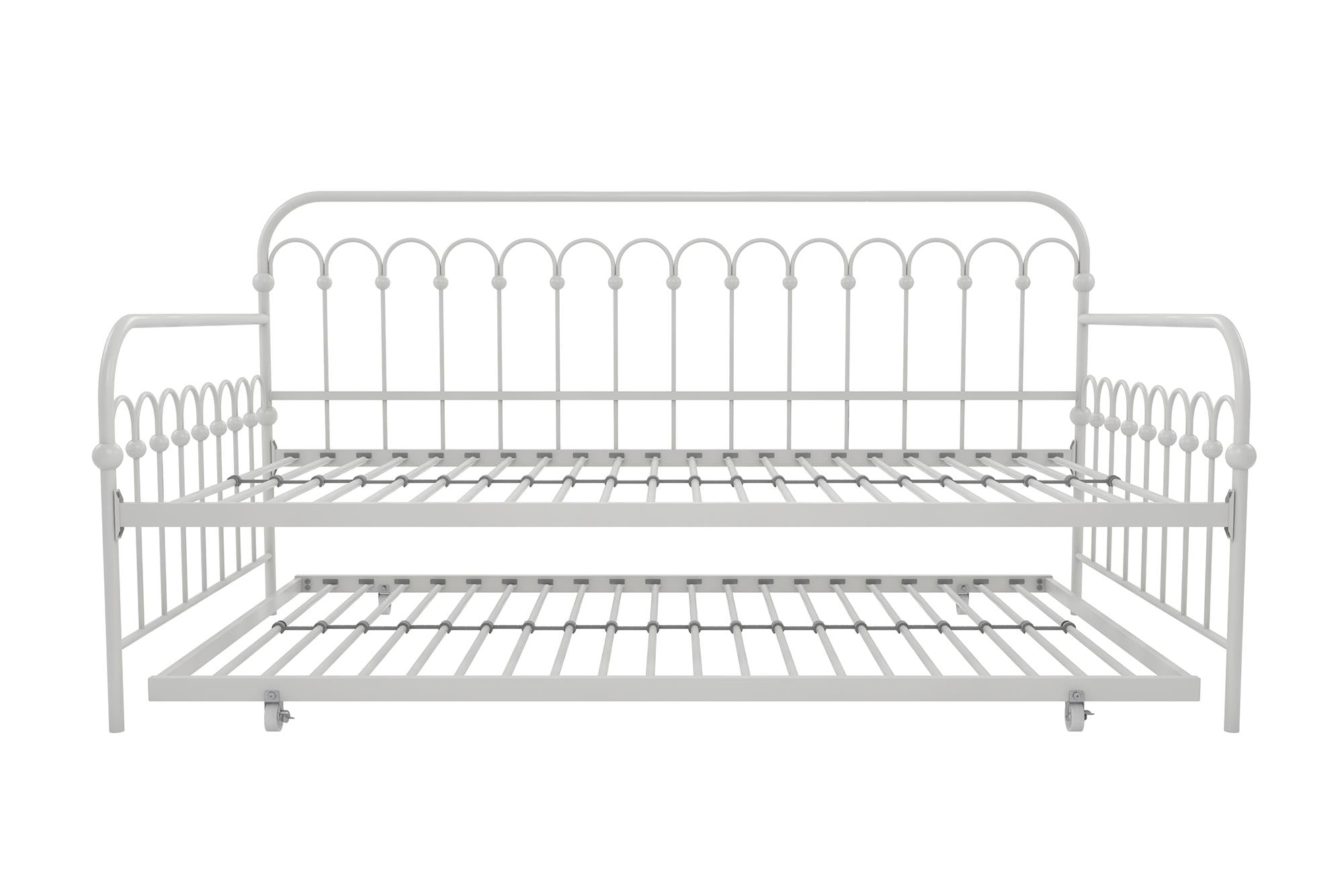 Novogratz Bright Pop Metal Daybed with Roll Out Trundle – Chic, Stylish, Space-Saving Design – Includes Sturdy Steel Slats (Off White, Twin)
