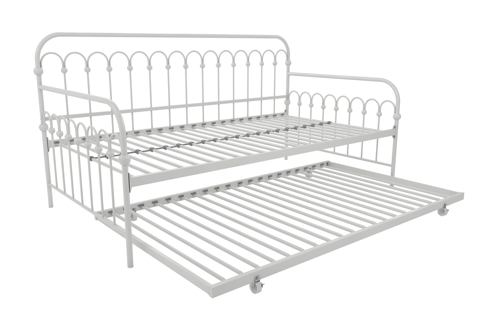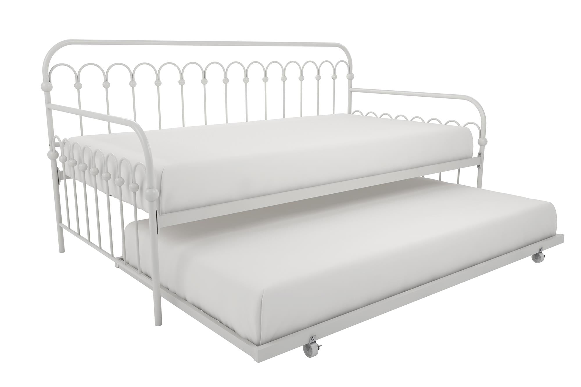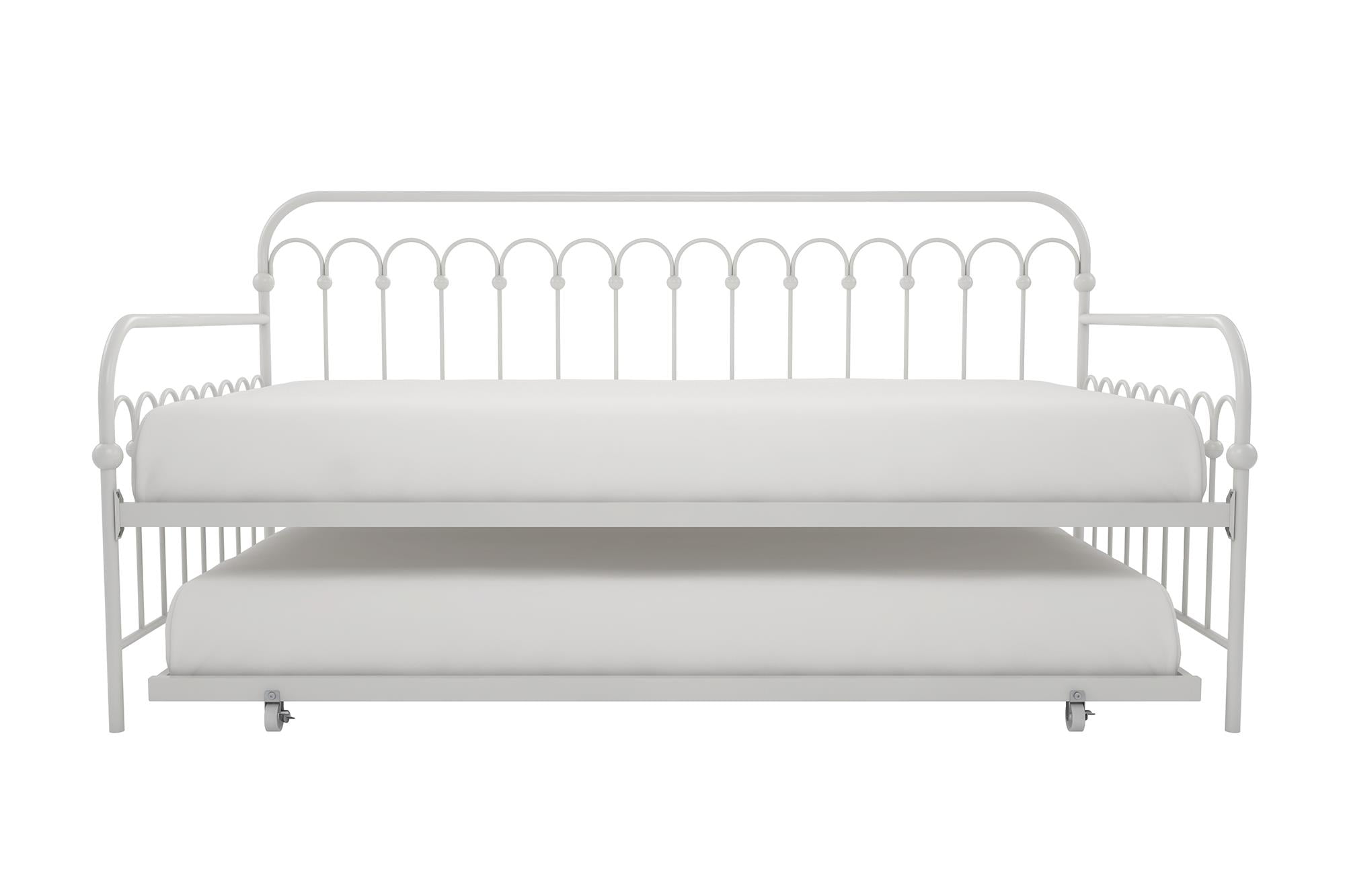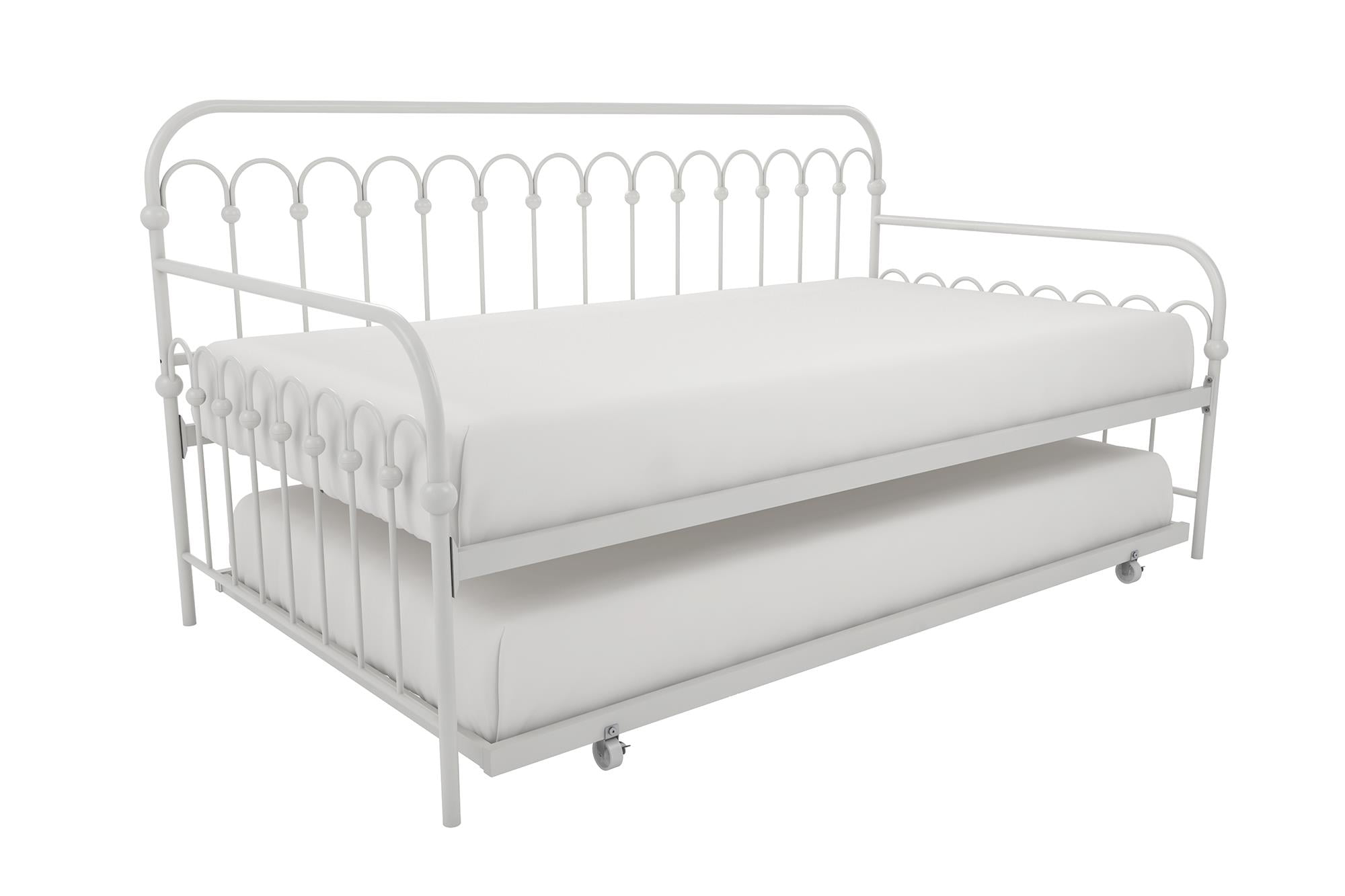 Novogratz Bright Pop Metal Daybed with Roll Out Trundle – Chic, Stylish, Space-Saving Design – Includes Sturdy Steel Slats (Off White, Twin)