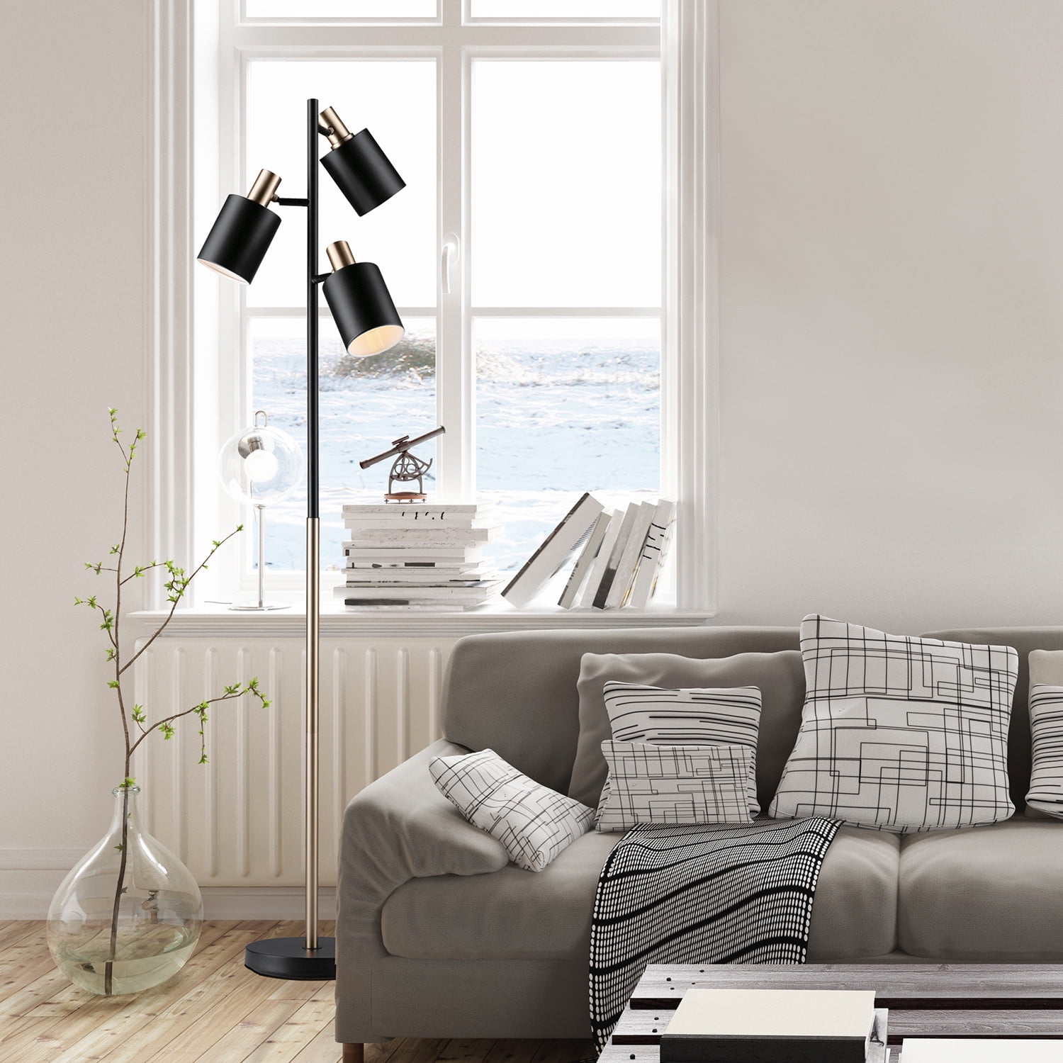 UPSCALE INDUSTRIAL DESIGN: matte brass accents complete the industrial design of this 3-light floor lamp to upscale the look to create a quintessential upscale industrial design PIVOTING HEADS: the three heads of this lamp are easy to move and point wherever you need light the most, allowing you to direct the light anywhere you need for optimal lighting solutions BULB REQUIREMENTS: 3x E26/Medium Base 60W Bulbs (sold separately) SHOP THE COLLECTION: two powerhouse forces come together to create a line of products that offer gorgeous appeal, stellar performance, easy placement and exceptional value – check out the Novogratz x Globe Electric Home Lighting Collection for dynamic and creative lighting MAKE IT SMART: automate your lamp by adding a Globe Electric Smart bulb – simply screw it in and create different lighting solutions with your phone – set it to come on at dusk, change the color for each season, make it bright white for the morning or warm white for the evening – the options are endless! VERSATILE PLACEMENT: the long cord allows you to place your lamp wherever you need it most – the options are literally endless! LIGHT YOUR HOME IN STYLE: a matte black finish elevates this lamp from a classic design to an unique upscale industrial light that will brighten your space for years to come