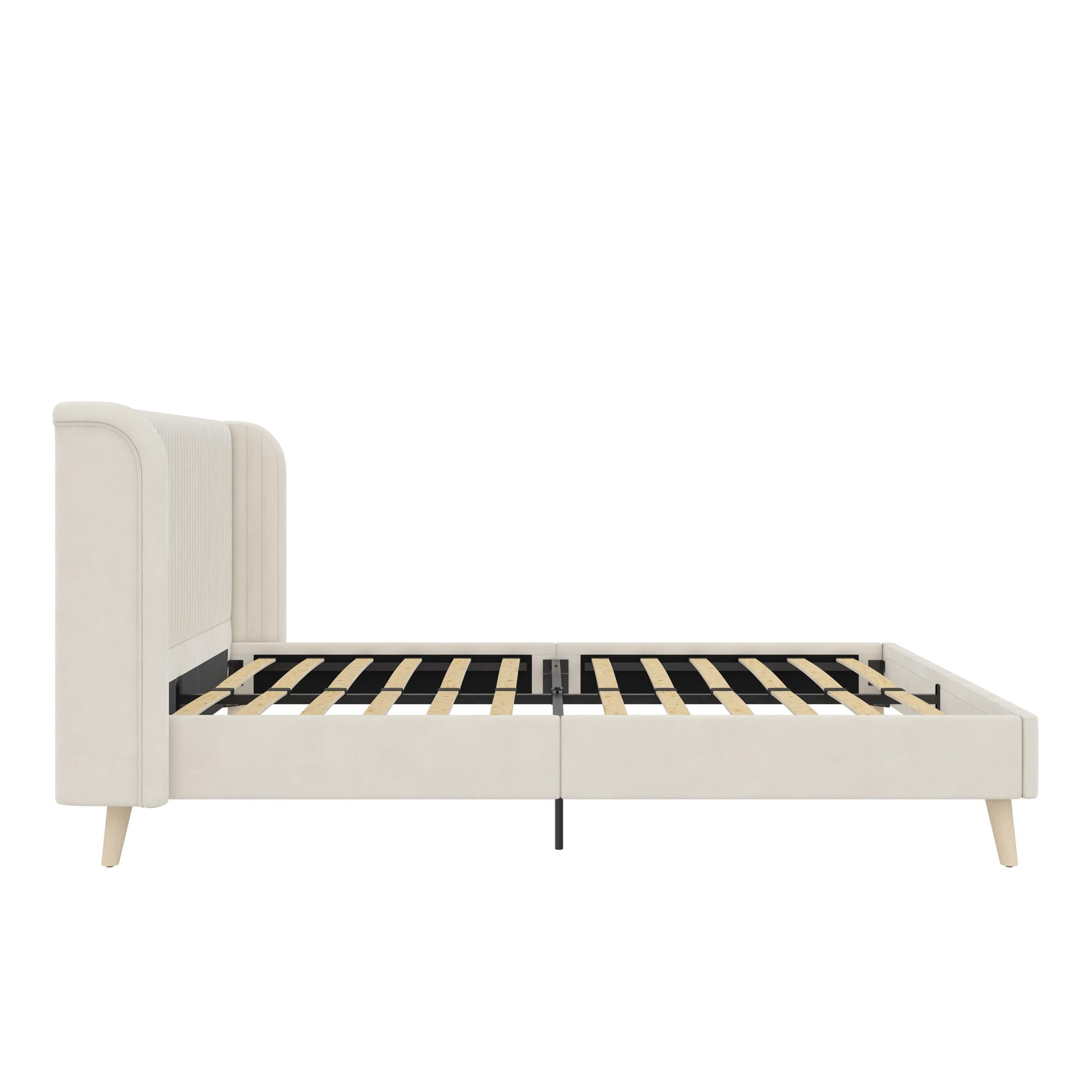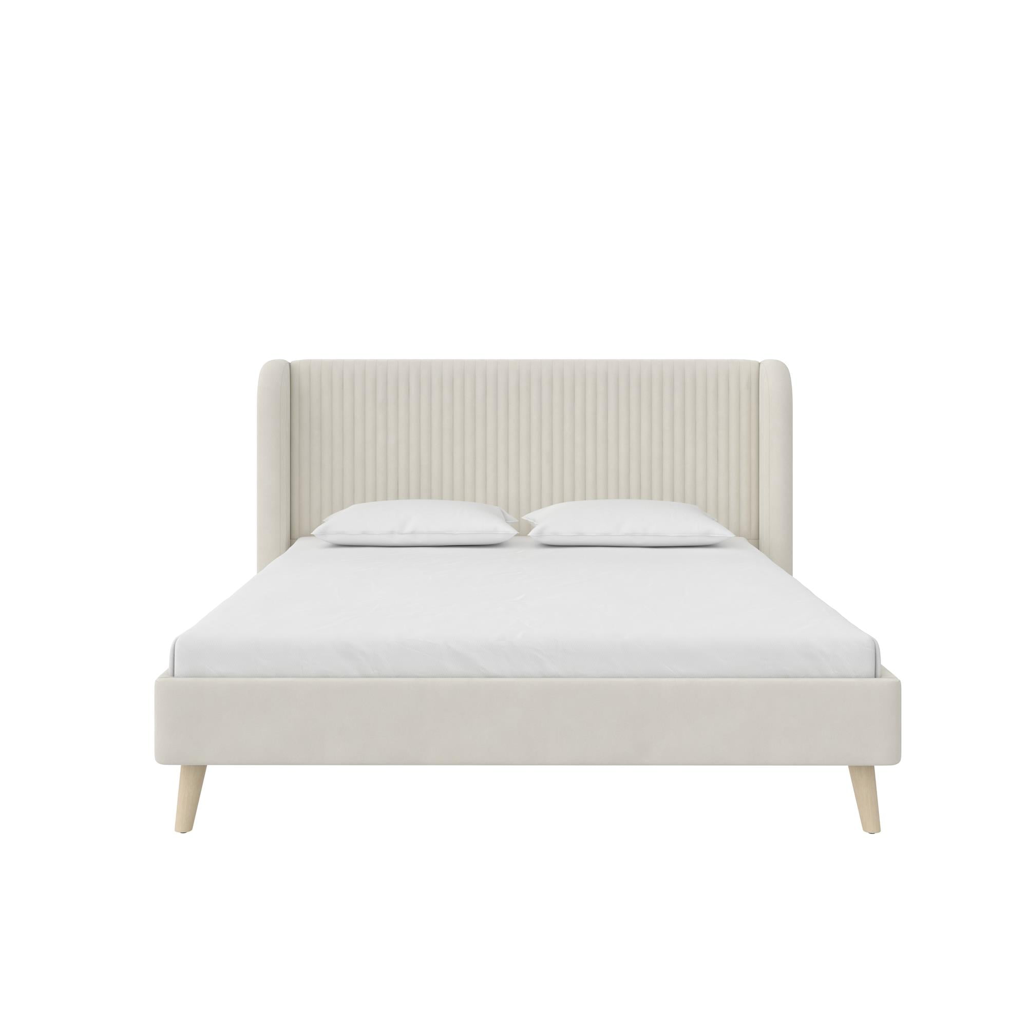 Novogratz Holly Upholstered Wingback Bed, Queen, Ivory Velvet