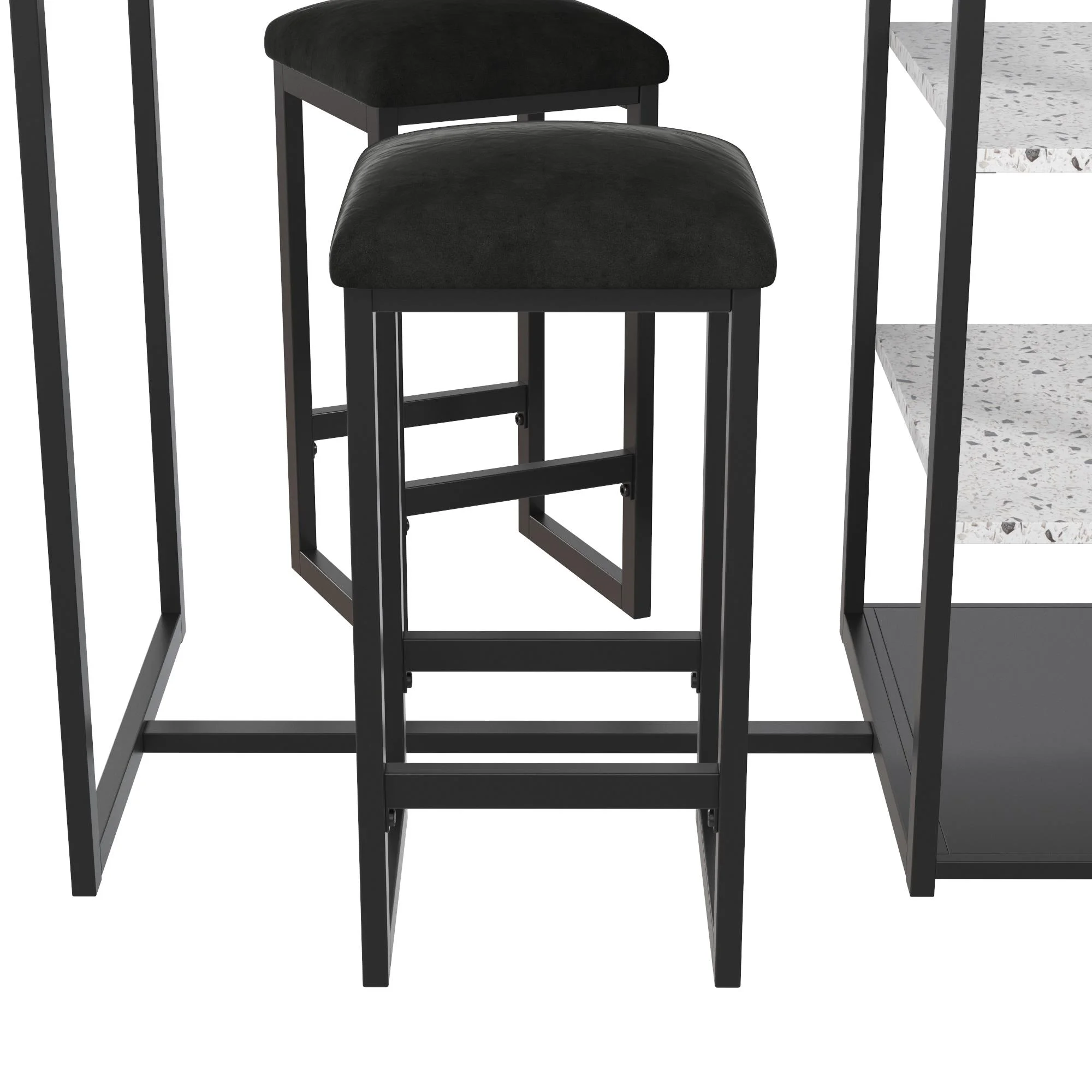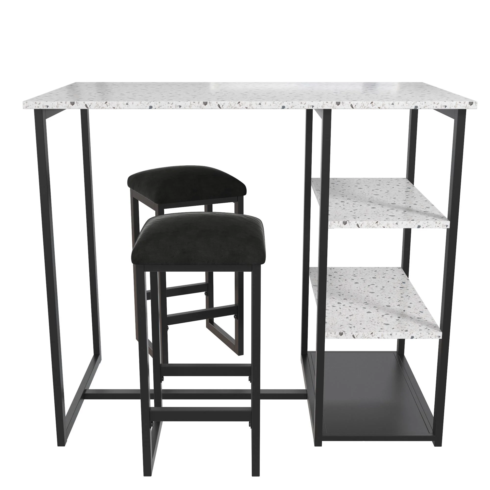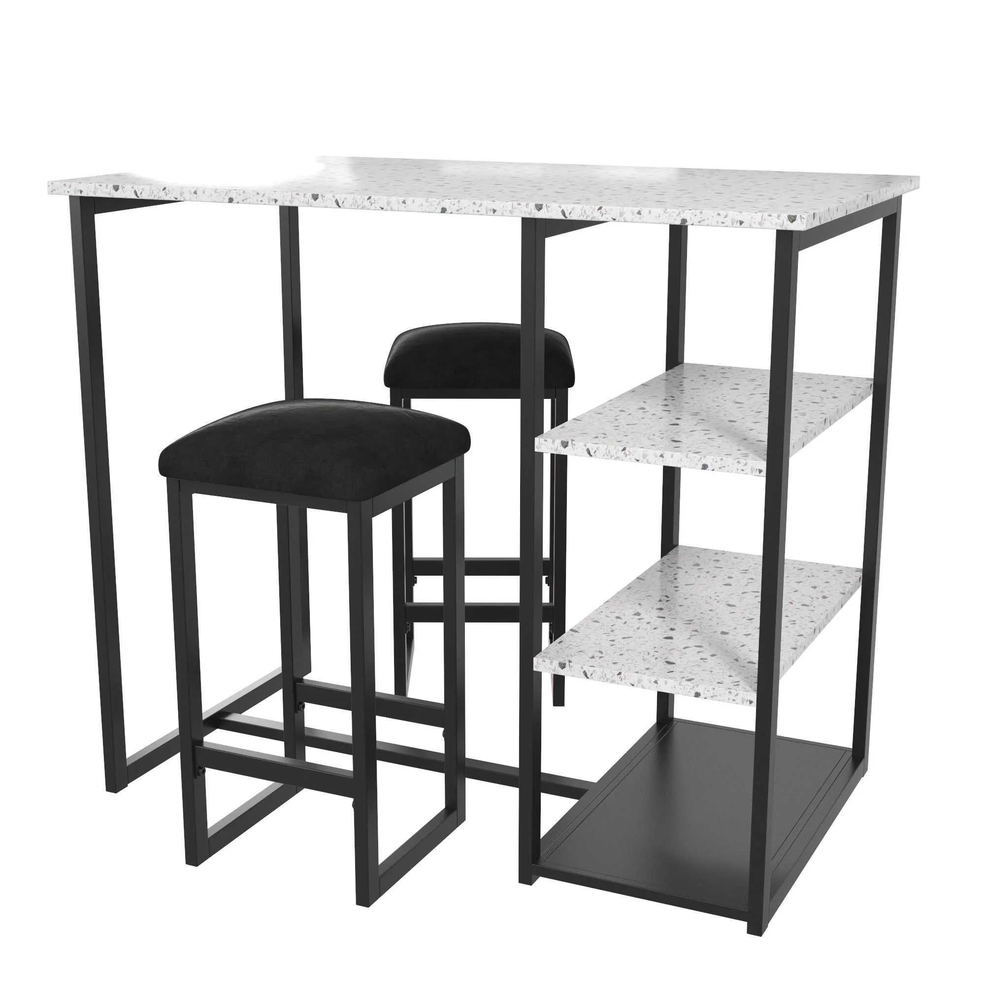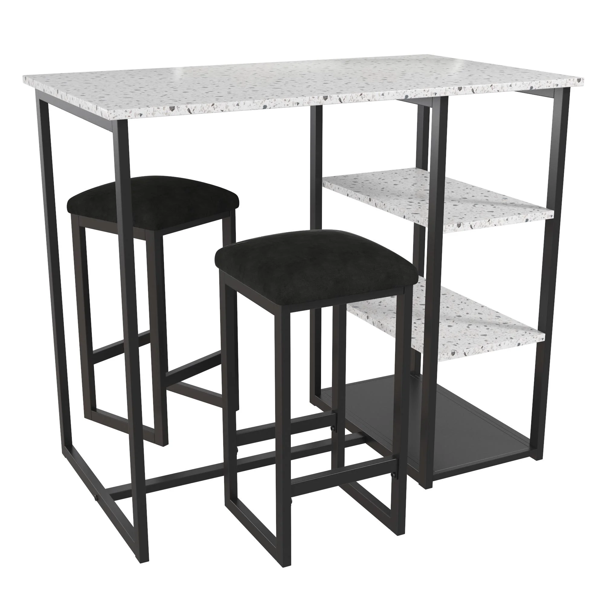 Novogratz Nora 3-Piece Pub Set with Faux Terrazzo Top, Black Metal/Black Seat