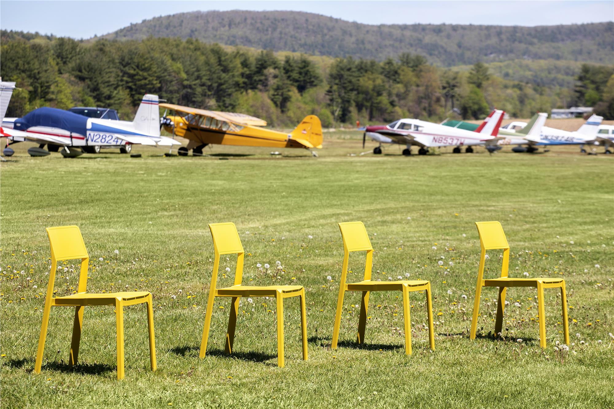 Novogratz Poolside Collection, Chandler Stacking Dining Chairs, Indoor/Outdoor, 4-Pack, Bright Yellow