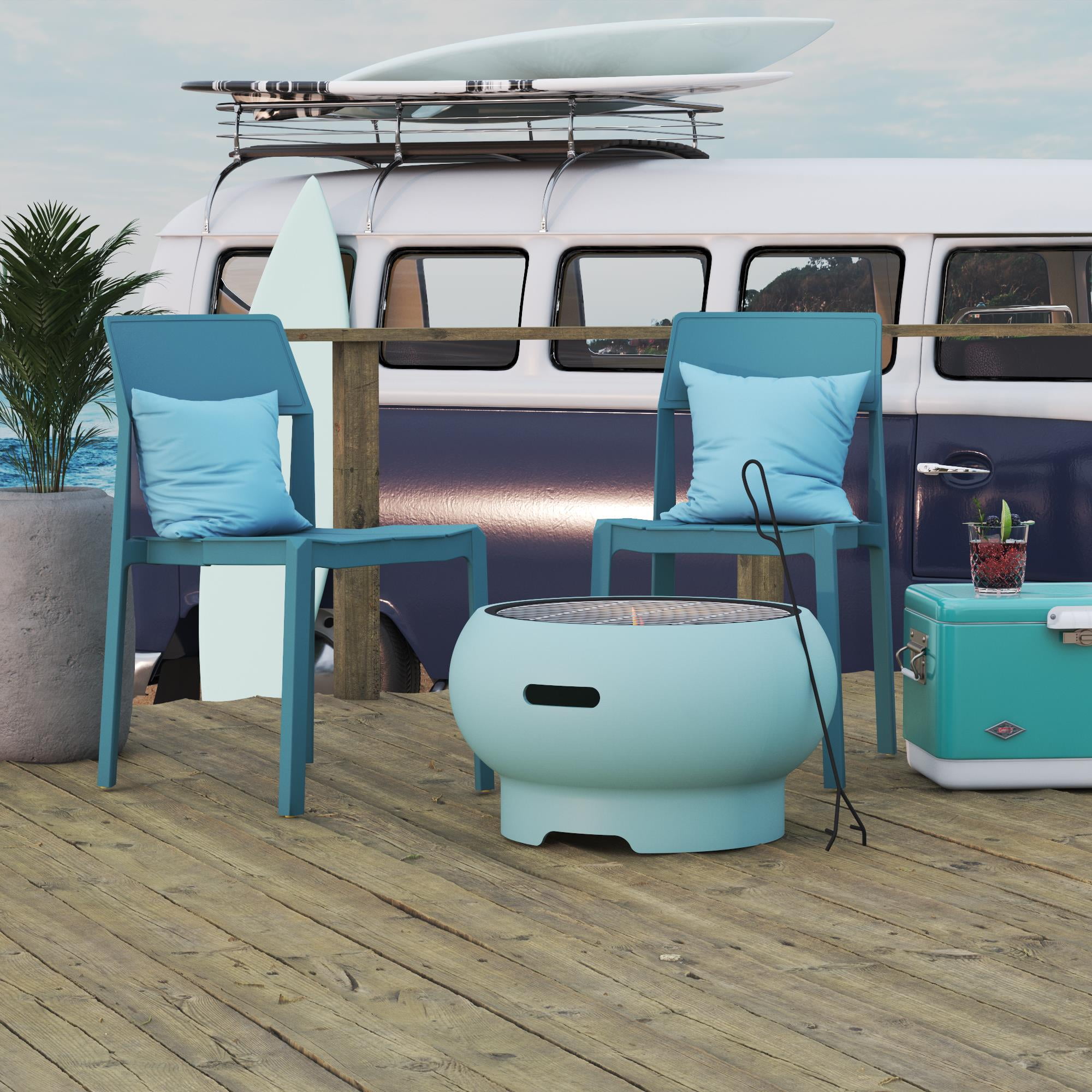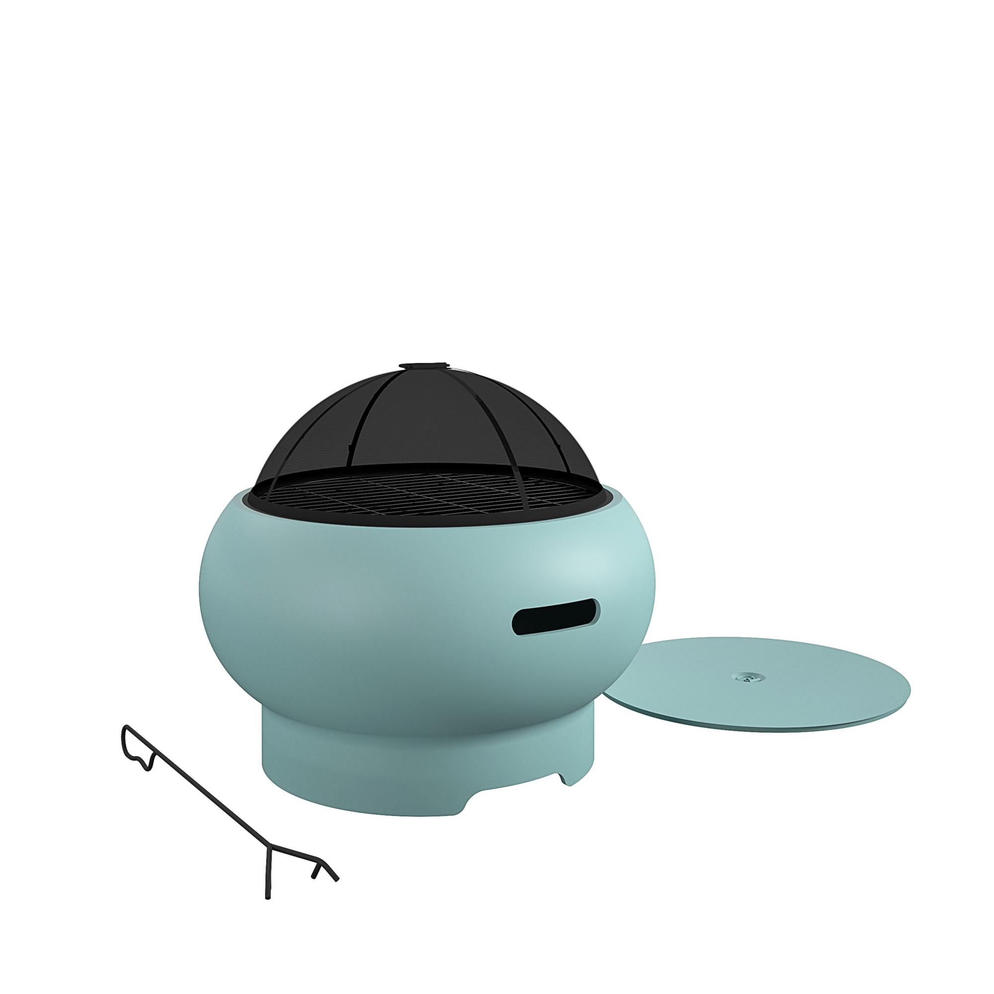 Use this Asher Wood Burning Fire in the Poolside Gossip Collection by Novogratz for all of your outdoor occasions. Asher loves bringing family and friends together around the fire. Don’t forget the marshmallows! A great addition to any outdoor living space, the modern and curved shape of this fire pit makes for a great conversation piece to gather around while hosting friends and family in the backyard or on the patio. Come rain or shine this backyard essential is constructed using rust and weather resistant materials to withstand all outdoor elements. Comes with a poker tool to keep the flames burning, grilling surface, fire grate for added protection when the fire roars, lid when not in use, and rain cover to protect from precipitation. Available in a trendy and colorful aqua haze color to brighten your backyard aesthetic. With no assembly required, this comes ready for you to relax around the fire, sparking meaningful conversation.