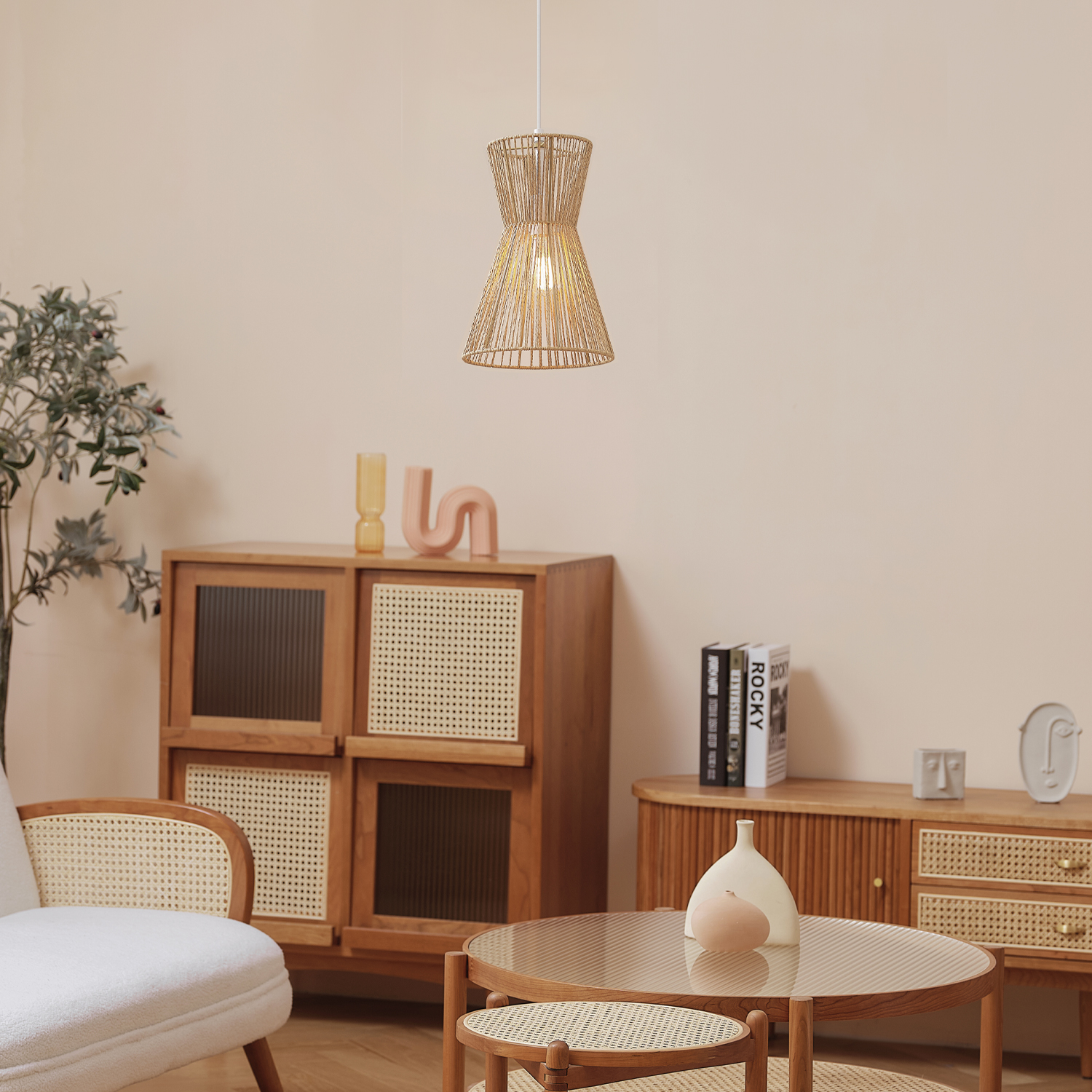 The natural twine shade and white cloth hanging cord of the Novogratz x Globe Electric Grace 1-Light Pendant Light brings a beautiful and simplistic brightness to any space. The functional, nature inspired twine hourglass shade and bold white features sit in the Japandi mind frame with its light and airy feeling and would be a stunning addition to either a bedroom, living room or dining room. The Novogratz and Globe Electric – lighting made easy.