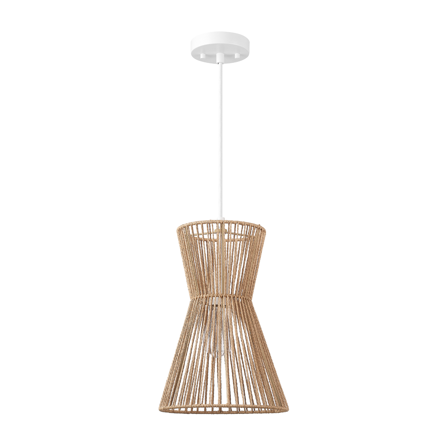 JAPANDI: the natural twine shade of the Grace 1-Light Pendant Light paired with a matte white finish and white cloth hanging cord embodies the Japandi style of rustic and simplistic beauty NATURAL TWINE SHADE: the stunning hourglass shape of the natural twine shade, accented by a white cloth hanging cord, create a marvelous statement piece that brings a unique feel to any space BULB REQUIREMENTS: 1x E26/Medium Base 60W Bulb (sold separately) – Compatible with LED, Incandescent and Halogen Bulbs – LED or Incandescent recommended DIMMABLE: fully dimmable with a compatible dimmer switch to create the perfect atmosphere (dimmer switch sold separately) SHOP THE COLLECTION: Novogratz x Globe Electric – two powerhouse forces come together to create a line of products that offer gorgeous appeal, stellar performance, easy placement and exceptional value EASY INSTALL: includes all mounting hardware for quick and easy installation MAKE IT SMART: automate your pendant light by adding a Globe Electric Smart bulb – the options are endless!