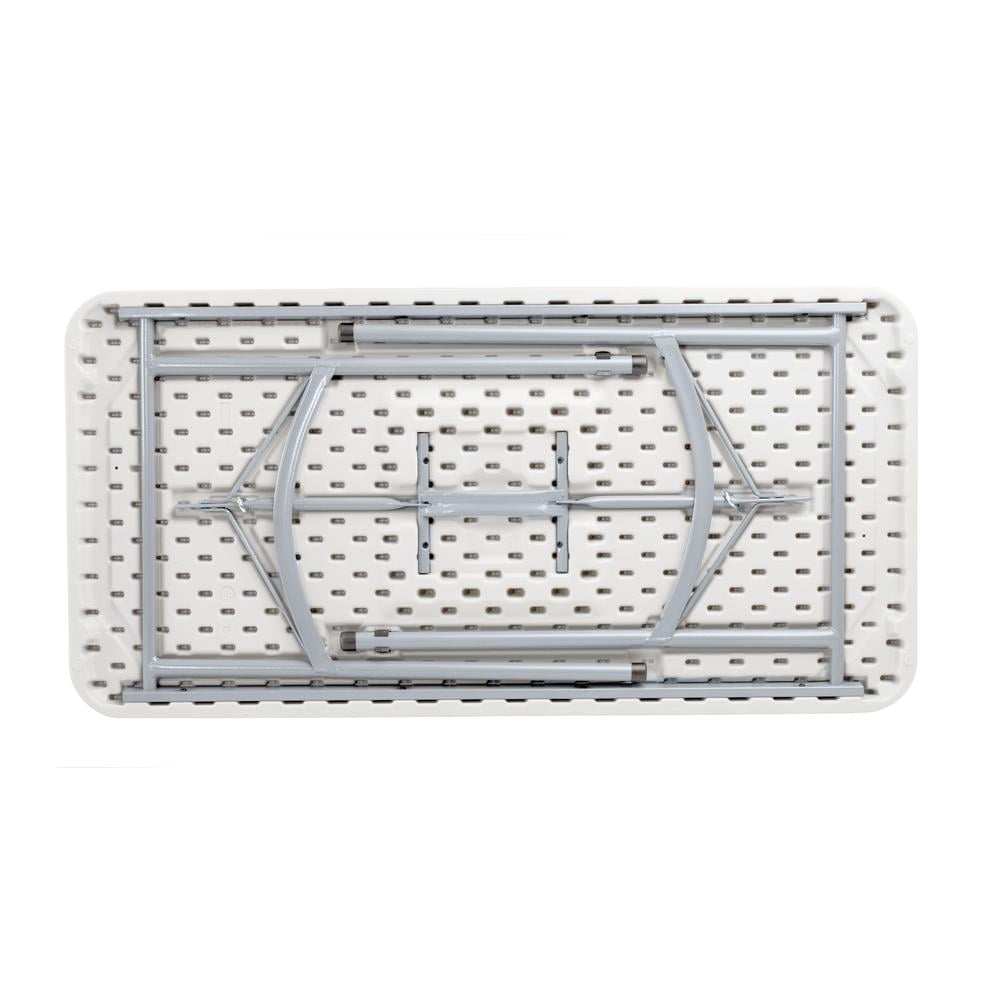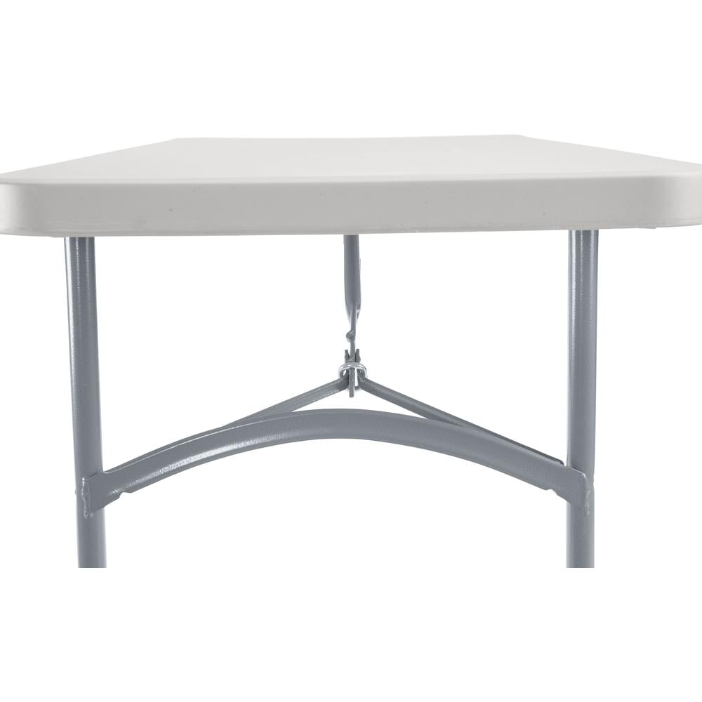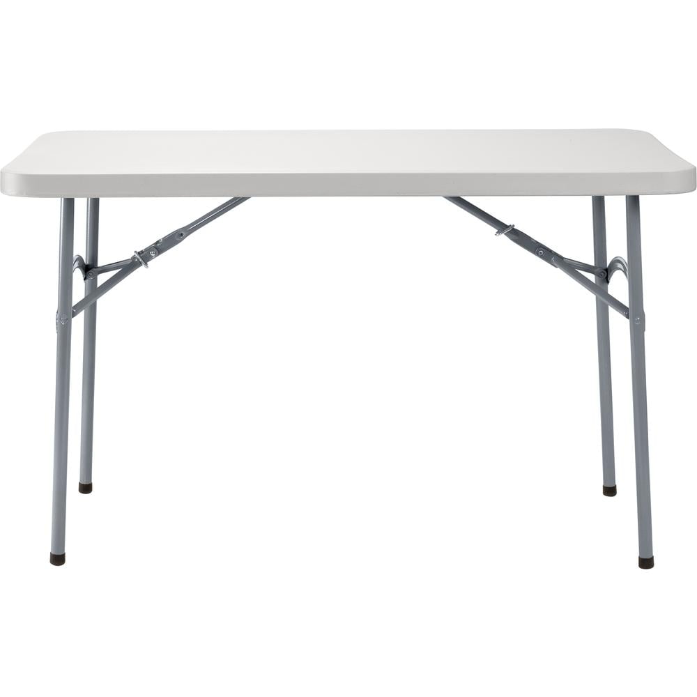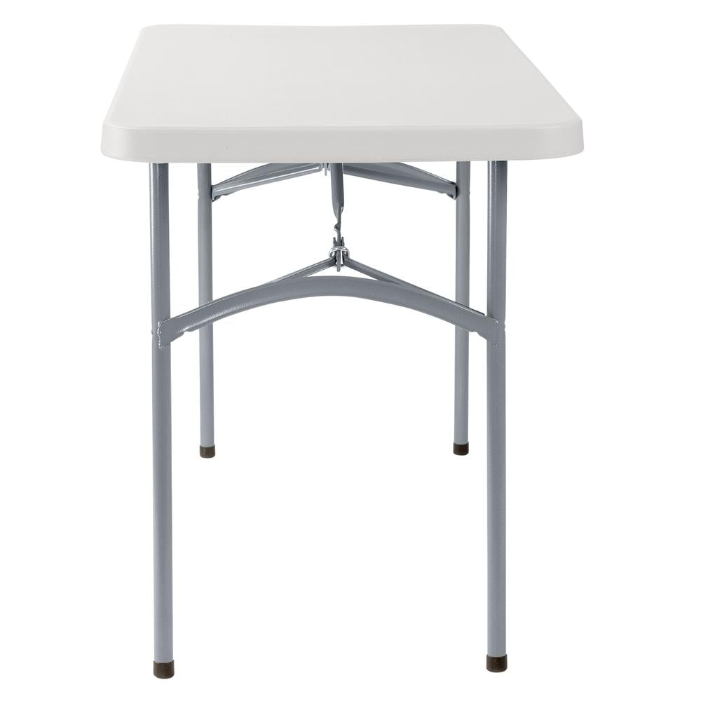 Our BT2448 rectangular blow-molded plastic folding tables are suitable for indoor or outdoor in any application that calls for affordable, lightweight, weather-resistant and highly durable folding tables. Their lightly textured design keeps them scratch-resistant yet still enables a surface smooth enough for writing. The plastic tabletop is heat-resistant up to 212º F and designed to hold up to 400 lbs. of distributed weight! The tabletop color is a speckled gray matching the textured gray powder-coated 17-gauge steel frame.