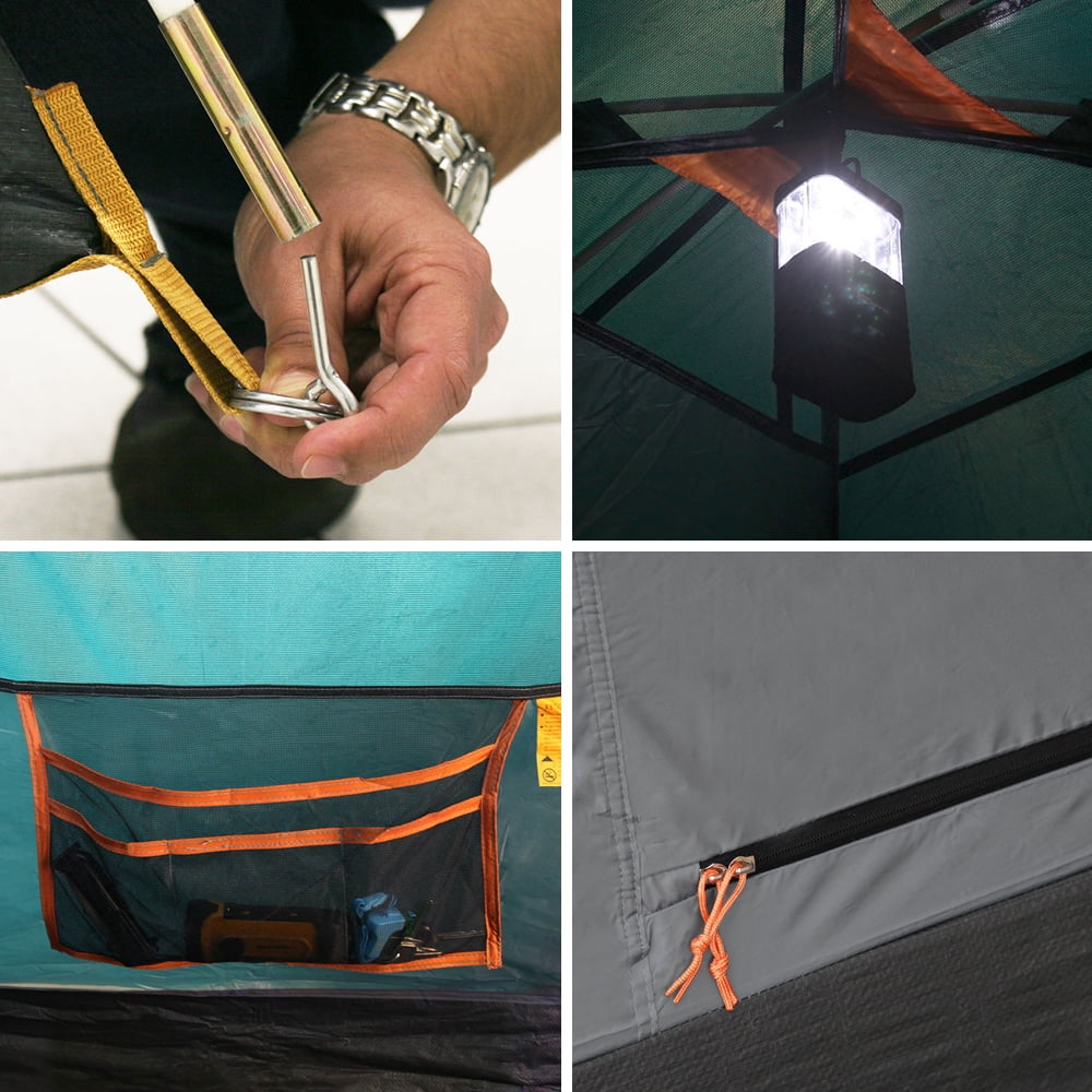 DESIGNED FOR QUICK & EASY ASSEMBLY – The Cherokee 8- 9 person tent is great for all families. With easy assembly, the spacious two wide door tent weighs 18.7lbs with a comfortable floor size of 10FT x 12FT and 6.1FT center height for maximum comfort. Even includes a detachable room divider WATERPROOF FULL COVERAGE RAINFLY – 100% waterproof 190T polyester laminated with polyurethane. 2500mm water column rainfly provides full coverage, while the heat-seamed thermoplastic coating offers UV protection. Inner tent has 2 large 2-way zipper D-style door with full mesh protection. Roomy utility pocket and gear loft for storage and ventilated mesh roof. Zipped E-port for easy wiring THICK NANO-FLEX TECHNOLOGY FRAME – Extra thick Nano-flex fiberglass poles interconnect with double gold chrome plated ferrule hardware and strong elastic, offering a sturdy construction. Made with 100% virgin material to provide additional strength and flexibility. The high-performance NTK outdoor camping tent also has a pin-and-ring system for fast and easy setup BREATHABLE MICROMESH – Ultra-thin NO-SEE-UM polyester micro-mesh fabric keeps you safe while letting fresh air in while keeping bugs out! Freestanding design is easy to set up and take down. Built for the Brazilian Amazon, the Cherokee 3-season dome family tent will keep you comfortable and protected from heat, rain and wind HEAVY DUTY FLOOR MATERIAL – Seamless polyethylene with a silver-coated inner layer to prevent leaks, keeping you dry and protected. The flooring has a unique bathtub-style construction element barrier, designed to ensure you won’t wake up in a puddle! CPAI-84 fire retardant rainfly comes with a zipped stuff bag and ID label to personalize your tent