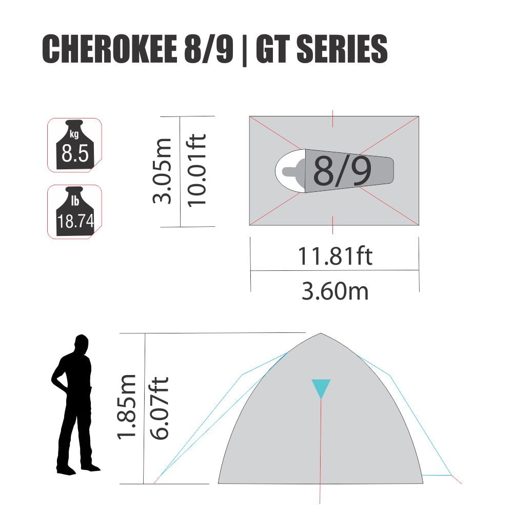 NTK Cherokee GT 8 to 9 Person Sport Camping Dome Tent, 10 by 12 Foot, 100% Waterproof and 3 Seasons