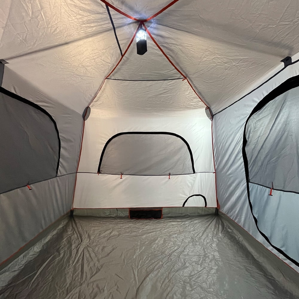 NEW CABIN TENT DESIGNED FOR QUICK & EASY ASSEMBLY – Spacious design one door tent weighs 28lbs with a comfortable floor size of 13ft x 9ft and 6.7ft center height for maximum comfort. Your Pet has his own little access that can be doubled as an A/C unit port. A convenient E-port is also available for your electronics. A fun shadow game is printed inside so that you can play with the little ones, that little extra touch from the NTK family for yours. A perfect 8 person cabin tent DOUBLE LAYER HALF COVERAGE RAINFLY – 100% waterproof 190T polyester laminated with polyurethane. 2500mm water column rainfly provides great coverage, while the heat-seamed thermoplastic coating offers UV protection. Inner tent has a large 2-way zipper D-style door with mesh protection. Roomy utility pockets for storage and ventilated mesh roof. Cabin design delivers extra space. The front door is covered with an awning (poles included) THICK METAL POWDER COATED INSTANT FRAME – Easy to use hardware with sturdy construction, provides additional strength and flexibility BREATHABLE MICRO-MESH SCREEN – Ultra-thin polyester micro-mesh fabric keeps you safe – letting fresh air in. Freestanding design is easy to set up and takedown. Built for the Brazilian Rainforest, this cabin family tent will keep you comfortable and protected from heat and rain. The windows can be conveniently opened from the inside offering a great view of the outdoors and extra ventilation when needed HEAVY-DUTY FLOOR MATERIAL – Polyethylene prevents leaks, keeping you dry and protected. The flooring has a unique bathtub-style construction element barrier, designed to ensure so you won’t wake up in a puddle! CPAI-84 fire-retardant materials